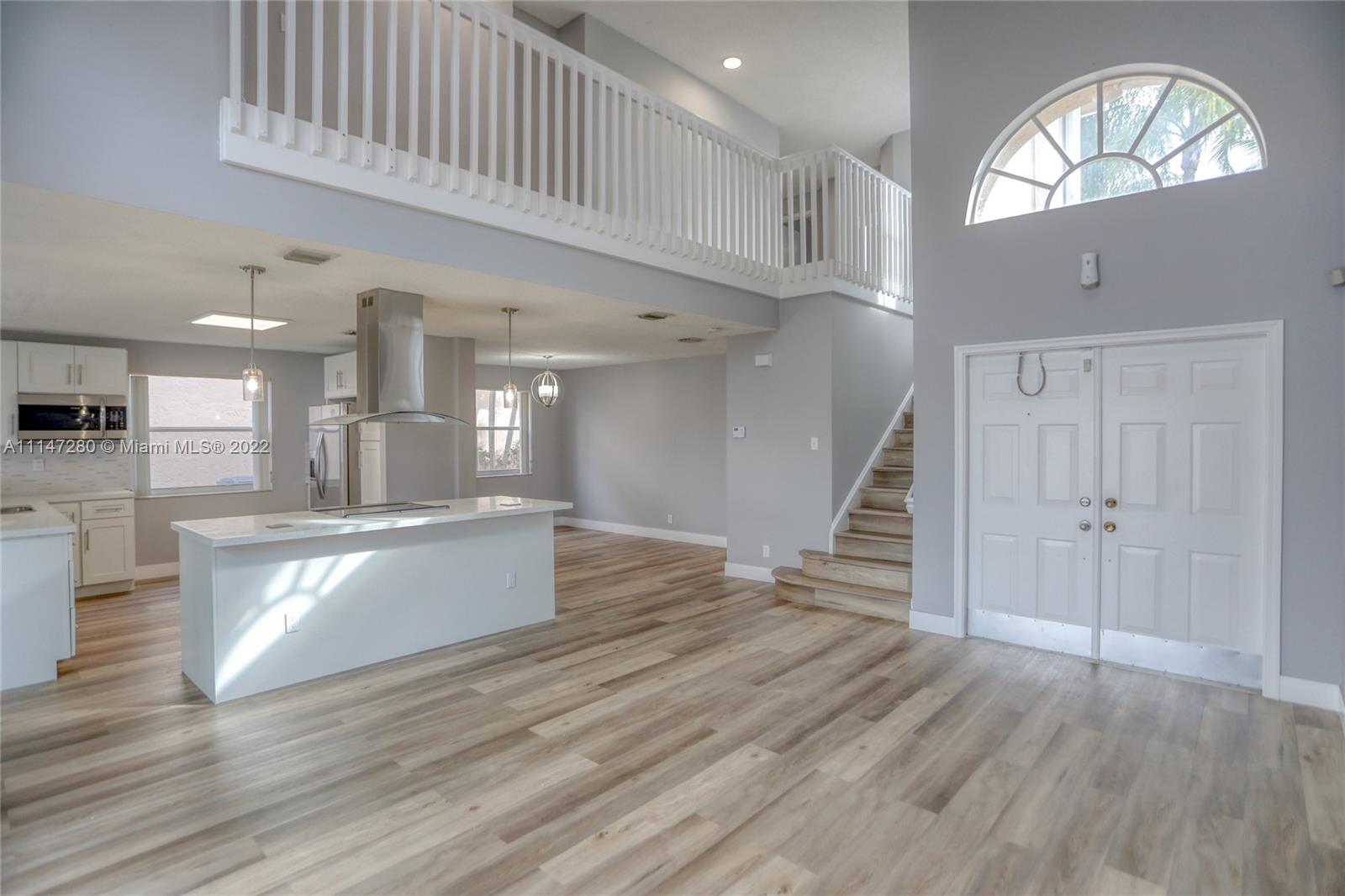 REDUCED FOR QUICK SALE! Seller is accepting asking price or better only and requesting a quick closing. Updated 2 story lake view home! 4 bedrooms, 2.5 baths, a 2 car garage, open layout and with no walls downstairs, the home feels bright and open. Open quartz kitchen with a Stainless Steel Hood and appliances. AMAZING lake view from the moment you open the door and in the master bedroom. Grey vinyl tile and clean square baseboards. New Modern Lighting. Spacious Laundry Room. Bathrooms are all MODERN. The master bathroom has a shower panel and an amazing Cerrara Marble Tile and backsplash waterfall. AC is one year old. Freshly painted. Carpet needs cleaning or to be replaced. All rooms are decent sized and the master is large. Great school district. Low QUARTERLY HOA. HURRY!