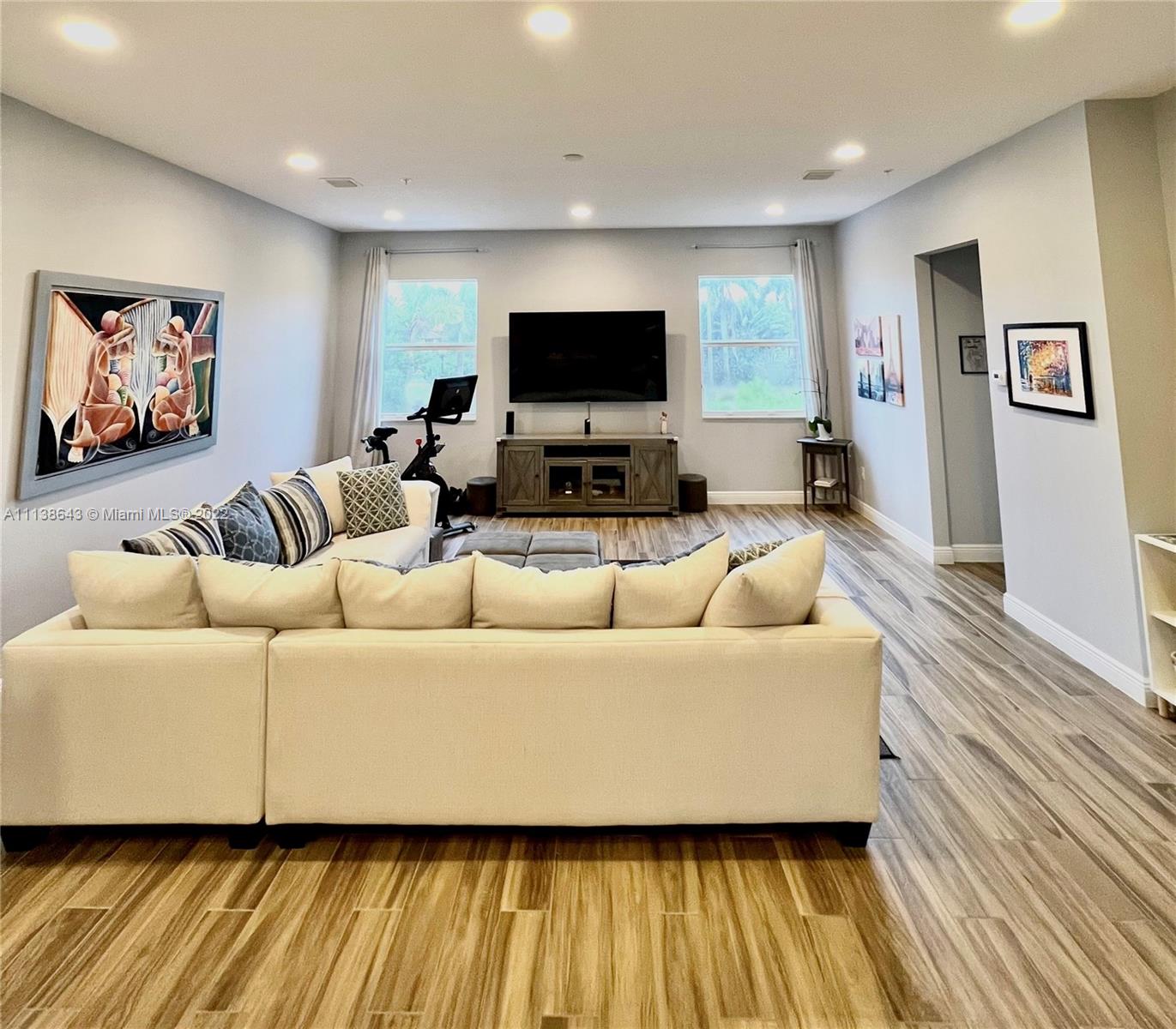 Beautiful corner-unit 4 beds/3.5 baths Pearl Model townhome overlooking a courtyard. Largest model in the community w/3,000+ square feet and 10 ft ceilings on every level. Built in 2018, the home has impact windows & doors, fire sprinkler system, security system, tons of closet space, and a 2-car garage with epoxy flooring. 1st floor living room w/ kitchenette, bedroom and full bathroom. Perfect for multigenerational living, kids play area, or dedicated office space. 2nd floor is completely open concept main living area w/upgraded kitchen and appliances. 3rd floor has 3 bedrooms, 2 bathrooms, and full size laundry room. Upscale gated community w/ fitness center, heated pool, and jacuzzi. Ultra-convenient location within walking distance to shopping, restaurants, schools and CB Smith park.