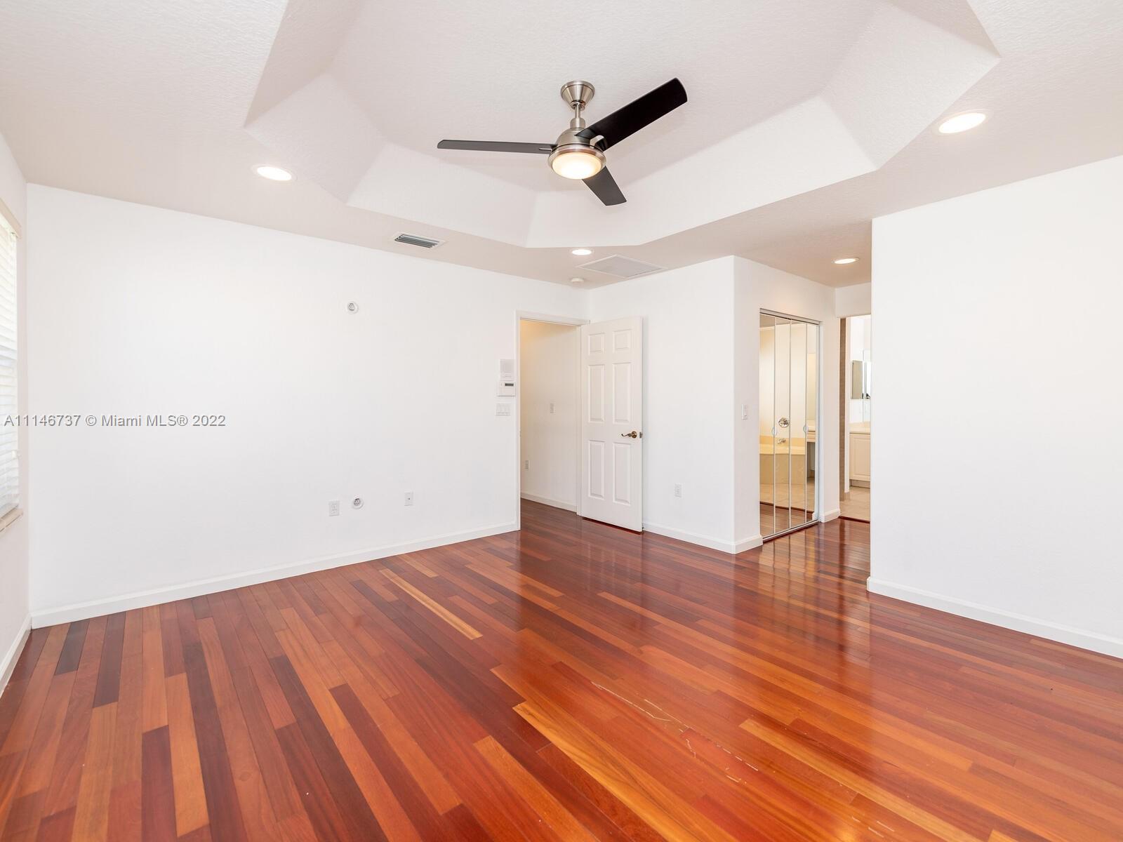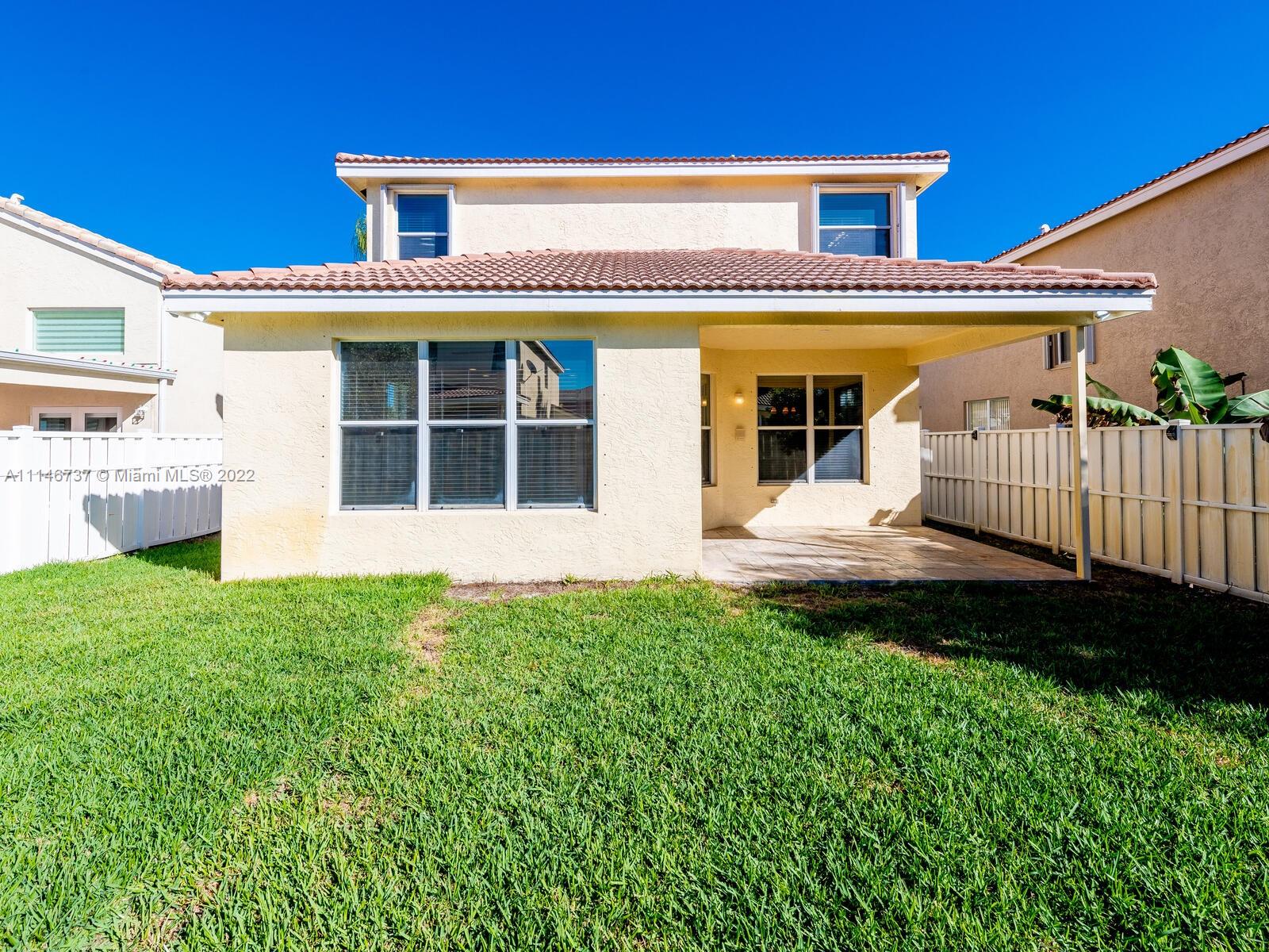 This 4 bed 3 bath property has plenty of natural light & breathing space for the whole family. Covered front & covered back patio for entertaining. First floor tiled 2nd floor wood flooring. One bedroom on first floor for guest or In-Laws. Utility room & sink on 2nd floor for convenience. Master bathroom with Roman tub, separate shower, private restroom and dual sink. Master suite With his and hers walk-in closet. Gated Community 24 hour guard, resort style clubhouse pools, basketball, tennis courts, kids play areas and fitness center.