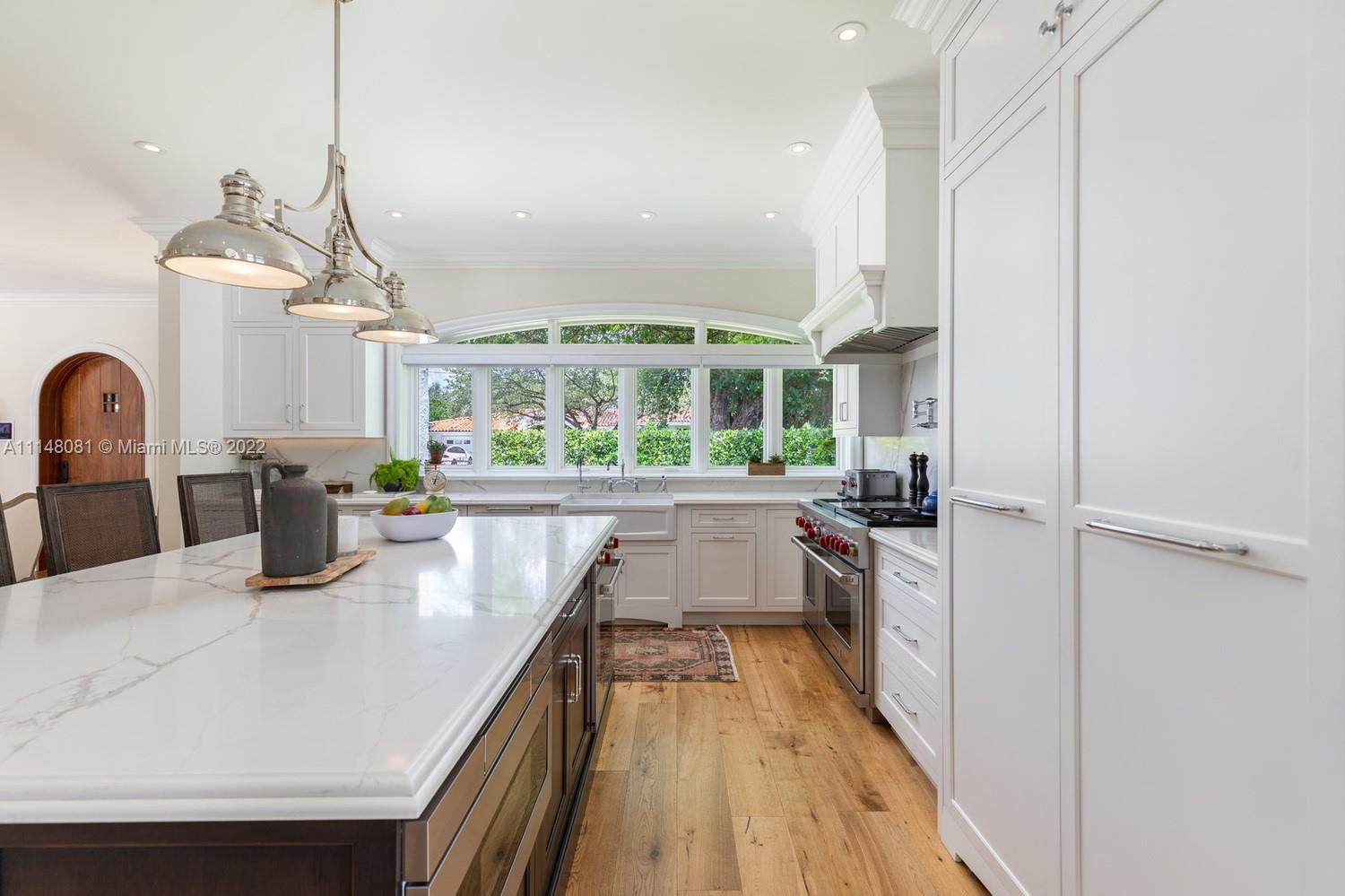 This magnificent Old Spanish gem was completely renovated in 2017. With exquisite architectural details and features that include all hurricane-resistant Pella windows, all mahogany wood interior doors, a custom-designed 500 bottle wine cellar with natural brickwork, hardwood floors throughout, stunning gourmet kitchen with Subzero, Wolf and Bosch appliances, and marble countertops. Masterful custom millwork throughout the home that includes all baseboards, crown moldings, trims, dressing rooms, closets, and more. LED lighting throughout, Savant home automation system that controls all window treatments, security system which includes 12 cameras, all lights, all audiovisual systems.