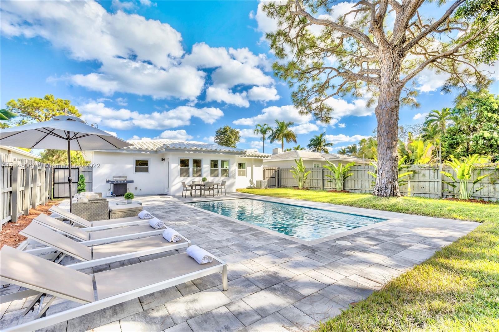 Beautiful 3/2 in charming Poinsettia Heights boasting a modern & open design with porcelain tile, quartz countertops, stainless steel appliances, impact windows & doors throughout, recessed lighting, designer bathrooms, laundry/storage room, newer A/C and more. Spacious backyard includes a new heated pool & salt water system with ample room to relax & entertain surrounded by mature trees. Sold Fully Furnished. Don’t miss this opportunity to make this gorgeous home your own.
