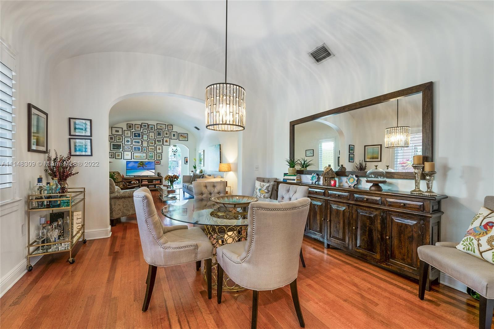 Soul (noun): an emotional or intellectual energy or intensity, especially as revealed in a work of art or an artistic performance. Welcome to 704 Navarre—a home with Soul. The residence, offering a comforting vibe, embodies architectural elements of a bygone era. It enjoys tall curved ceilings, arched windows (all are impact), restored hardwood floors, wood-burning fireplace, wood shutters, Old Chicago brick patios and numerous textural details. The 2/2 main home features extra large bedrooms and baths while the 1/1 casita is accessed via the heavenly loggia. Its refreshing and verdant patio adds a whole new dimension to this home. Location: just a 3-block stroll to the CG Country Club + Golf Course/Tennis Courts and a quick bike ride to downtown Coral Gables. It doesn’t get any better…
