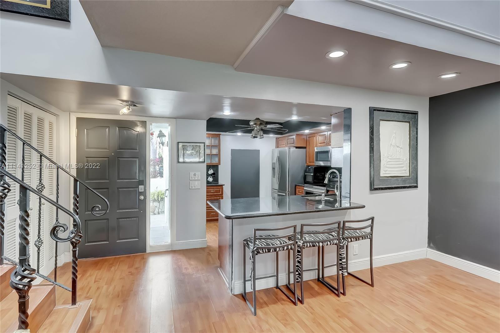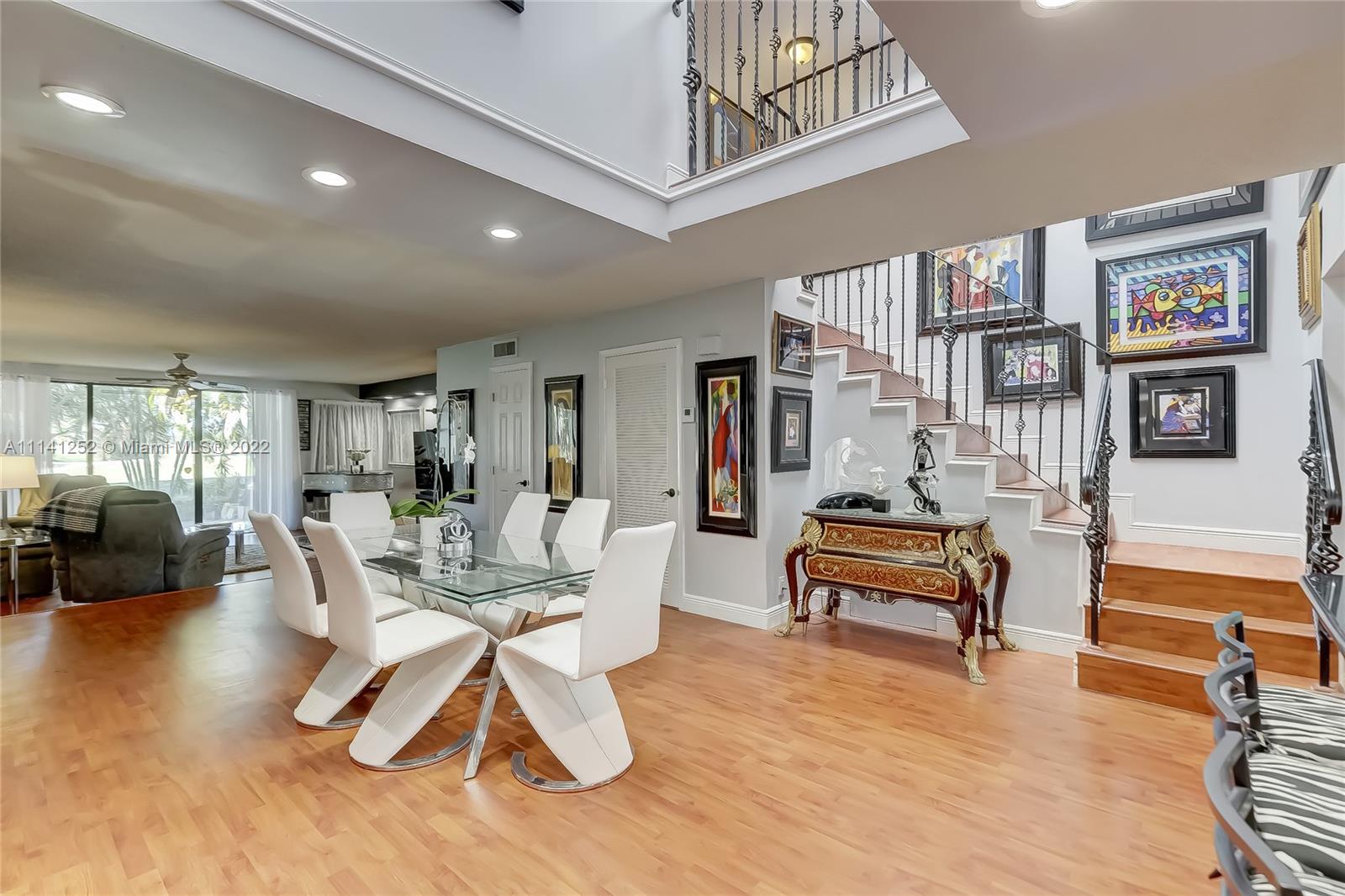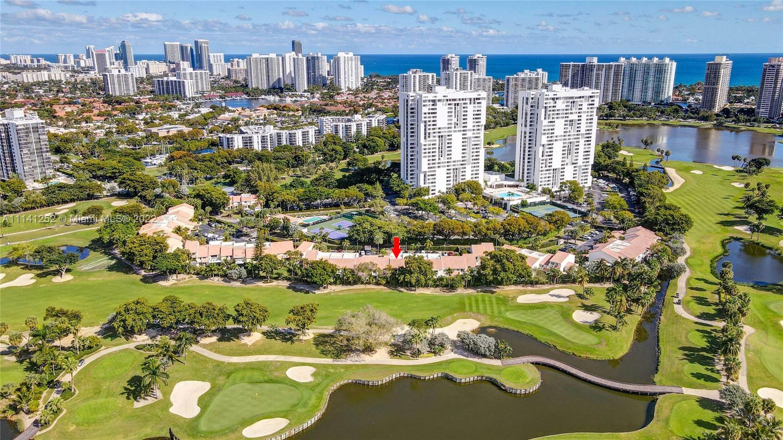 Delvista Townhouse, walking distance to Aventura shops & houses of worship. This beautiful 3/2.5 w/ patio overlooking wide Golf Course Views feels like a bright home. Private updated walkway / entrance (unlike the neighbors homes). Kitchen w/ Samsung Stainless Appliances & Granite. Large Dining Area & Huge Family Room w/ Sliders to the expansive views. All Bathrooms beautifully updated w/ Porcelain floors & floating vanities. Wrought Iron Stair Rails, 3 bedrooms & 2 baths Upstairs: the primary suite features Volume Ceiling, sitting area & luxe Spa Bathroom. 2nd bed also w/ private balcony. Laundry Room & tons of Storage. GARAGE Plus One Addt'l Parking Space. A Rated Schools. Amenities Include: Pool, Tennis courts & 24hr Security & tons of Guest Parking right next to unit.