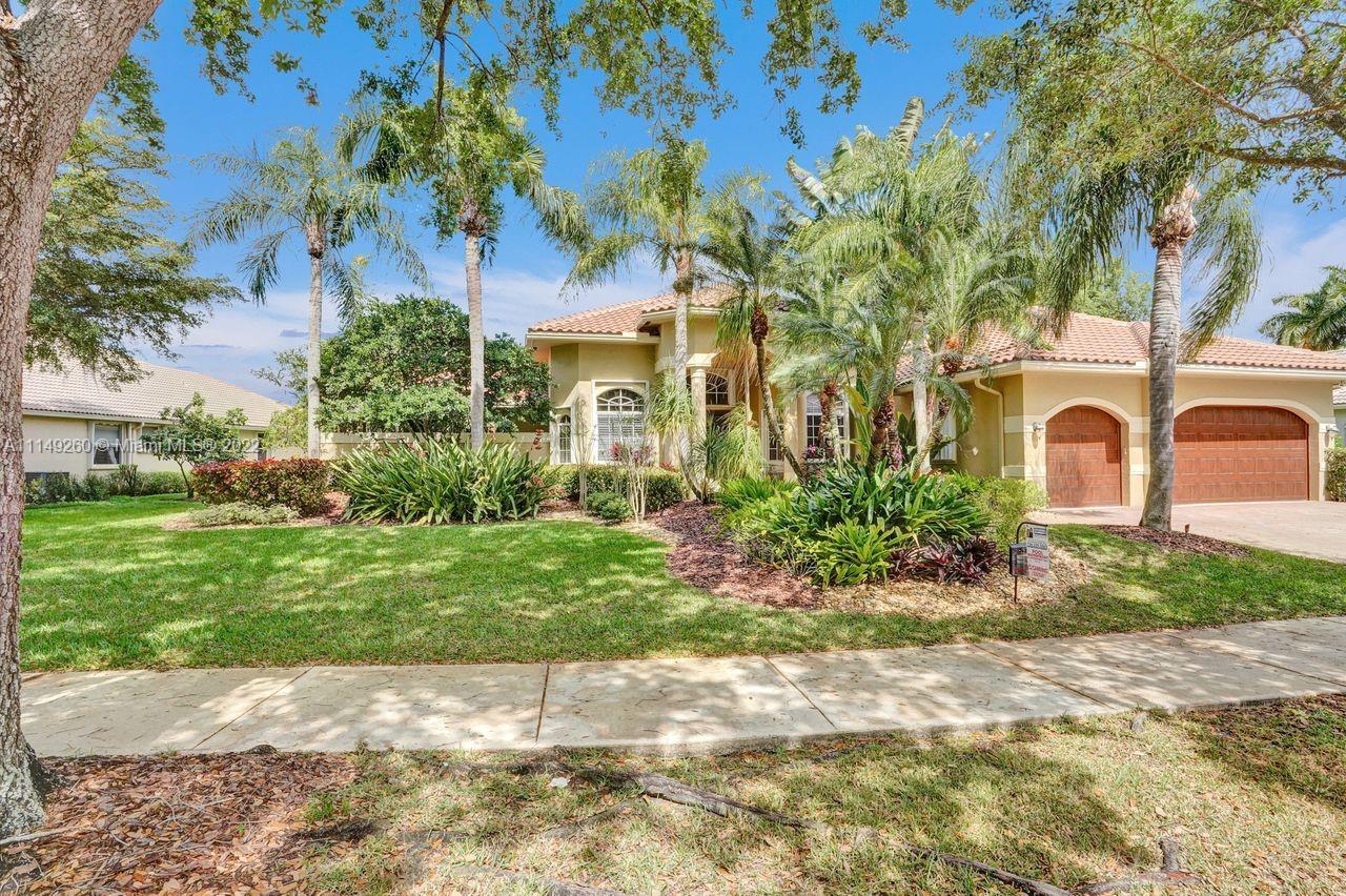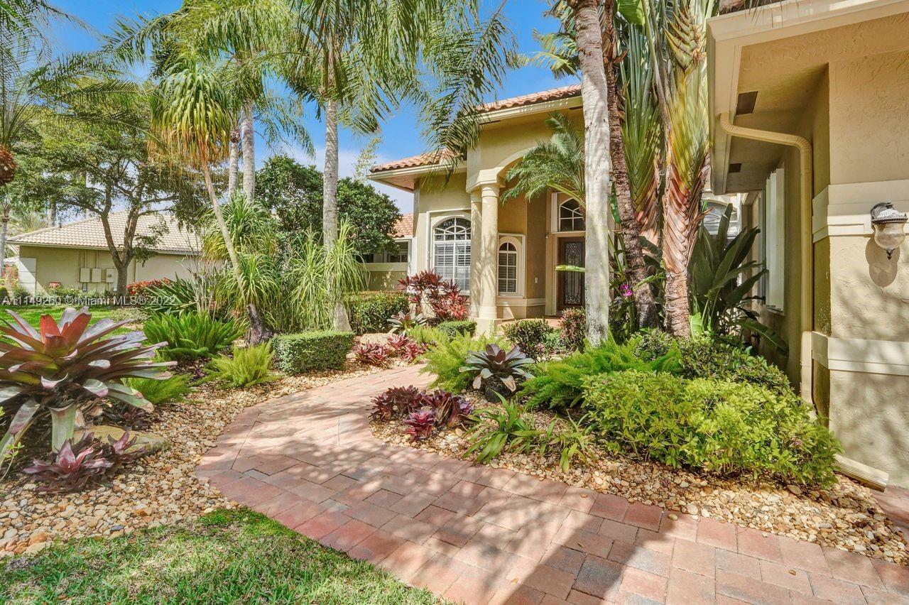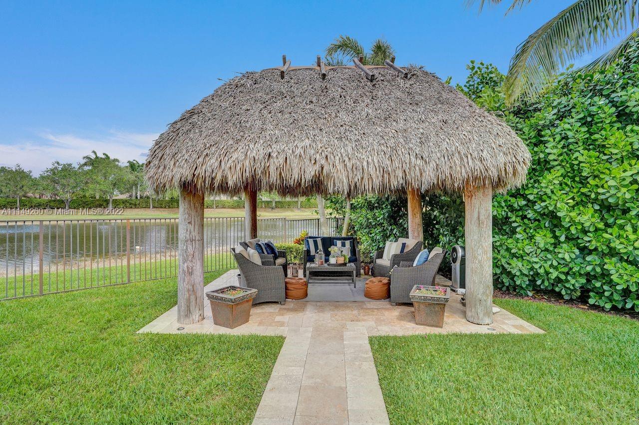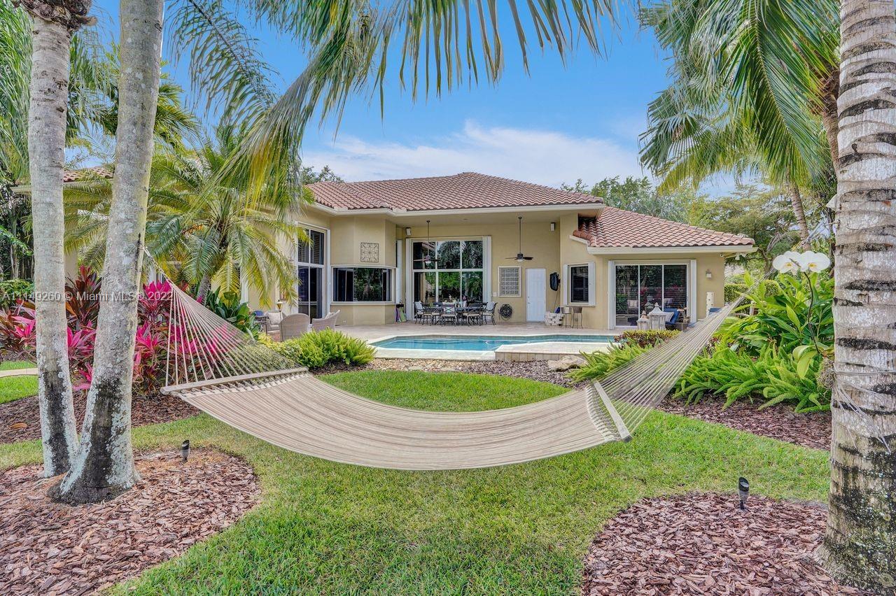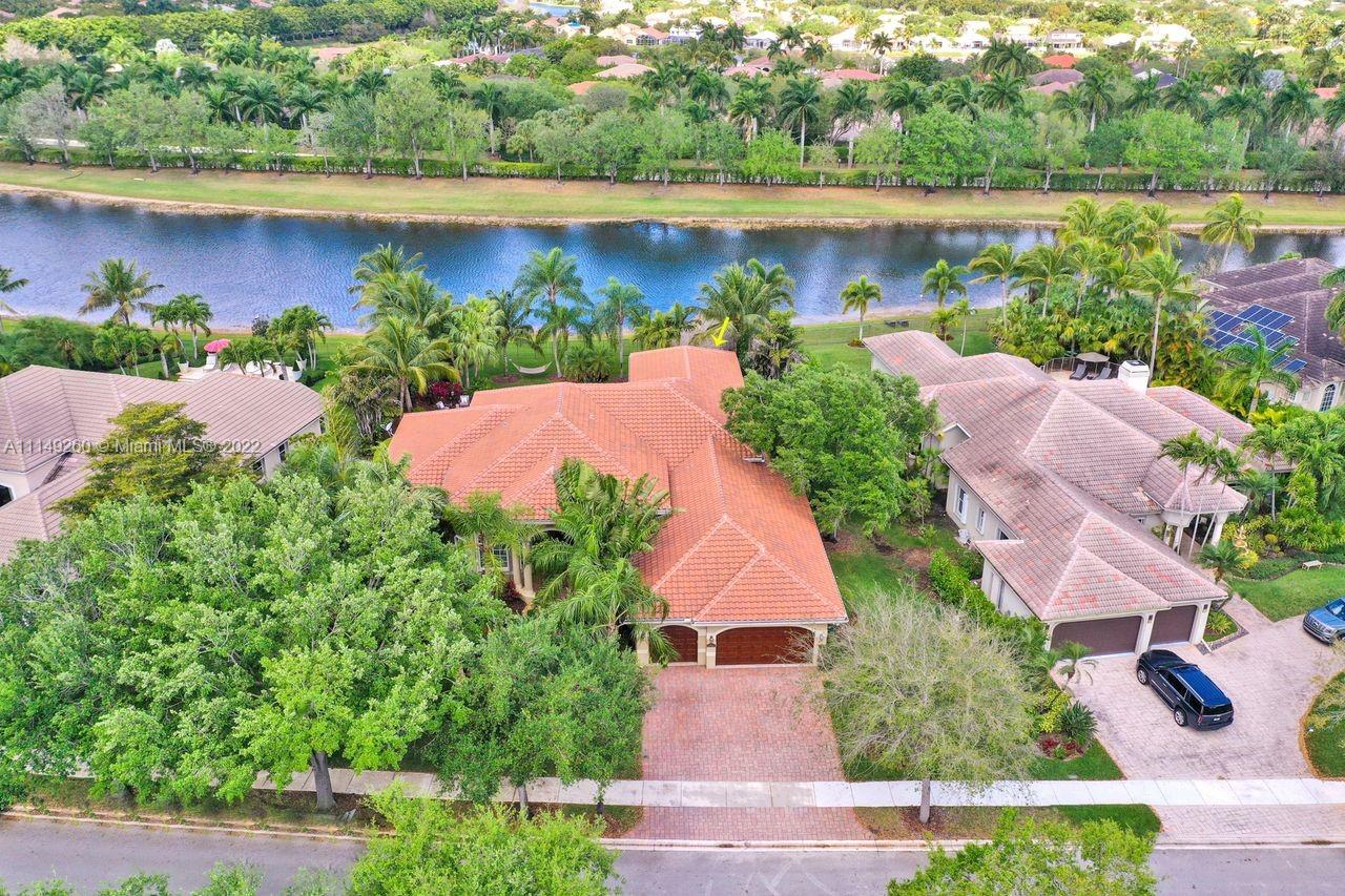 Fabulous 5 bedroom/5 baths home on a 1/2 acre estate in Pelican Landing that shows like a true model home. Grand entry with beautiful lush landscaping. Look no further this home is in impeccable condition with newer roof, updated bathrooms, remodeled gourmet kitchen w/ newer appliances, wood flooring in bedrooms, newer AC, finished garage by Garage Wall with impact door, accordion shutters, plantation shutters and more. Large master suite with his & hers master baths. Majestic raised foyer with views to pool and lake. Huge backyard is a dream come true with newer salt chlorinated pool and spa. Tiki hut overlooking tranquil lake views with sunsets. Premier community in Weston. Will not last! some furniture stay and No appraisal contingemcy.Kichen remodeled 2017. New roof 2017.