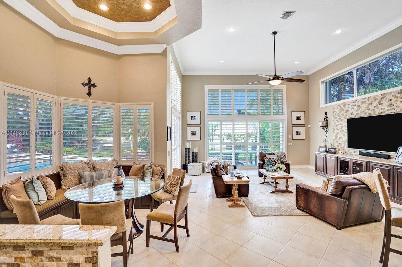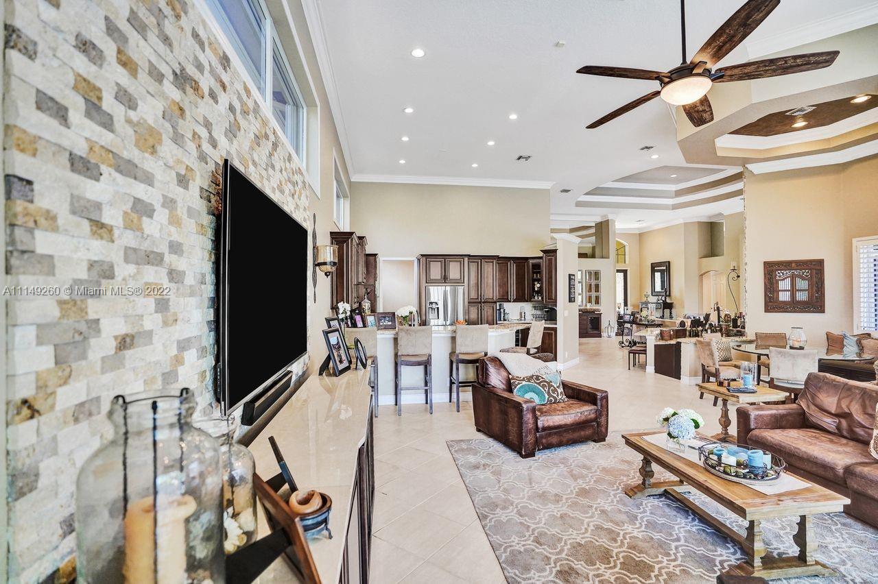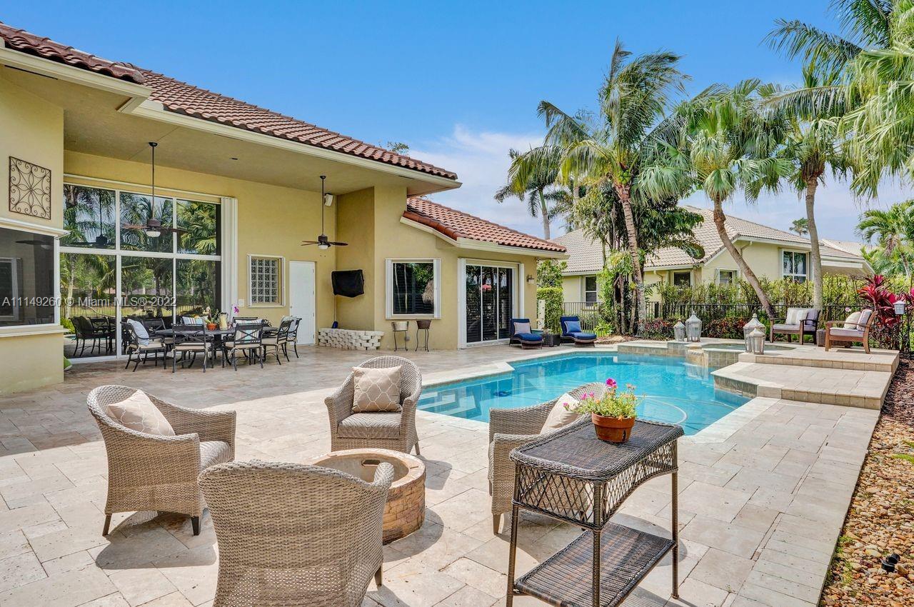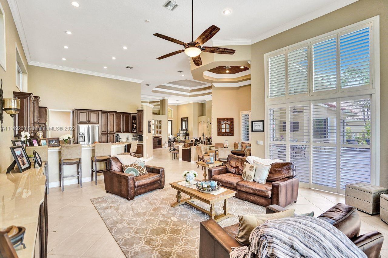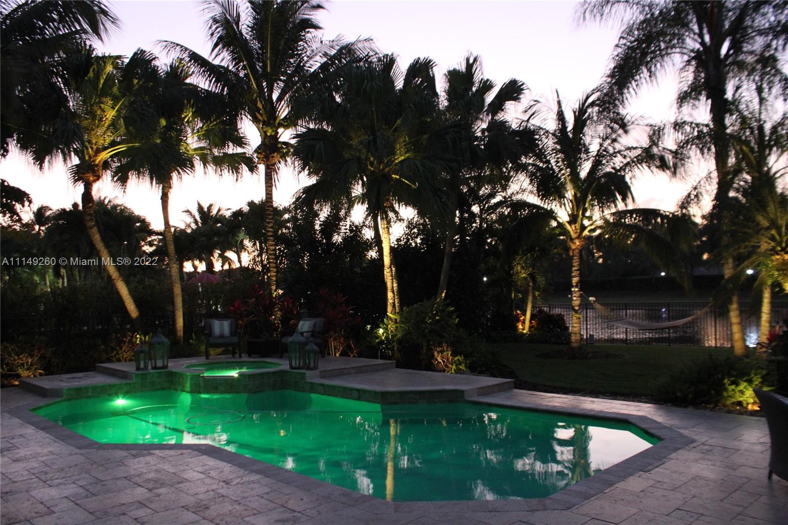 Fabulous 5 bedroom/5 baths home on a 1/2 acre estate in Pelican Landing that shows like a true model home. Grand entry with beautiful lush landscaping. Look no further this home is in impeccable condition with newer roof, updated bathrooms, remodeled gourmet kitchen w/ newer appliances, wood flooring in bedrooms, newer AC, finished garage by Garage Wall with impact door, accordion shutters, plantation shutters and more. Large master suite with his & hers master baths. Majestic raised foyer with views to pool and lake. Huge backyard is a dream come true with newer salt chlorinated pool and spa. Tiki hut overlooking tranquil lake views with sunsets. Premier community in Weston. Will not last! some furniture stay and No appraisal contingemcy.Kichen remodeled 2017. New roof 2017.