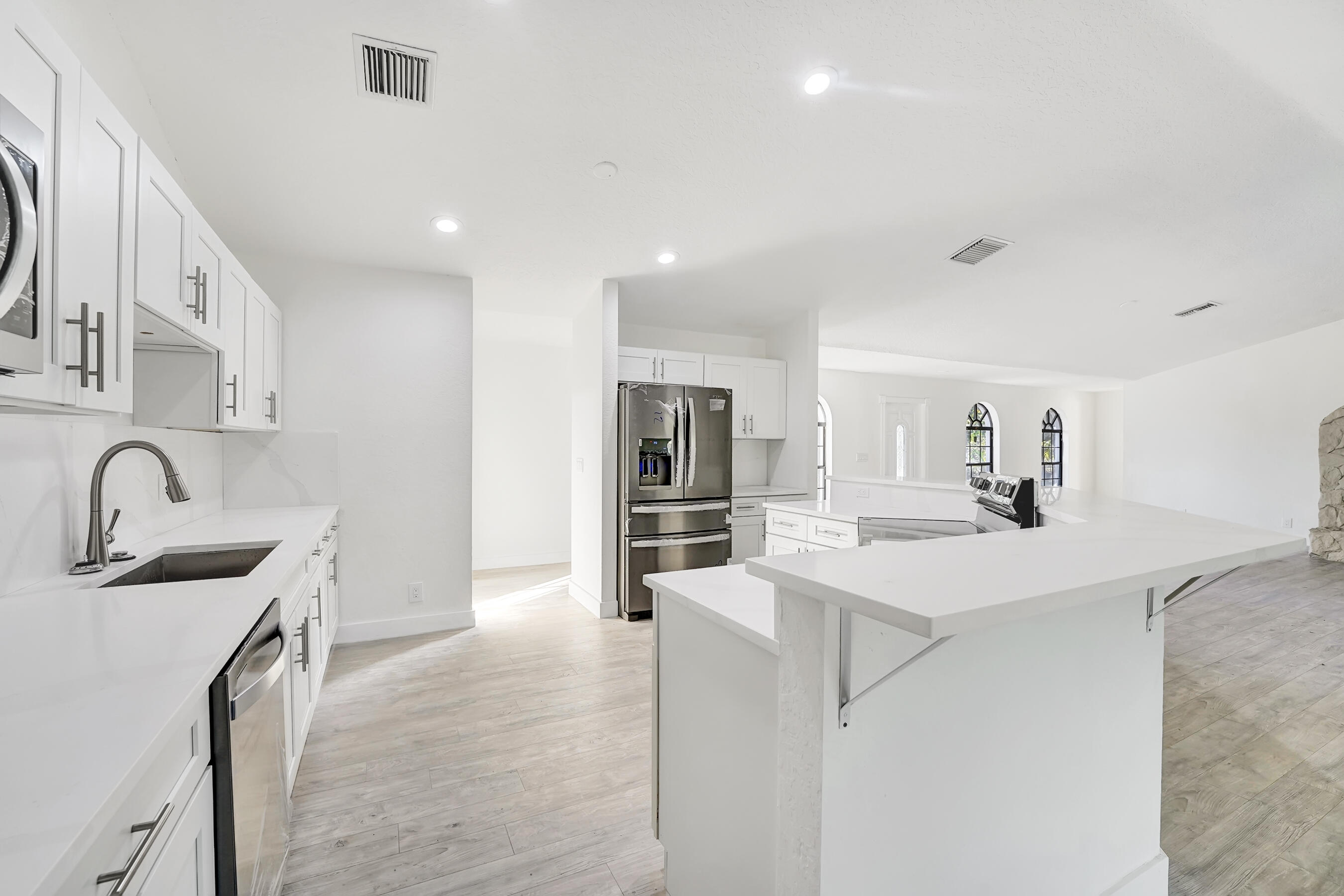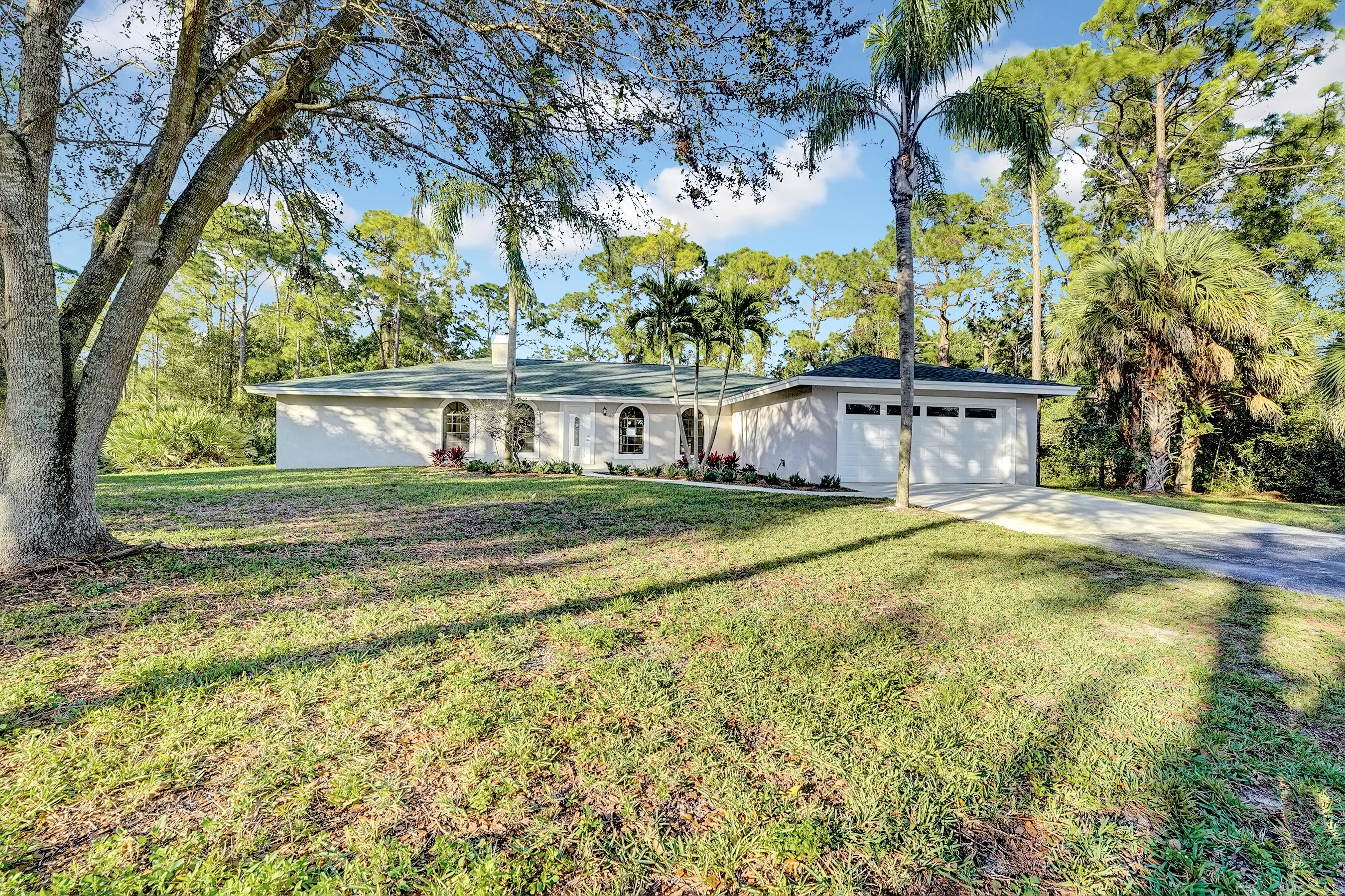 Wow! Fully remodeled 3 bed+ den (easily be used as 4th room), 2 bath, 2 car attached garage CBS construction single family POOL home on one of the most desirable streets & lots in the Acreage! Updated kitchen with brand new premium stainless steel appliances, white shaker cabinetry throughout, freshly painted interior and exterior, Mohawk waterproof laminate-wood style flooring throughout, remodeled bathrooms, newer roof (2018), new pool equip, landscaping, new irrigation equip, Split Bedroom, OPEN Floor Plan Separated By Huge Kitchen And Family Room Area w/ fire place & chimney perfect for cool winter nights! Home sits on 1.15 acres with easy access to highways, shopping, airports and more! rare!!**50,000+ sf lot**!! Hurry, this will go fast. NO HOA! Park your boat, camper RV and truc