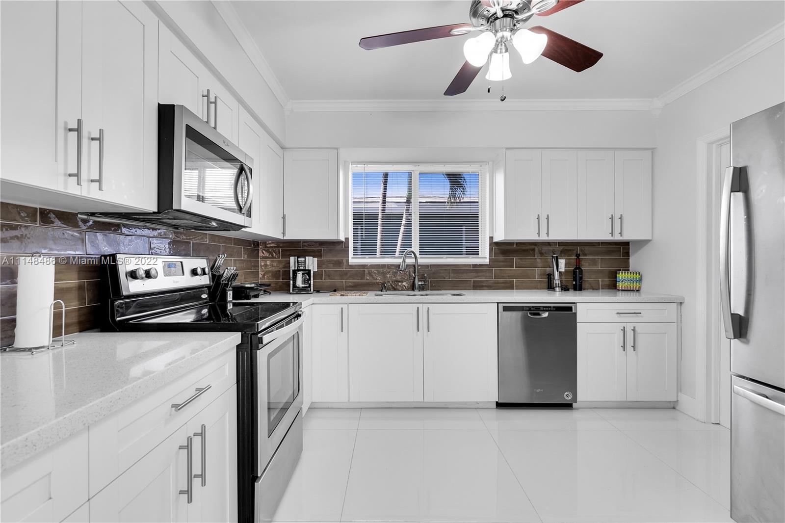 COMPLETELY REMODELED HOME. This bright home, features 3 bedrooms, 2 bathrooms, and 1 car garage. New roof, new windows, new interior and exterior doors. Kitchen has been update with white cabinets, quartz counter tops and mosaic backsplash. Bathrooms have been updated with pedestal sink and neutral tile. House has been completely tiled with 35x35 white porcelain tile. Circular stamp concrete driveway to park lots of cars. Side yard big enough to park your boat or RV. NO HOA.