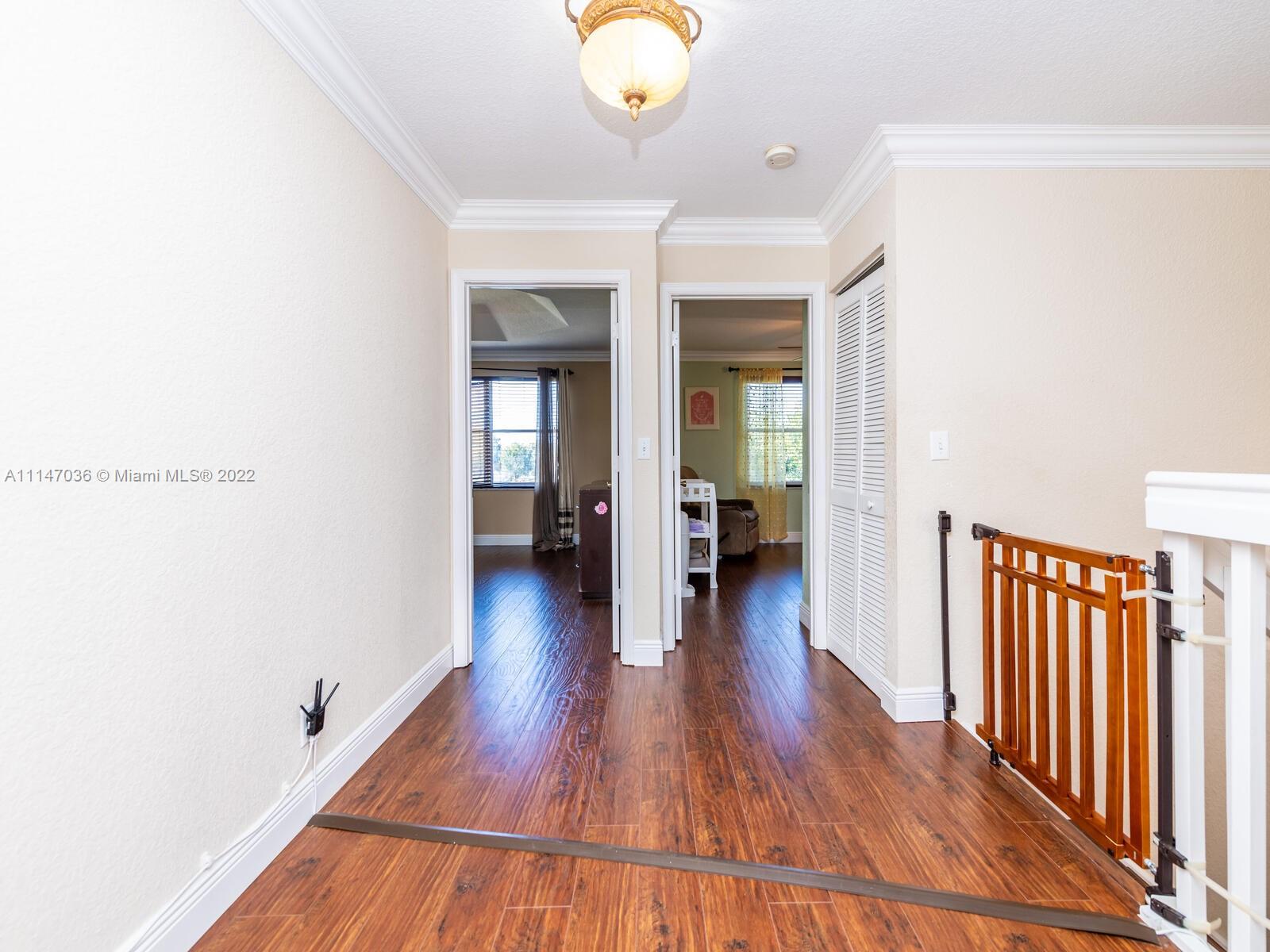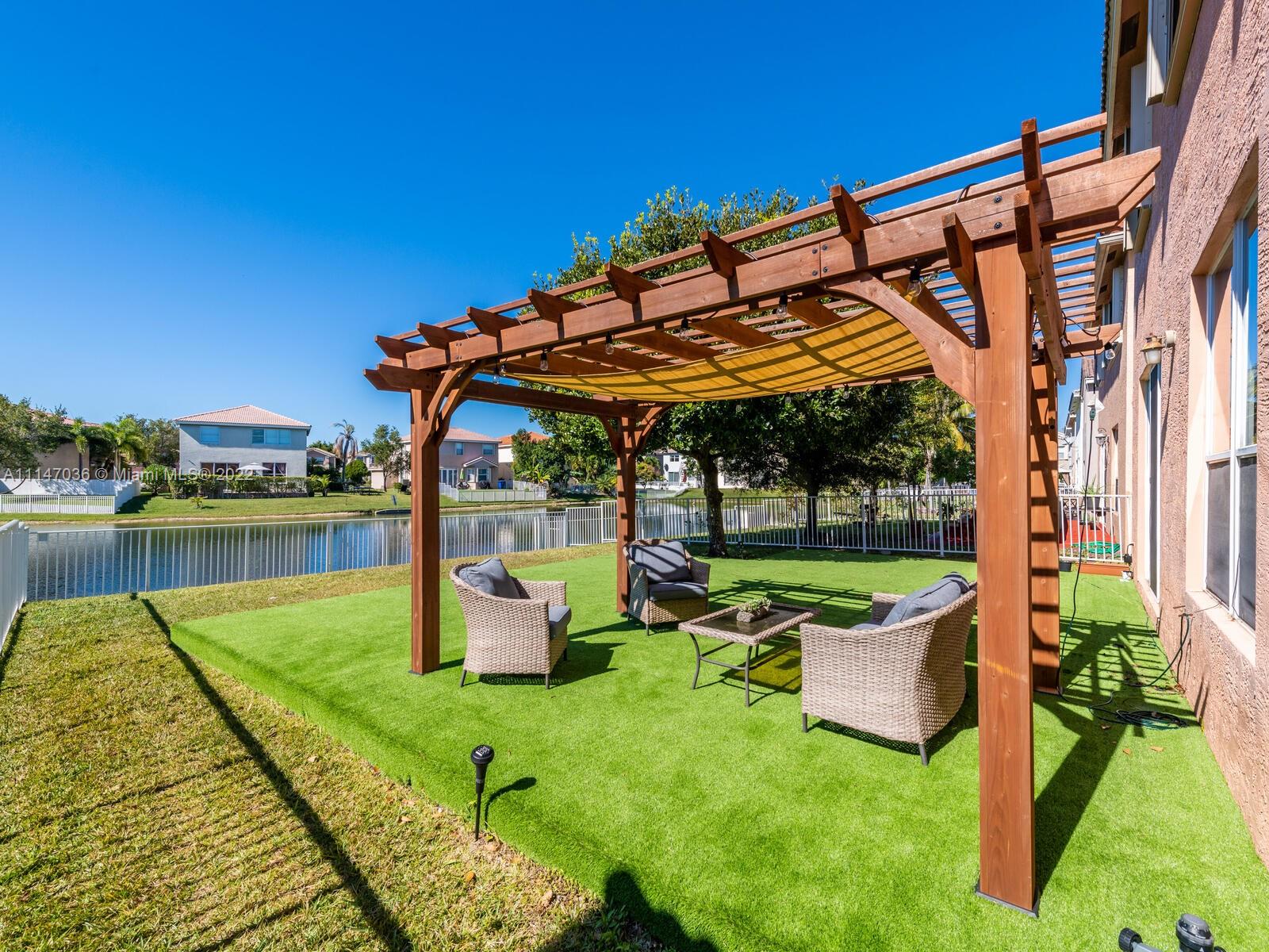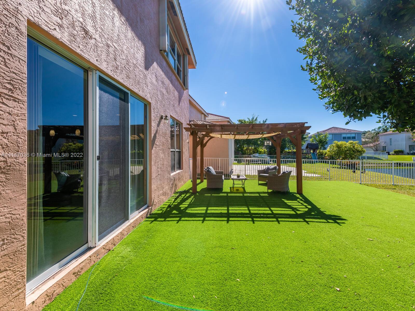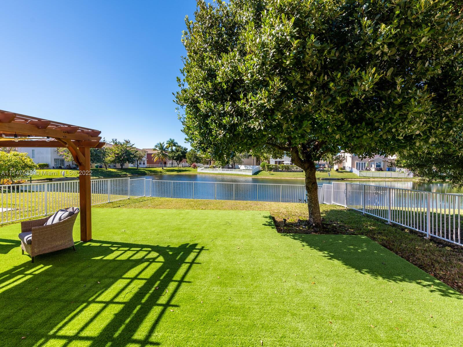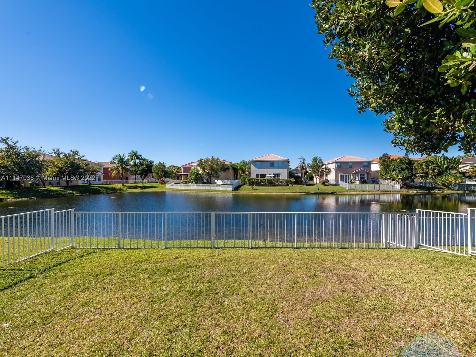 Come see this gorgeous home in West Miramar in the Silver Shores Gated community. Home features 4 Bedrooms, 2.5 Bathrooms with spacious backyard overlooking the lake. Backyard is fenced and has artificial turf for kids to play. Upstairs is updated with beautiful laminate floors in all 4 Bedrooms and bathrooms are nicely renovated with glass sinks. There are two walk-in closets for the Master bedroom. First floor has ceramic floors, updated 1/2 Bathroom and renovated Kitchen with 2 Walk in pantries. Accordion Shutters on all the upstairs windows. A/C 2015 with new motor and UV Light to prevent mold. Water Heater 2012. Community has Club House, Pool and playground. Property is just minutes away from Stores, Parks, schools and Shopping Center. Showings start 1/22/22 at Open House.