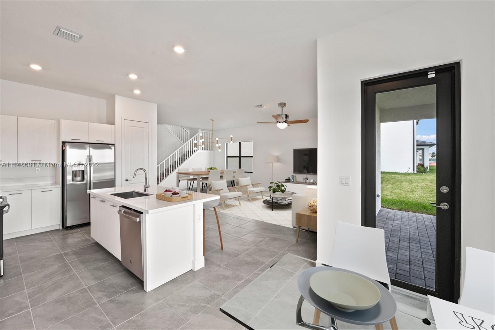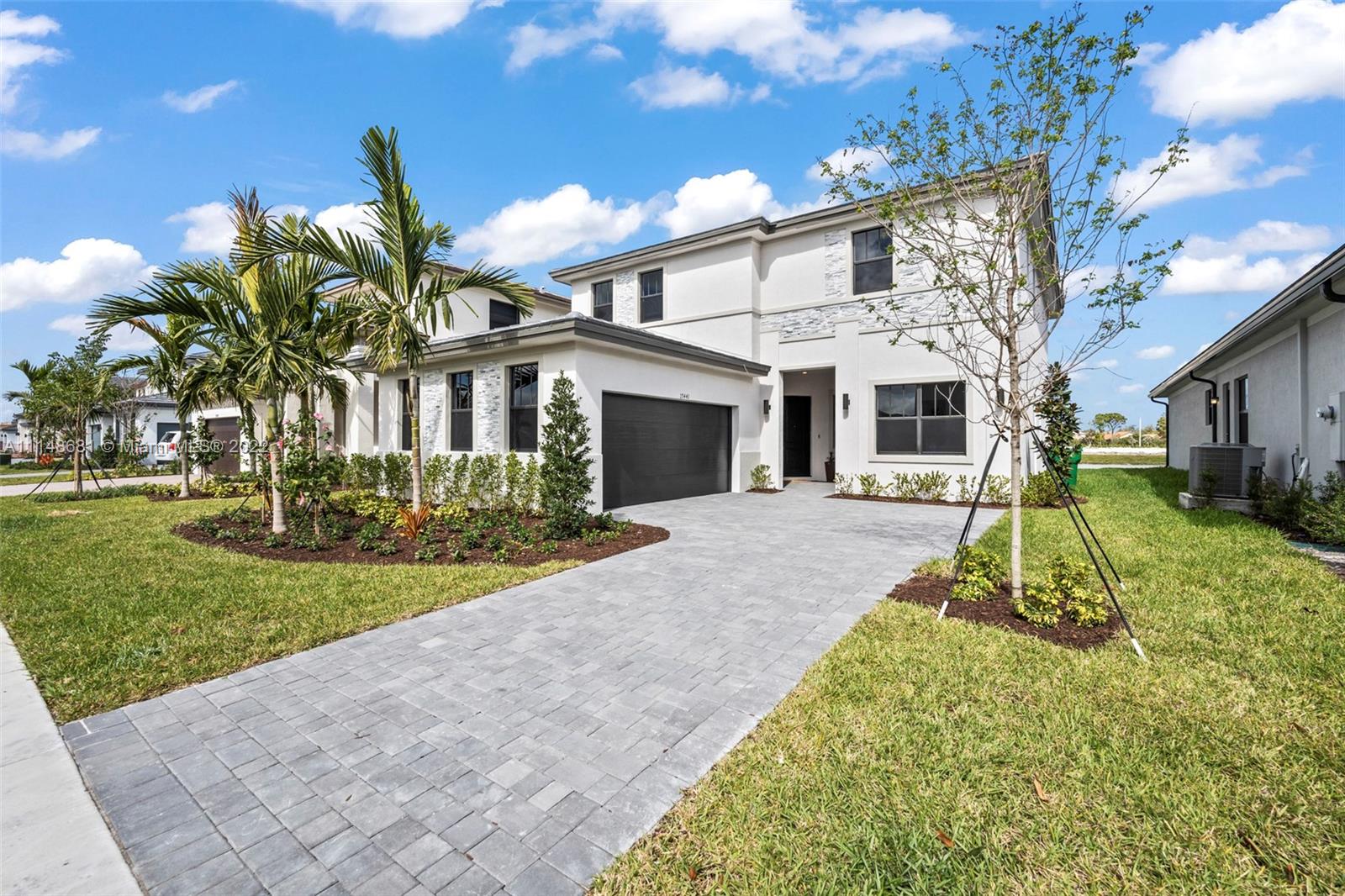 // NEVER LIVED IN -FINISHED \\ new home in Marbella in Miramar. No supply chain issues here! Why wait for home to be built ? The "Plaza" model is 5 bedrooms, 4 1/2 baths PLUS loft/bonus room -includes a private 1st floor in-law/guest suite with own bed, bath, W/D, sitting area, kitchenette and private access front door. Each bedroom has walk in closet and ensuite bath. Prime waterfront lot with exterior modern stone façade located a block from soon to be constructed clubhouse, pool, playground and fitness area. It is a SMART HOME technology system w/RING system, Moen Flo H2O monitoring system. Tile downstairs, quartz counters, stainless appliances. The home faces north and south. This house is ready -to-go.