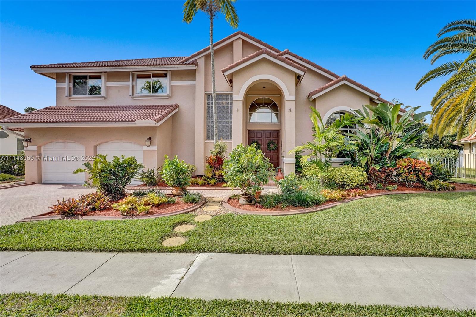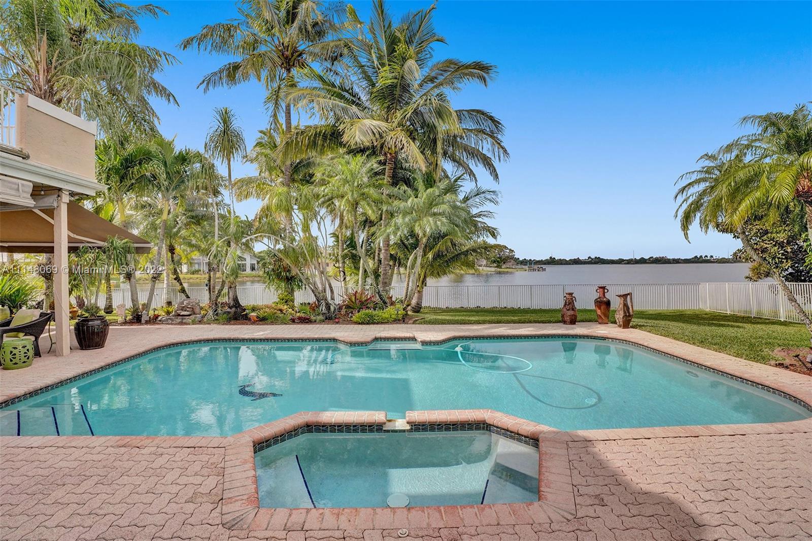 THIS HOME IS EXQUISITE & HAS EVERYTHING A DREAM HOME COULD POSSIBLY HAVE! YOU'LL FALL IN LOVE WITH THE BREATH-TAKING WIDE WATER LAKE VIEW THAT LOOKS MORE LIKE AN OCEAN VIEW & OFFERS THE MOST SPECTACULAR SUNSETS YOU'VE EVER SEEN! THIS HOME HAS IT ALL WITH NEW SPANISH PORCELIN TILE DOWNSTAIRS, UPDATED KITCHEN, CROWN MOLDING, ONE BEDROOM DOWNSTAIRS WITH ENSUITE CABANA BATHROOM LEADING OUT TO THE PATIO, POOL, SPA & OUTDOOR BUILT-IN BBQ & BAR. THREE BEDROOMS UPSTAIRS WITH A PRIMARY BEDROOM & BATHROOM & PRIVATE BALCONY THAT YOU'LL NEVER WANT TO LEAVE! ROOF IS 2006. BRAND NEW OUTDOOR LIGHTING, NEW POOL HEATER & NEW PVC. ACCORDIAN HURRICANE SHUTTERS THROUGHOUT. RETRACTABLE AWNINGS IN THE PATIO AREA. THIS HOME IS BUILT FOR ENTERTAINING & LIVING LIFE TO THE FULLEST!