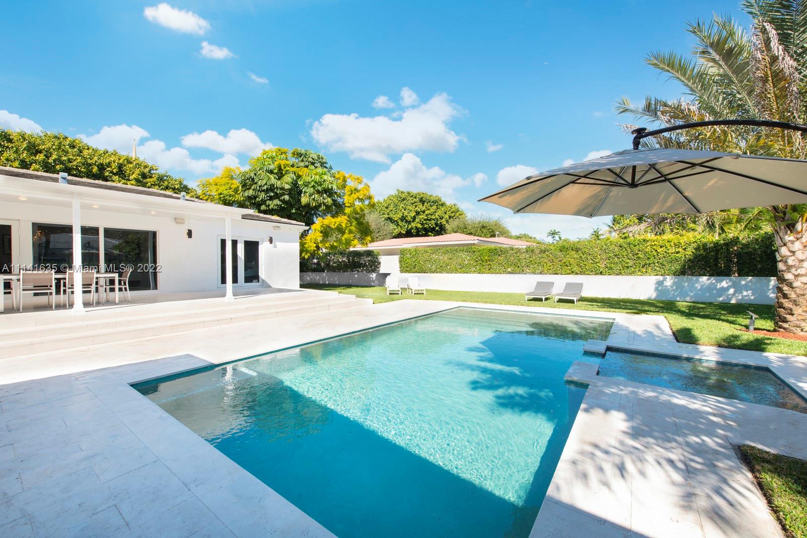 Complete renovation in an ideal Miami Shores location. This home is situated on an oversized lot and although its move in ready there is plenty of room for expansion. Open living/dining with oversized center island make this home great for entertaining. a wall of sliding doors leading to a covered rear patio overlooking the private pool. Split bedroom plan with a deluxe master suite . all components are no older than 3 years and everything was done with permits. Do not miss this lovely home, its breathtaking!