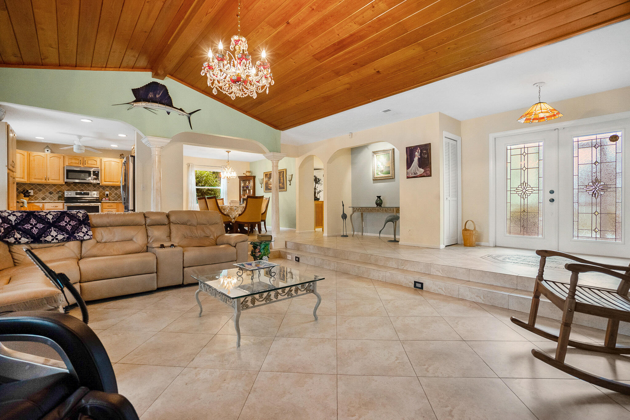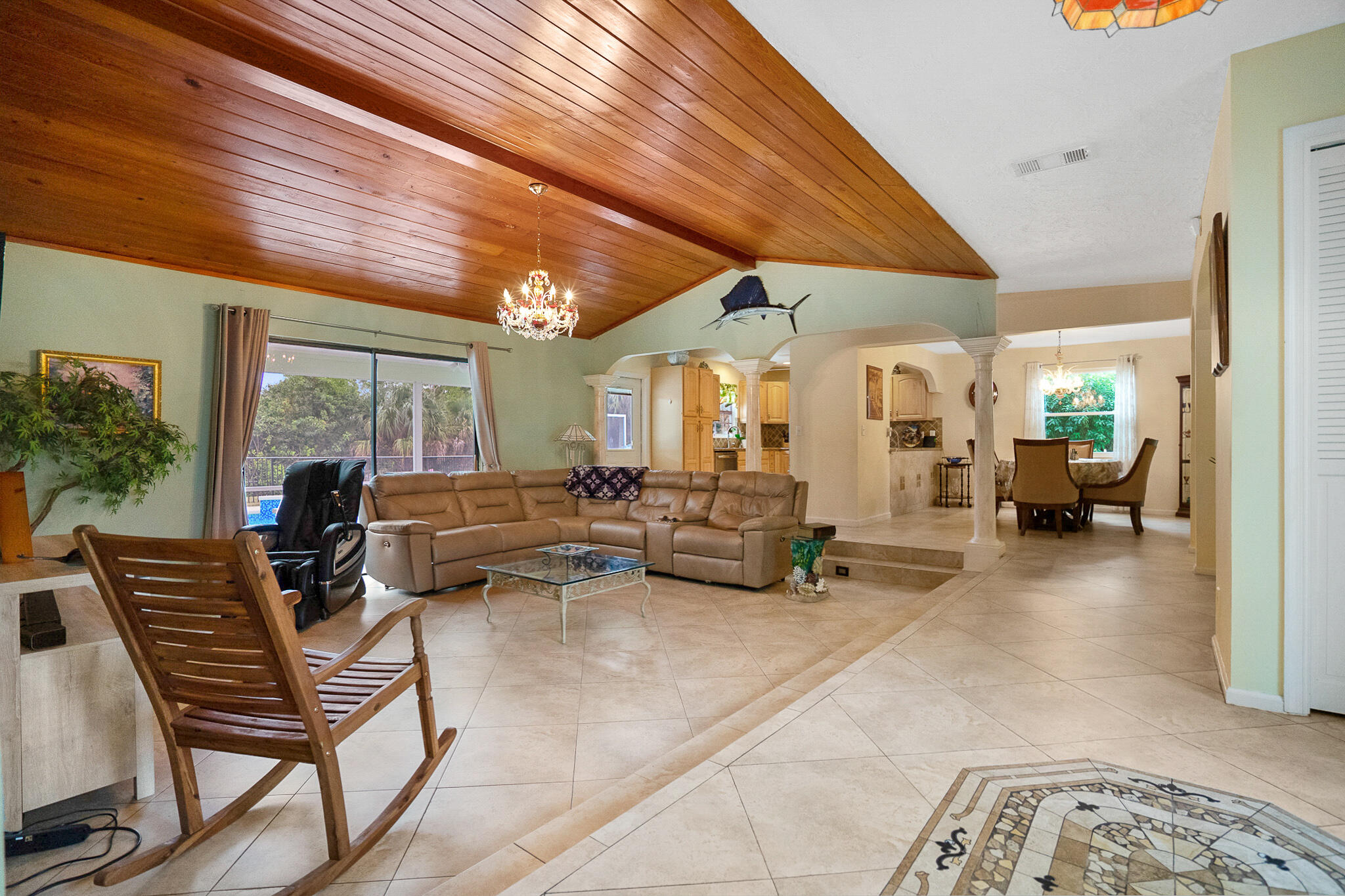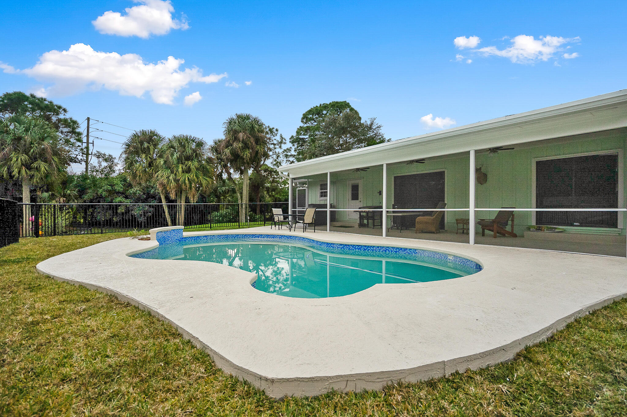 3 Bedroom, 2.5 bath with fenced yard, city water, newer A/C, Water Heater, Appliances all within approximately 3 years. Inground pool, extra lot in the rear for building guest house, large garage, or others. Exterior freshly painted, screens have been newly installed on enclosure. Extended driveway for numerous cars. Canal on 2 sides of property. 2 houses from community park. 3 Sheds. Sunken Livingroom. 15X30 pool.1.72 acres.