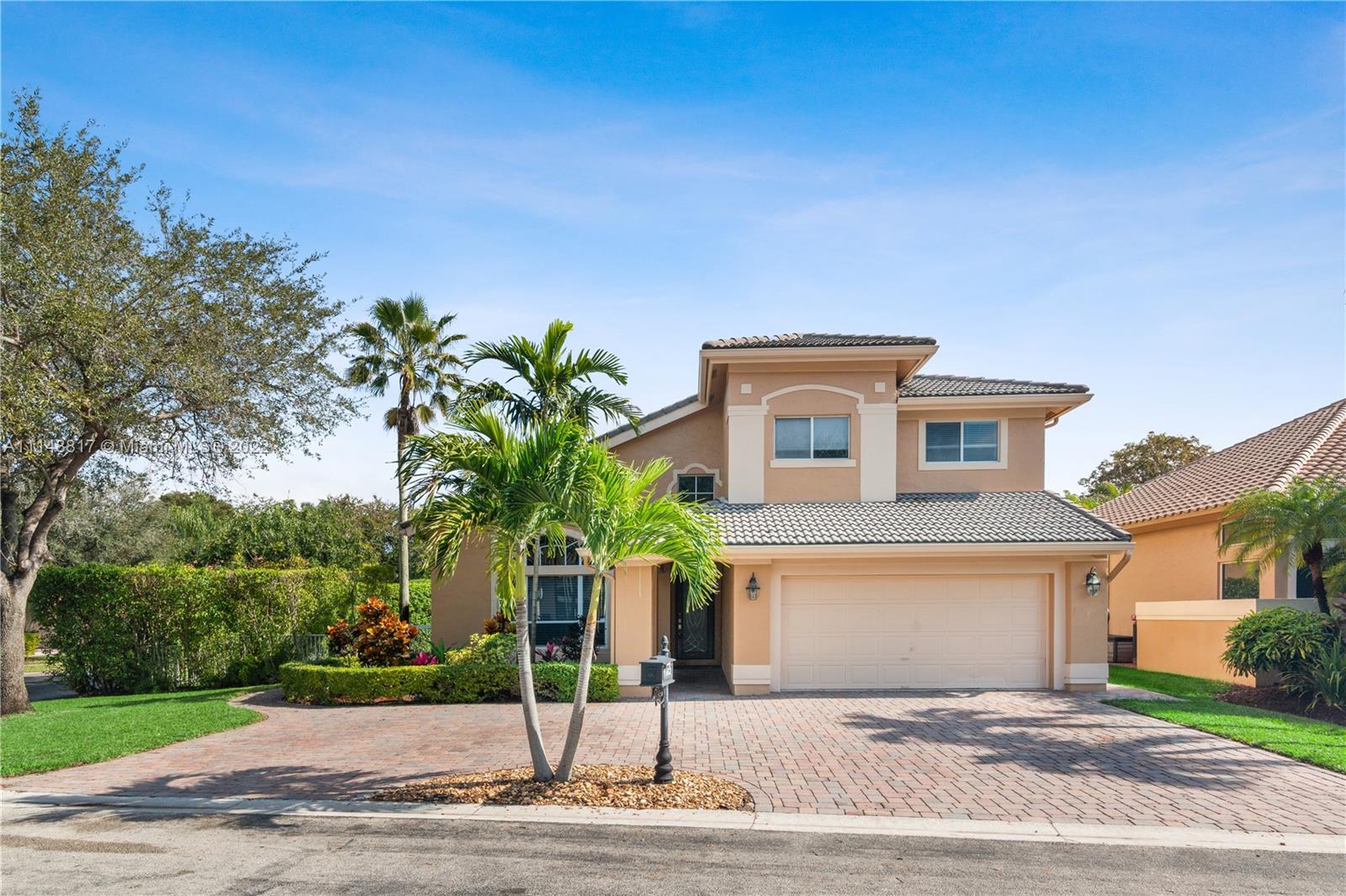 Come live in the premier community in all of Pembroke Pines at Grand Palms Golf Resort. Home is located in much sought after subdivision of Santa Barbara. This stunningly beautiful and spacious home with gleaming natural light, high vaulted ceilings, grand oversized formal living and dining great room, huge family room, kitchen w/ SS appliances, granite counters and informal dining area. 1 bedroom and 1 bathroom downstairs and large Master Suite with marble bathroom w/ spa shower and jacuzzi tub upstairs. Remaining 3 bedrooms with new floors along with finished landing with study areas also upstairs. Unmatched REAL hardwood Brazilian Cherry floors, 2 ACs, new paint, pool, 2 car garage and a great backyard. Gated, 2 entrances, lots of dining and shopping options along with A+ schools.
