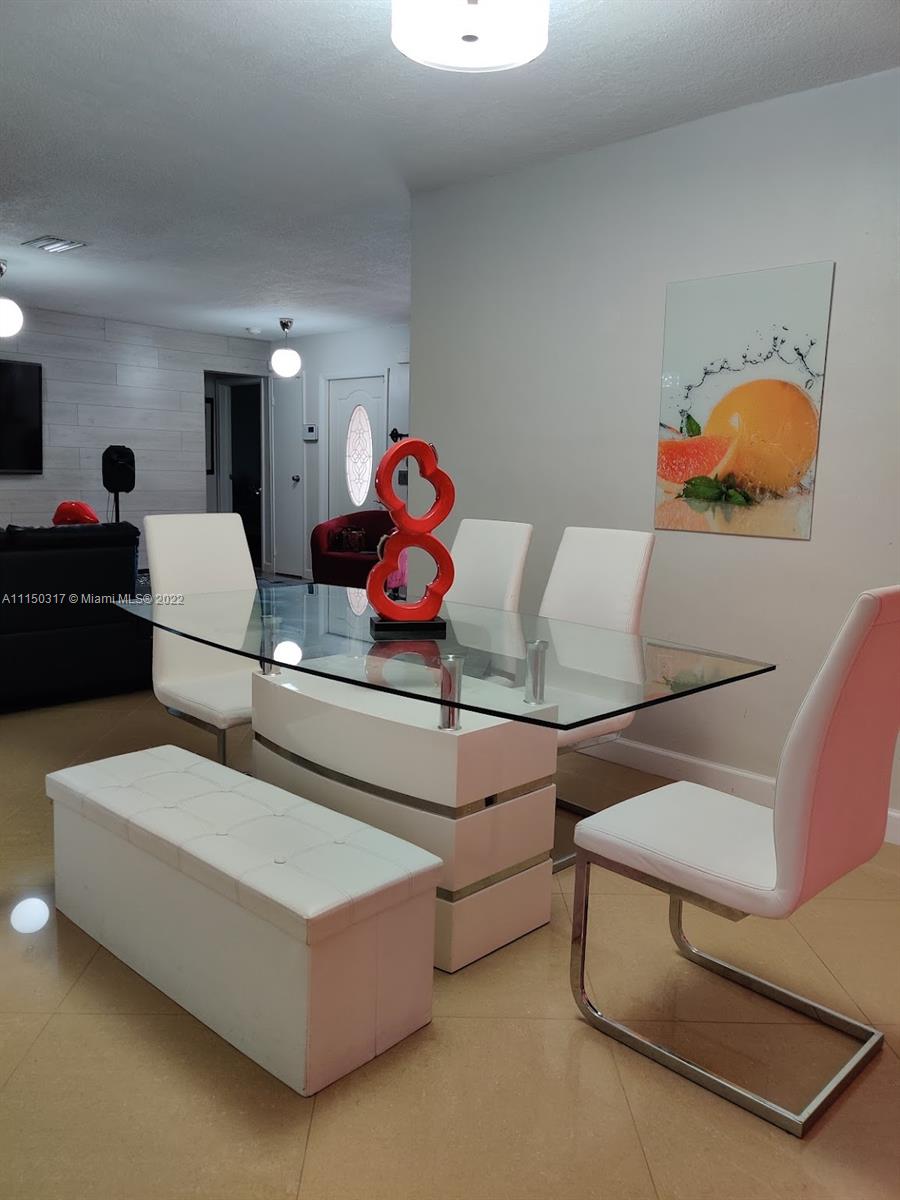 Spacious 3/2 updated home in Miramar. This home has an open floor, eat-in kitchen that has granite countertops, separate living and dining room, updated bathrooms, porcelain tile throughout, and vinyl/laminate floors in the bedrooms. The master bedroom/bathroom has been completely remodeled. The whole house has been freshly painted. Two car garage, circular driveway with space for 5 cars, accordion hurricane shutters all around, Fenced paved. Centrally located to the Turnpike, Hard Rock Stadium, Calder Racetrack and Casino, shopping centers and more. No HOA!!!, Actual Living area as by sketch's Broward County is 2103 SQFT. Offer not subject to appraisal, POF required with contract.