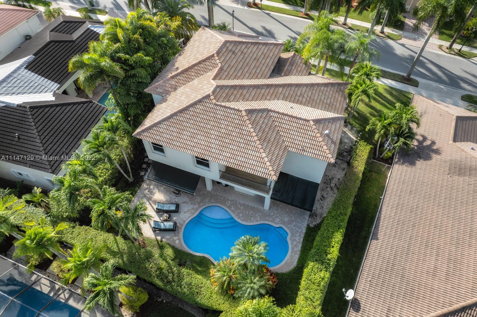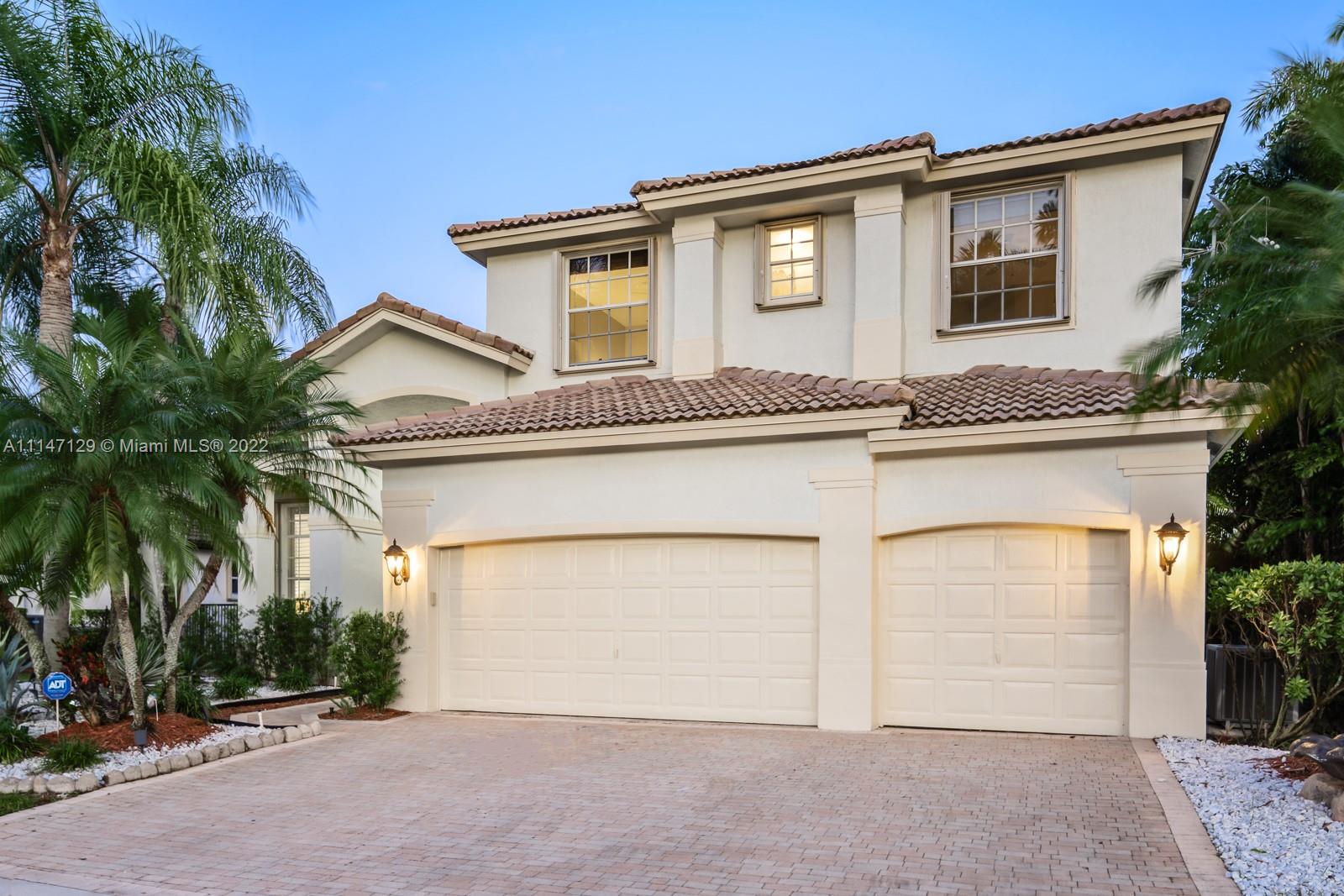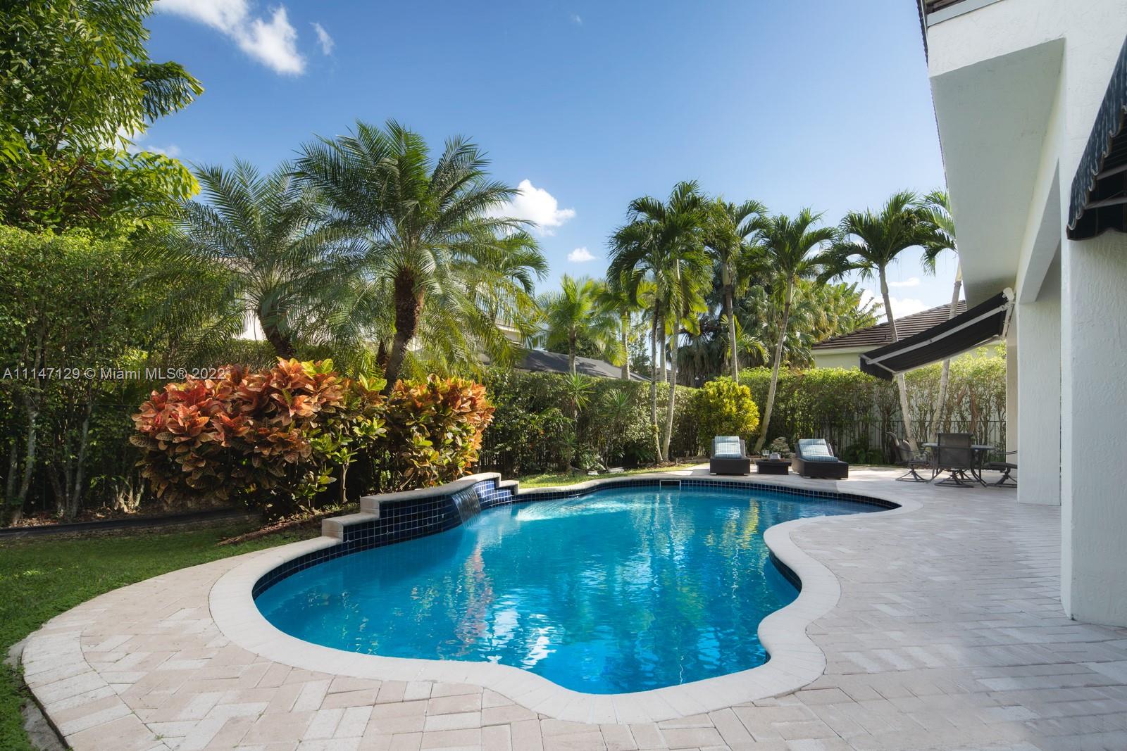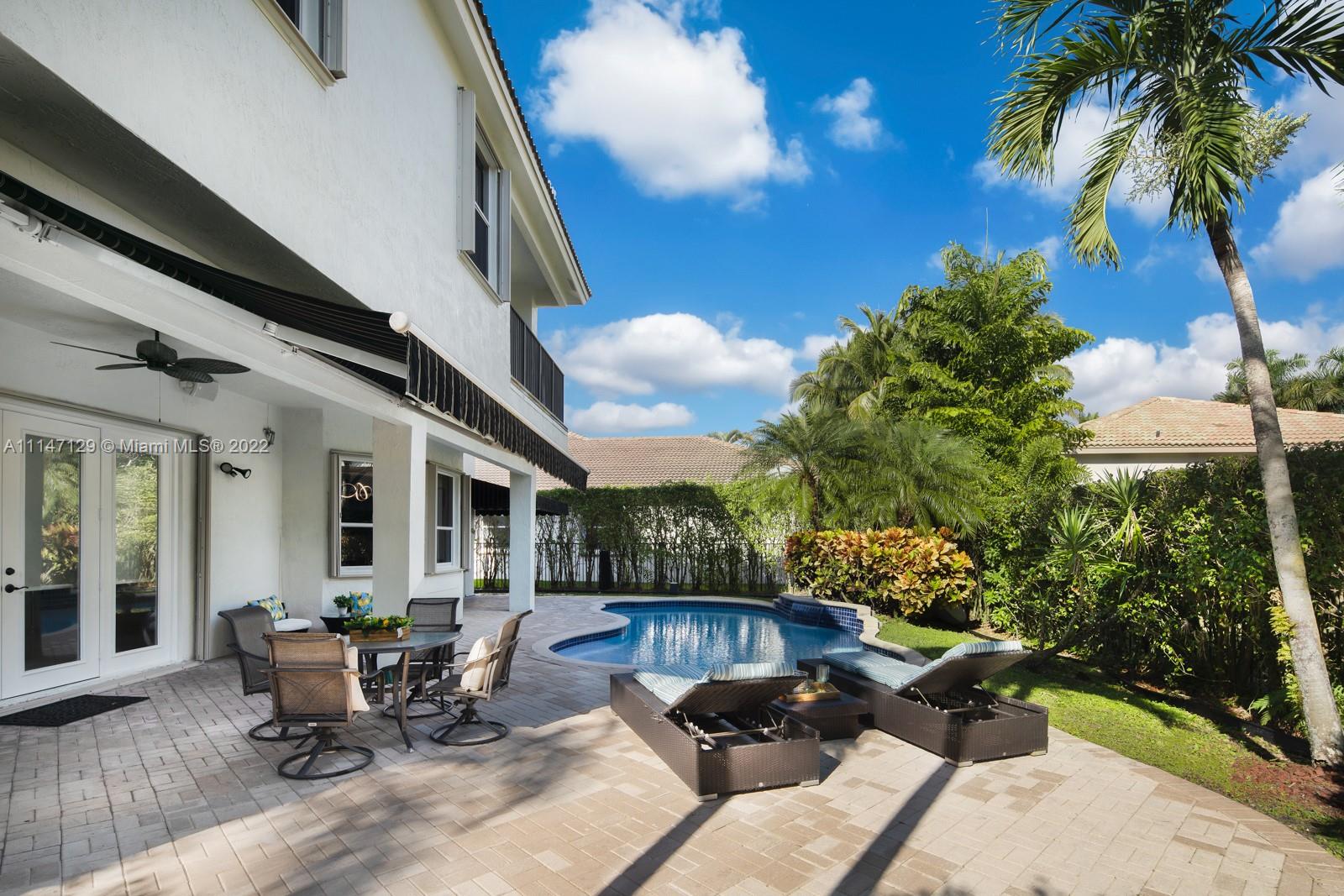 Welcome to Casa Jardin at the prestigious gated golf community of Weston Hills Country Club. This marvelous 5 bed-4 bath, 2-story residence welcomes you to a bright grand entrance featuring double height ceilings in the living room, a formal dining, a spacious family room, and an office/den. The modern kitchen has a center island, a breakfast nook, stainless steel appliances, and quartz countertops. The oversized master bedroom on the second floor boasts a sun filled balcony and a spa-like master bath, with a luxurious freestanding tub and an oversized shower. The lush fenced private backyard features an oversized free-form pool and shaded outdoor dining area with retractable patio cover. Marble floors throughout, engineered wood in bedrooms, accordian shutters, 3 car garage. A+ schools.