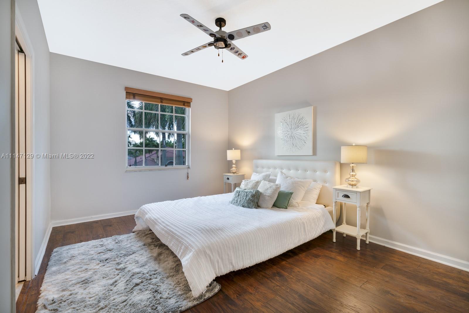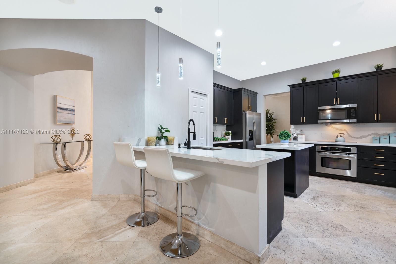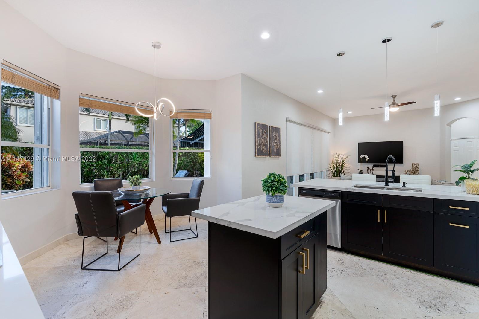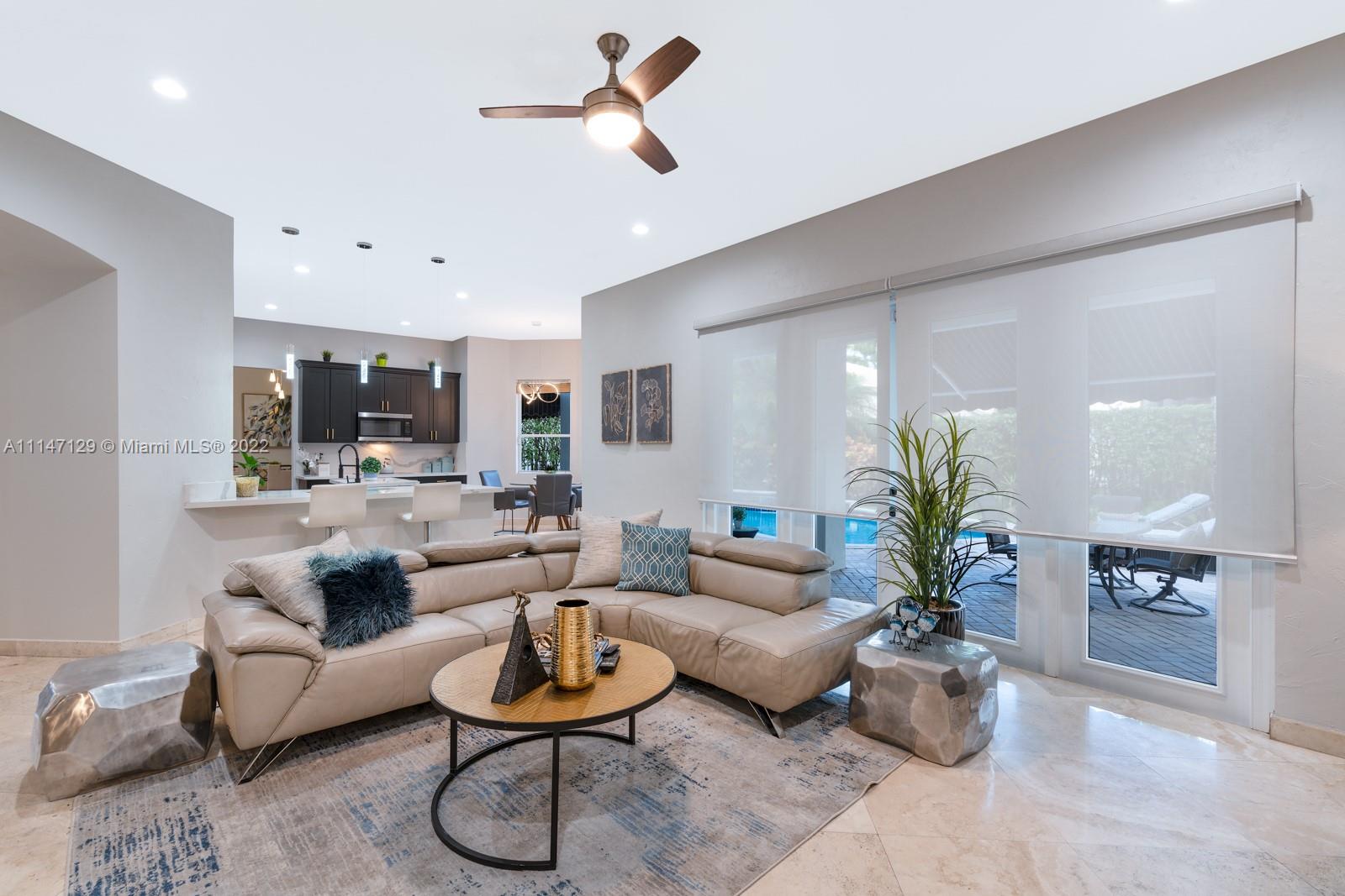 Welcome to Casa Jardin at the prestigious gated golf community of Weston Hills Country Club. This marvelous 5 bed-4 bath, 2-story residence welcomes you to a bright grand entrance featuring double height ceilings in the living room, a formal dining, a spacious family room, and an office/den. The modern kitchen has a center island, a breakfast nook, stainless steel appliances, and quartz countertops. The oversized master bedroom on the second floor boasts a sun filled balcony and a spa-like master bath, with a luxurious freestanding tub and an oversized shower. The lush fenced private backyard features an oversized free-form pool and shaded outdoor dining area with retractable patio cover. Marble floors throughout, engineered wood in bedrooms, accordian shutters, 3 car garage. A+ schools.