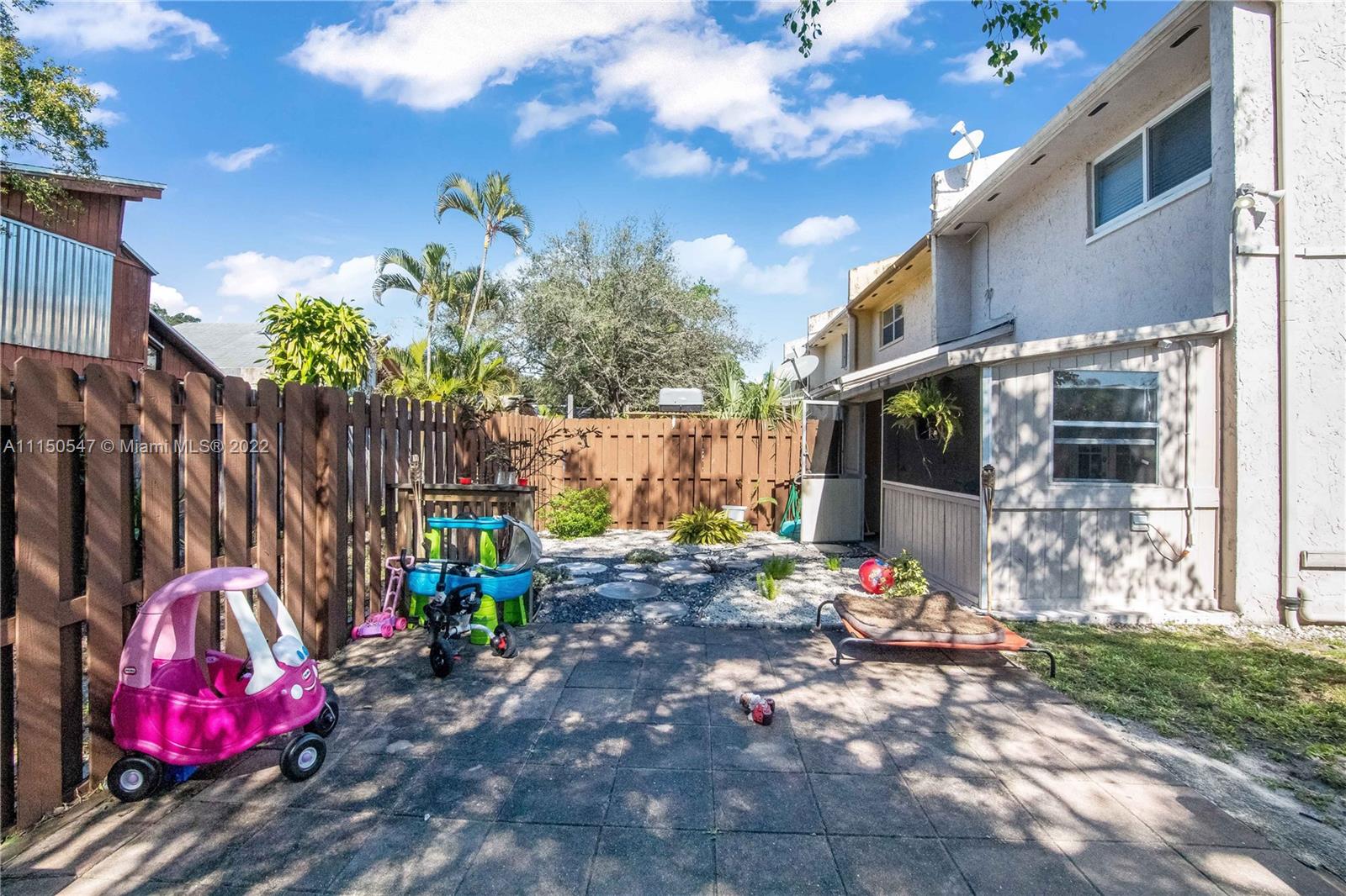 3 bedroom, 2.5 bath townhouse in popular Palm-Aire Village off a beautiful tree-lined street. Large corner lot. Updated kitchen and 1/2 bath. Tile throughout first floor, new carpets on second floor. Spacious fenced in backyward. Two parking spaces right in front. Low HOA! Pets allowed. No rental restrictions! Convenient location to highways, shops, restaurants, airports, and beaches.