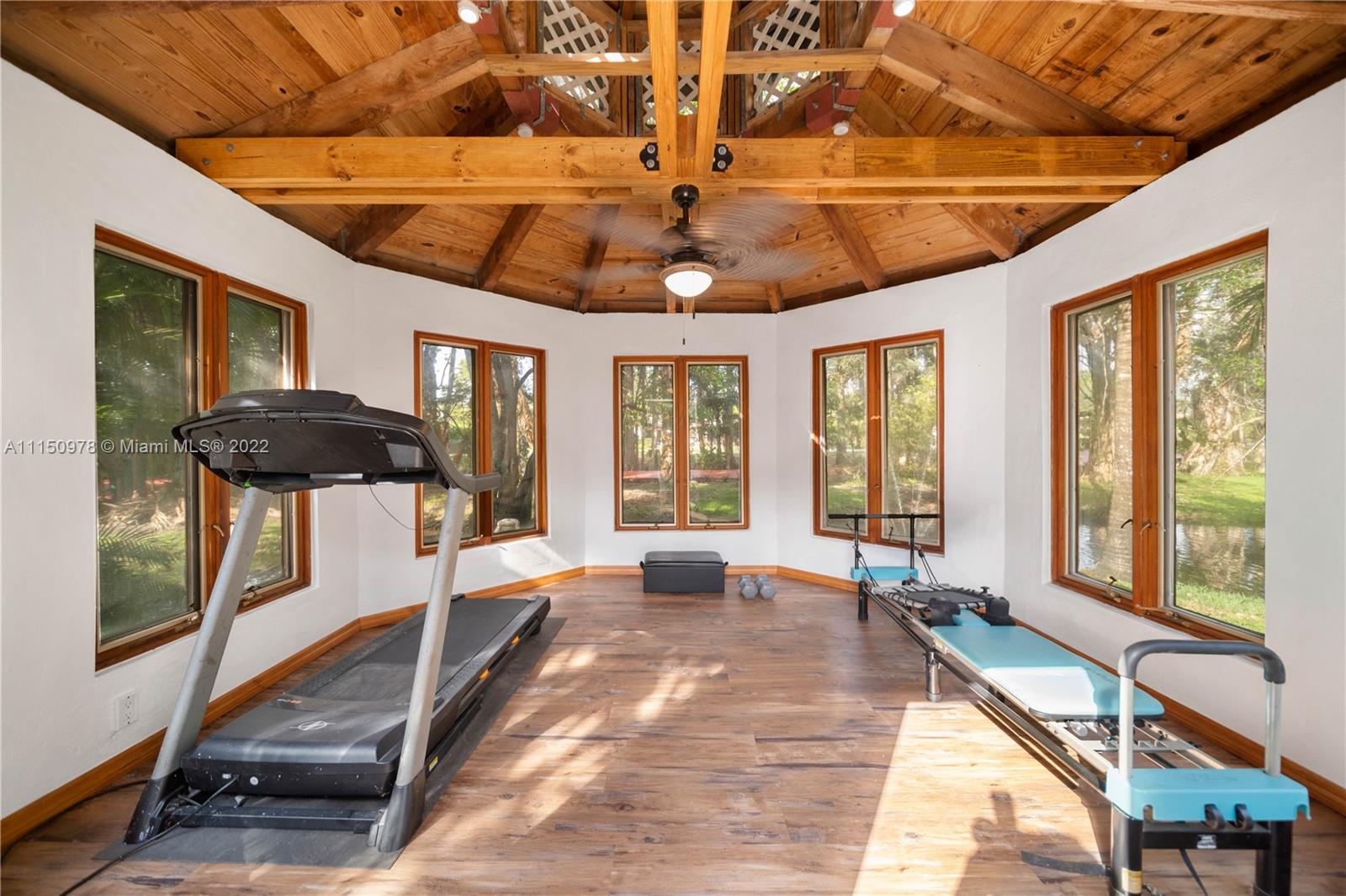 This beautiful gated private residence has 1.28 acres, with a great layout! Remodeled and one of a kind, you will feel like you are living in the country but surrounded by everything the city has to offer. This home has been remodeled, but some of its original charm has been left untouched. Antique European tile in the foyer, keystone fireplace, oak floors, and new carpet in all rooms make this property elegant and cozy. Junior suite in the first floor, this home has 4.5 bathrooms, 4 bedrooms and a media room with a surround system that will make you want to stay home and watch a movie. The extensive space outside makes it perfect for parties. Built in BBQ, large pond with a island gazebo in the middle used as a gym room, just cross the charming bridge and get to it.