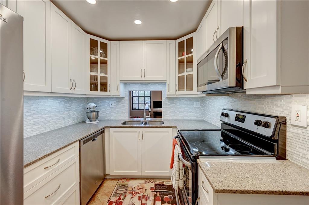 Rarely available 2bd/2.5bath unit located in the tropical gardens of Spanish Springs. This unit is clean and inviting. First floor: Updated kitchen, 1/2 bath, laundry, den & a combined living/dining room with glass sliders to a private fenced in patio. Second floor: master bedroom w/ full en-suite and a second bedroom also with it's own full guest bath. (Double master!) Gorgeously maintained HOA community with lush greenery throughout. Out the back patio gate, you are just steps to the pool. There is a clubhouse with a fitness room and rentable space for parties. Remodeled parking w/ beautiful pavers and 2 spaces. Spanish Springs is near all the local conveniences, but when you are home, it feels like a little private oasis, tucked away from the hustle and bustle. First showings 2/4 & 2/5