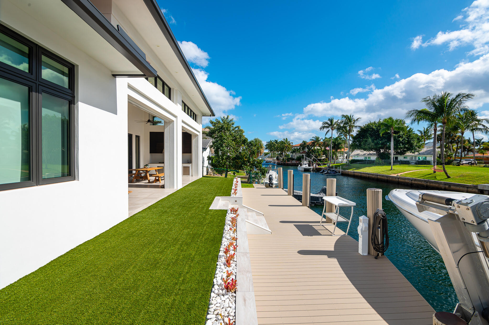 With desired southern exposure, this single-story home is located on a deep-water canal in the established neighborhood of Golden Harbour--walking distance to Mizner restaurants, Fifth Avenue shops and the best beaches in Boca Raton. This property is a boater's paradise with 85-feet of waterfront, including a 75-foot dock with 20,000-lbs elevator boat lift. Custom built and immaculately maintained, this residence features indoor and outdoor living at its best! Designed to be maintenance free (by a yachting couple that spends months away from home), it includes Turf grass, 1-touch remote control hurricane screens, custom impact glass and doors, a summer kitchen, and private backyard.