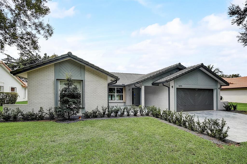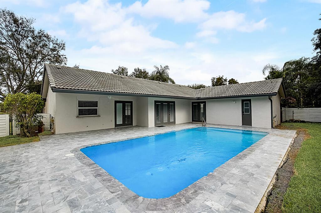 This Coral Springs one-story home offers an in-ground pool, a patio, granite countertops, and a two-car garage.