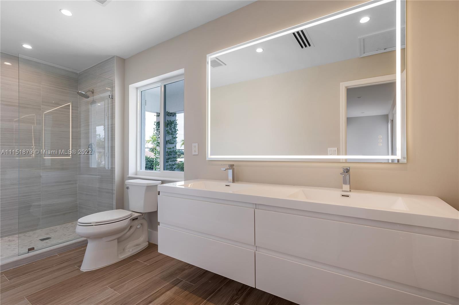 Stunning - 5 bedrooms - virtually brand new - designer home on the desirable Bayview Drive. 4 minutes drive to Pine Crest School! This spacious home has it all: large heated swimming pool - private 27 ft dock with easy ocean access - double garage. The home was designed with the boutique-hotel vibe in mind. From it's cathedral ceilings with wood beams, through the live-edge slab vanity-top, to the attractive clawfoot bathtub. Exceptional functionality and privacy with 2 en-suite master bedrooms on the first floor (with a split layout) and 3 bedrooms on the second floor. The home is completely move-in ready with a fully equipped laundry room and fully built-out closets.