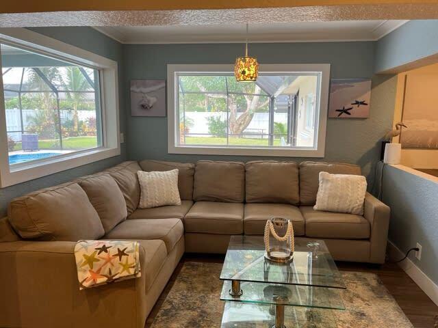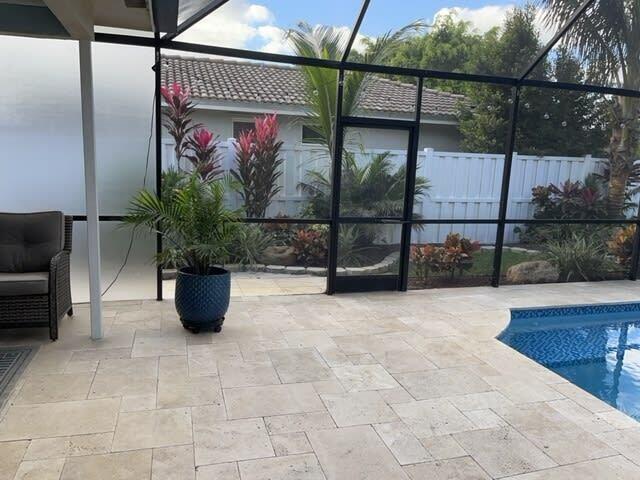 Incredible 4 Bedroom 3 Bath POOL home! Split bedroom plan with 2 Master suites! Backyard tropical OASIS with screened in travertine patio and pool with huge bench and waterfall. Barrel-tile roof 2015. New AC, handler, and complete ductwork 2021, hurricane impact windows and doors 2020. New pool remarcite and pool pump 2020. Porcelain wood plank tile flooring throughout, gourmet kitchen complete with built-in double convection ovens, glass stove top, & refrigerator 2019, dishwasher 2021, crown moldings, a luxurious cabana bath with free standing soaking tub, Game room! Plumbing up to newer code run through attic. A MUST SEE!