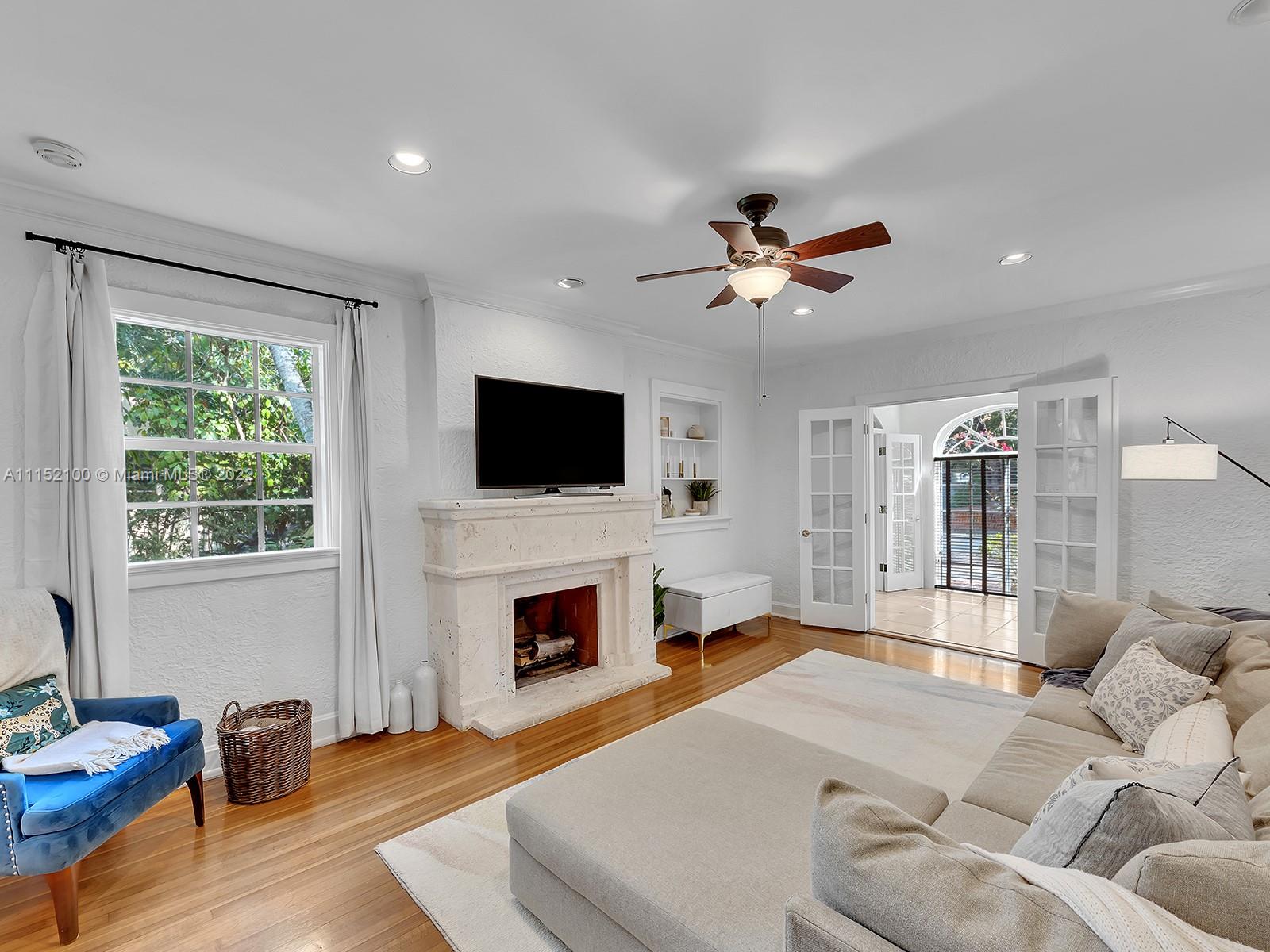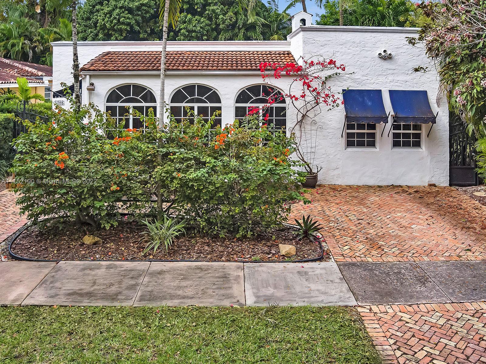 Enjoy this perfectly maintained Old Spanish in North Gables , exuding grace & comfort. Upon entering , walk into a sunroom, with walls of windows . This large lite & brite home has two bedrooms / One Bath home with a separate den/office and features a wood burning fireplace, hardwood floors, high ceilings, tankless water heater, closet built ins & a charming brick garden with a generous back yard . All windows are either impact or have shutters. Short drive to Downtown Coral Gables, Venetian Pool , Biltmore Hotel , Restaurants and shopping as well as the airport .