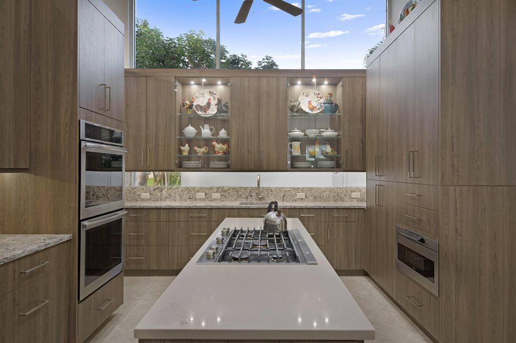 Welcome home! Located on a cul-de-sac this lakefront courtyard one story home sits on more than a 1/4 of an acre and features an open split layout with 3 bedrooms in the main residence plus a guest house with ensuite bath. Double doors open to the expansive and inviting courtyard made for year round entertaining. A recently added summer kitchen in 2020 boasts stone countertops, grill, gas cooktop, wine refrigerator and sink is the perfect addition to the resort style pool and spa. The guest house with ensuite bathroom can be a used as a gym, office or extra guest room. High ceilings and lake views in both the living room and dining welcome you in the main house. Flat ceilings and LED lighting add to the clean and bright feel of this enchanting home.Spectacular chef's kitchen remodele