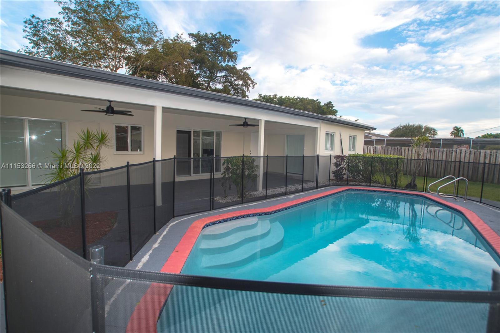 Modern 4/2 totally updated Home for Sale. NO HOA with No Rental Restrictions. Large Lot with Private Pool equipped with child fence. Wide-open space inside the open is great for entertaining. The living room opens up to a huge covered patio equipped with ceiling fans. All windows and sliding glass doors are hurricane impact resistant. The home has been fitted with large porcelain white tiles. New updated modern kitchen with full quartz island, stainless steel appliances, and range hood. Both bathrooms are fully renovated with new showers and sinks. Master Bedroom opens up to patio along with the new closet system in master closet. All updates are less than 2 years old. Located in Plantation close to shopping and good schools.