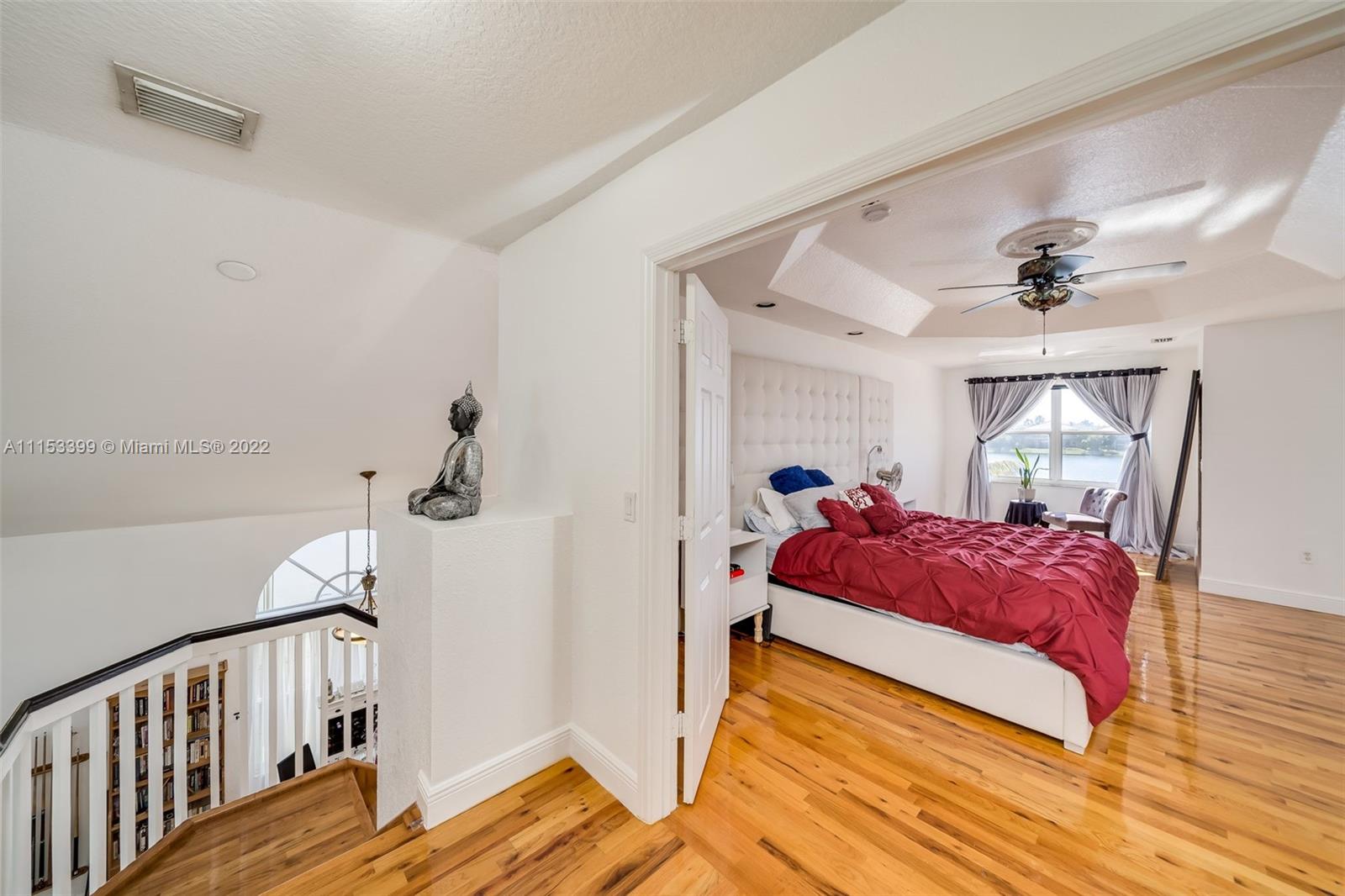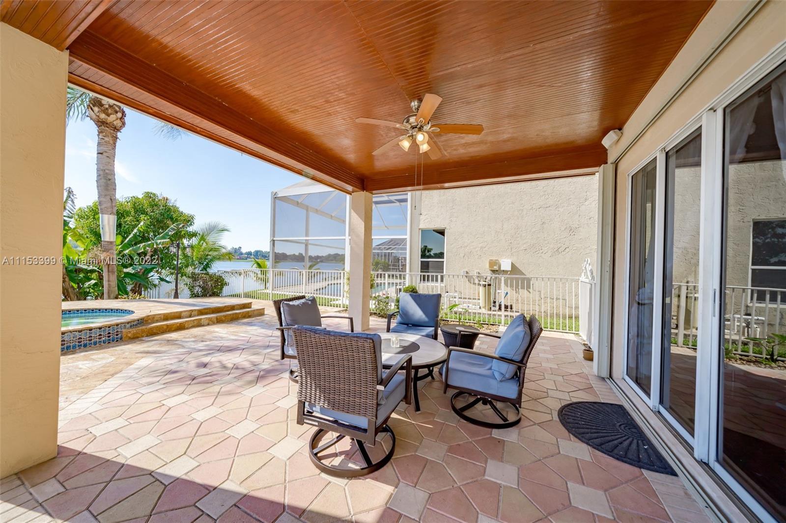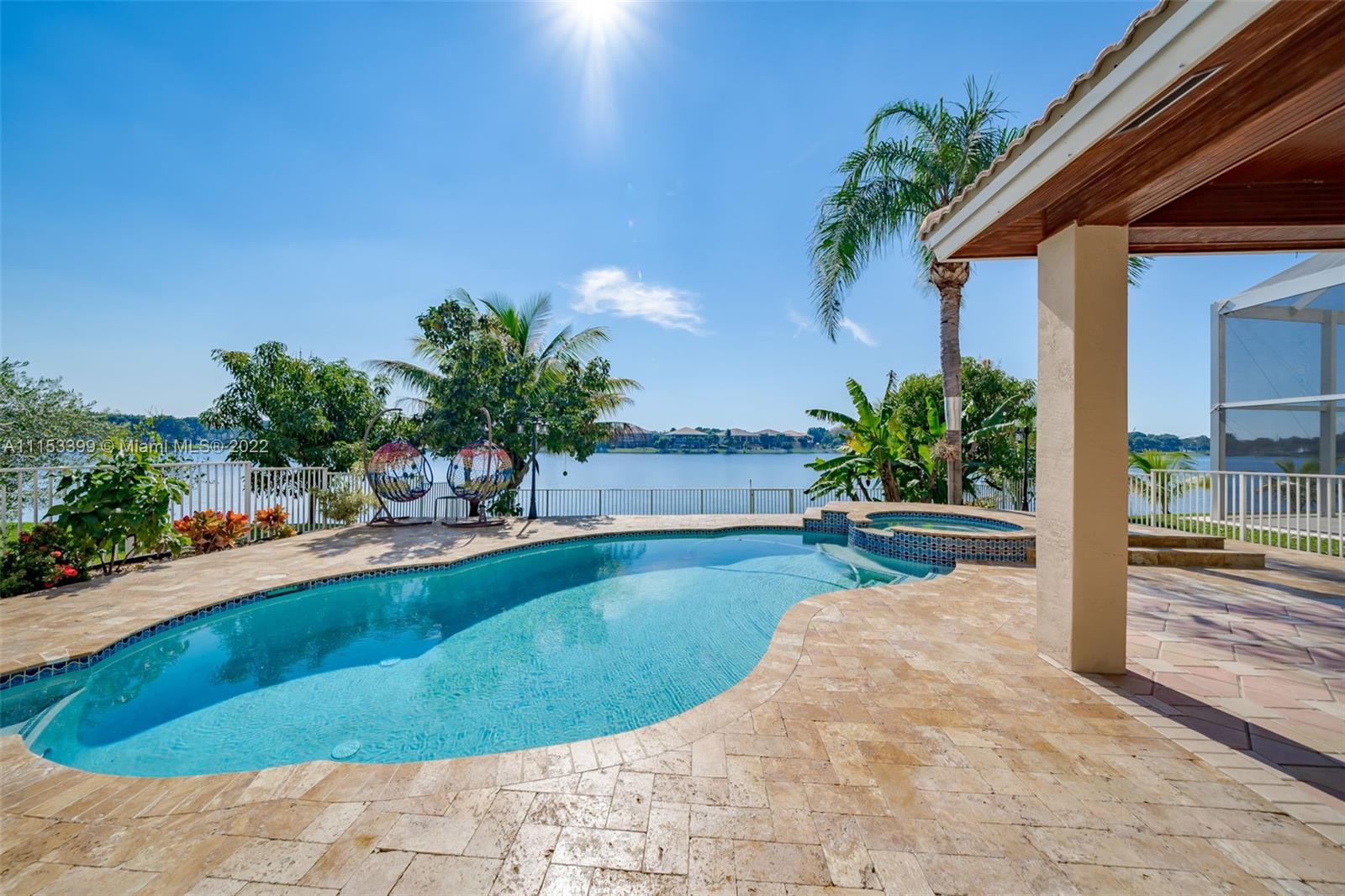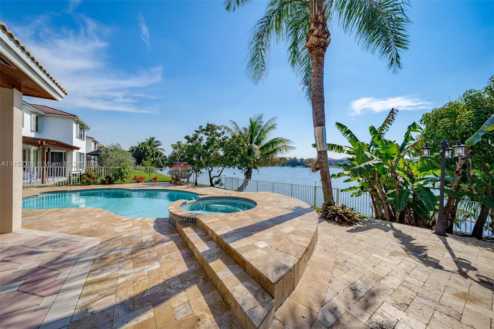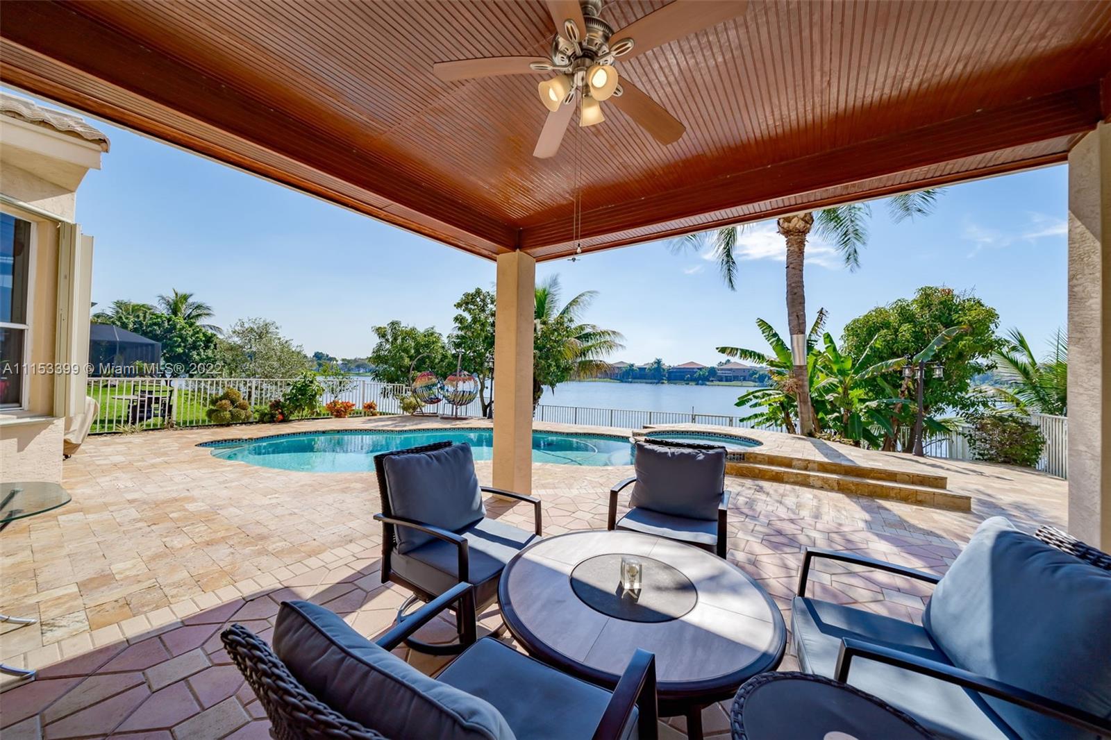 A TRUE GEM AWAITS YOU! This beautiful home is everything you've been looking for. From the moment you walk in you are mesmerized by the volume ceilings, open space, solid wood flooring and breath taking panoramic views of the lake. The Master Suite is massive with a sitting area and a "True" His & Hers Master Bathroom. Enjoy the sunrise and sunsets from your backyard or soak the sun in your salt water/ Heated pool with a spillover spa. Other features include: Natural Lighting, Upgraded Kitchen, SS Appliances, Walk In closets, Upgraded Bathrooms, Garden Tub, Jack & Jill Bedrooms, Downstairs bedroom for guests, teens or in Laws, Full size laundry room with sink, LOW HOA fees, Paved driveway, 2 Car Garage, Complete Accordion shutters, Fruit Trees, Gated Community & Community Amenities.