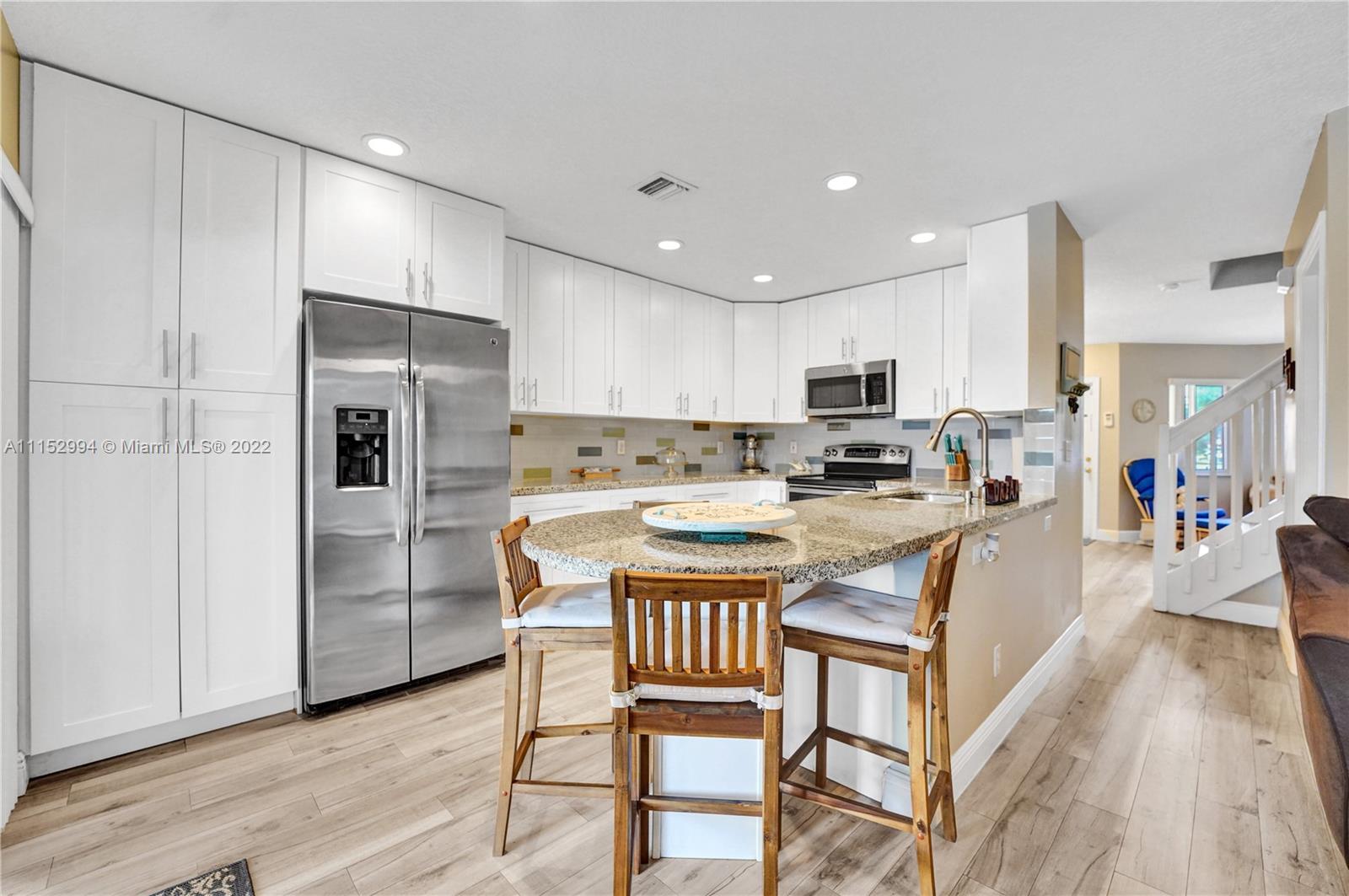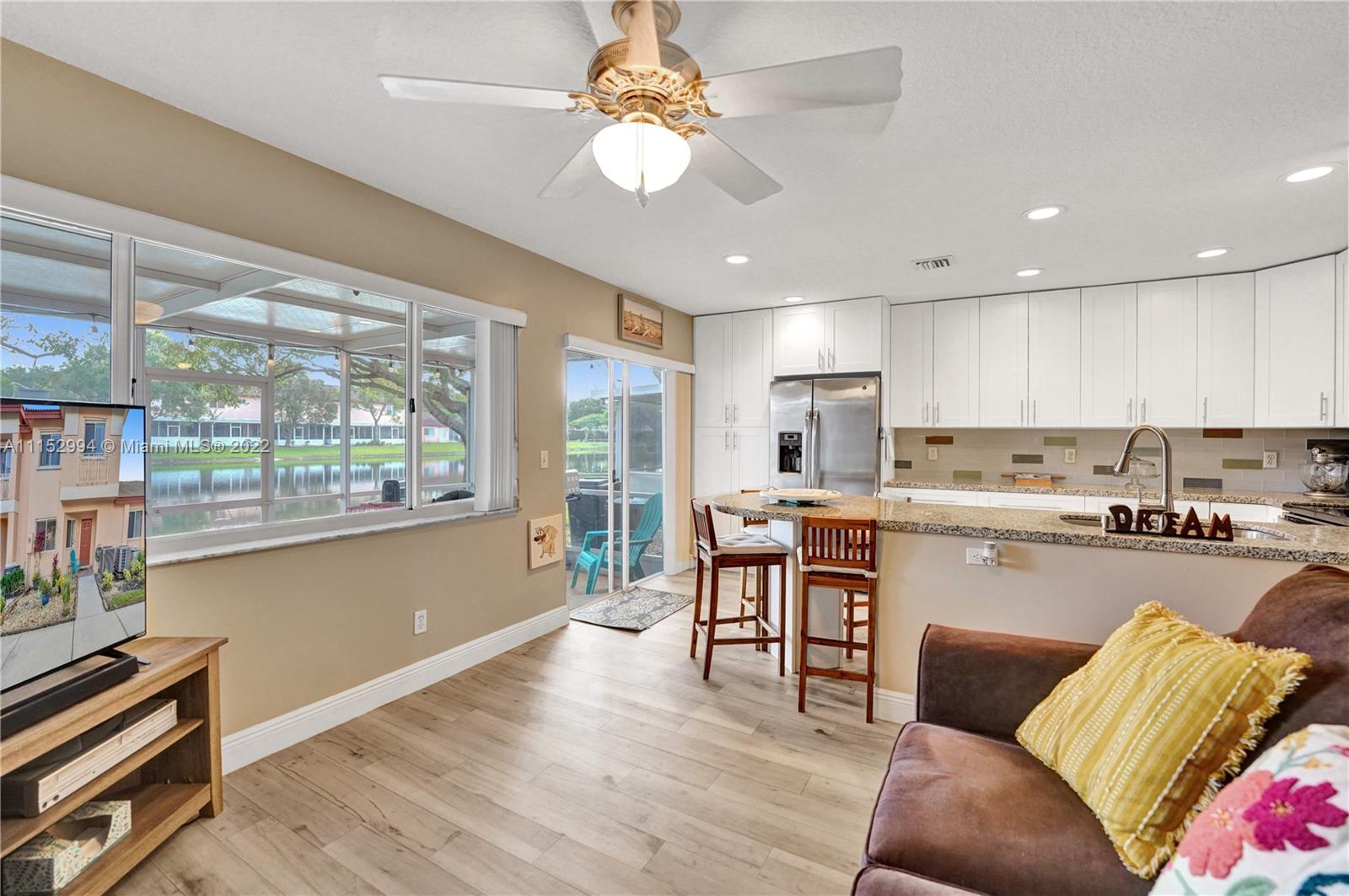 Welcome home to this beautifully updated 3/2.5 lakefront home in sought after Malibu Bay. This home is in pristine condition & offers many upgrades in addition to being on a peaceful lakefront lot. Features include a beautifully renovated kitchen with expanded & ceiling high, soft-close cabinets, SS appliances, beautiful backsplash & granite counters including a custom island/breakfast bar. Newer wood-look tile floors throughout & brand new PVC flooring on stairway. Newer vanities in 2 of 3 bathrooms. Enjoy the best of FL living on the large screened patio overlooking the lake. This gated community offers great amenities & is zoned for some of the areas top schools. This is a must-see home and will not last!