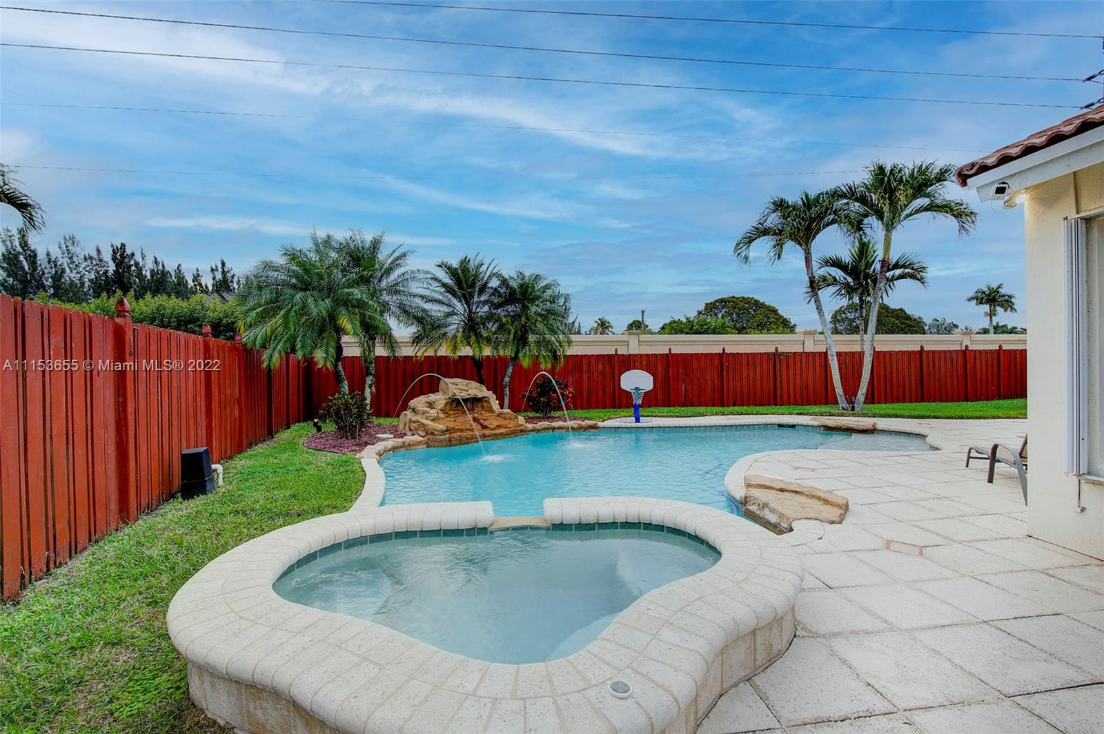 The search is over! Come step inside this BEAUTIFUL 4 bedroom 2 bathroom pool home located in the highly sought after Encantada Gated Community! Open floor plan with natural lighting throughout. Enjoy pool views from the master bedroom, dining room and living room. Recently renovated kitchen  with beautiful center island, stainless steel appliances and ample storage space. Updated flooring throughout! Wonderful backyard with waterfall pool and spa plus colored lighting, jets and new motors. Large size patio that makes a great space for entertaining and enjoying Florida days! Accordion lock hurricane shutters and new Craftsman garage door opener and closet storage in garage. MUST SEE!!!!