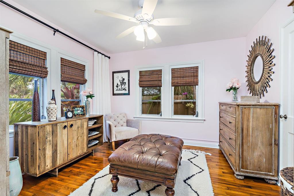 Adorable Key West cottage style home in the heart of desirable Historic Flamingo Park! This charming and lovingly updated 3BR/1BTH home also has a 1BR/1BTH guest cottage. Situated on a high lot, this home shines with original details finished with modern touches. Gleaming hardwood floors throughout, wood burning fireplace with original mantel in living room. Formal dining room opens to gorgeous kitchen with white shaker cabinets, tiled backsplash, quartz countertops & black stainless steel appliances. Renovated bath has a shower with plenty of countertop space. Through the private backyard the cottage hosts a kitchen, full bath, large bedroom plus large storage area. Close proximity to Downtown, Rosemary Square (CityPlace), Palm Beach Island, and Grandview Warehouse District