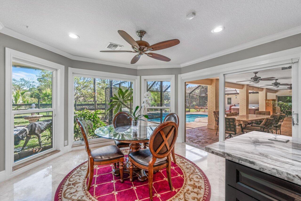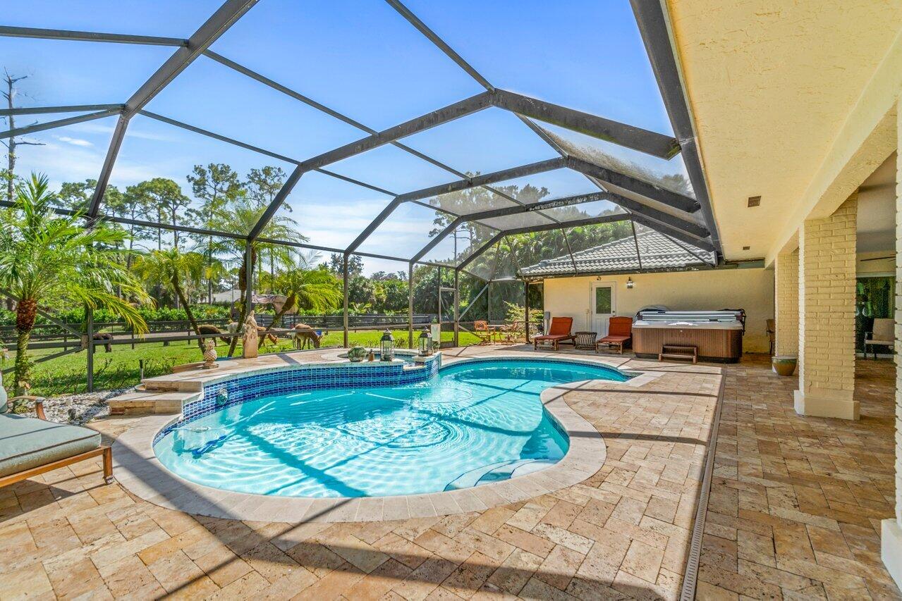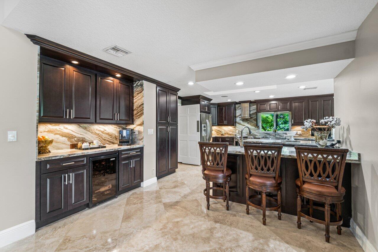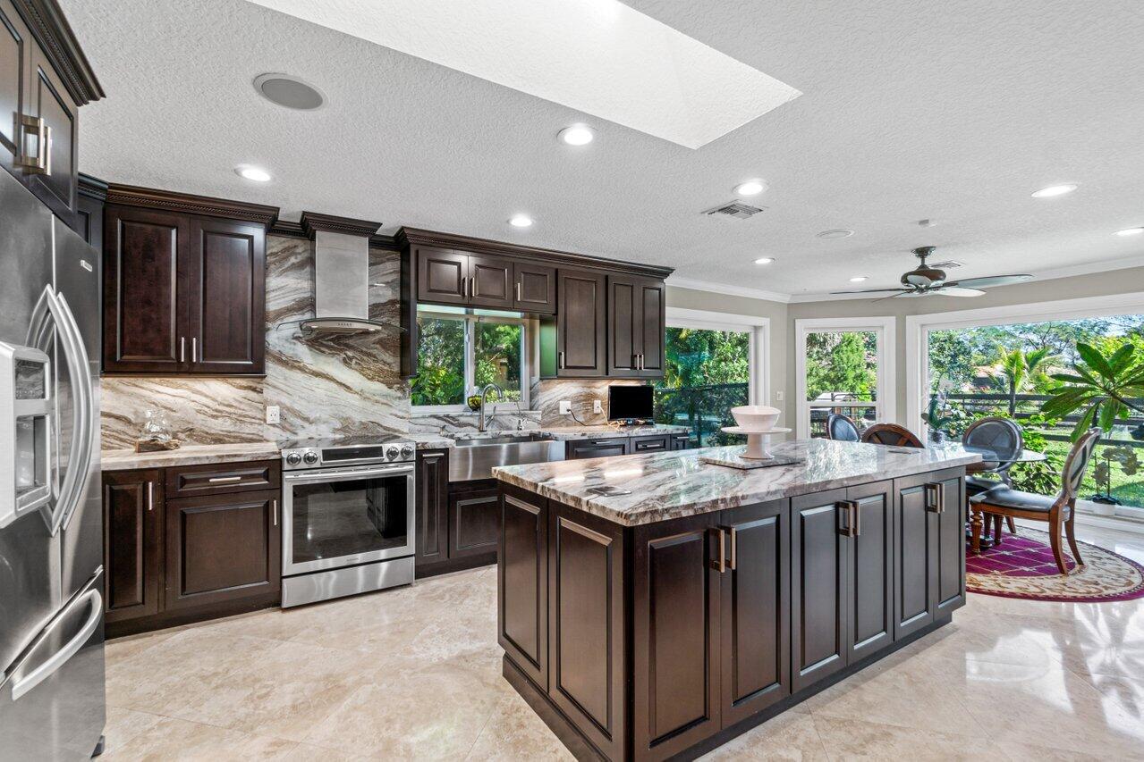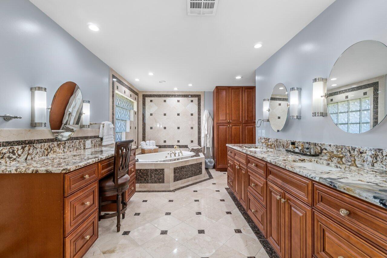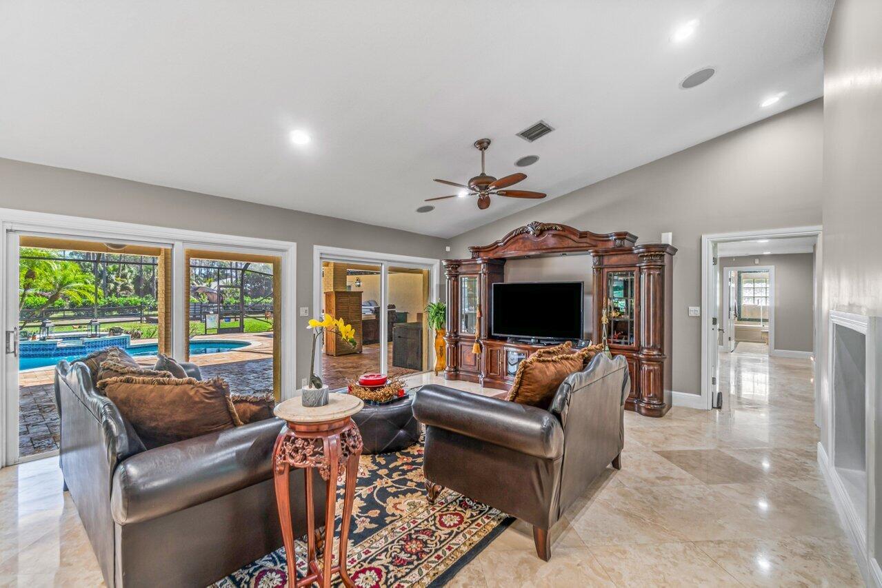 Plenty of room to roam in this true 5 bedroom, 3.5 bath sprawling ranch with an open concept floor plan situated on 1+ acre in highly desirable Pine Tree Estates*Newer remodeled gourmet kitchen with custom solid wood cabinets boasts quartzite counters and backsplashes, SS appliances, 2 large farmhouse SS sinks, bountiful storage*Living areas have vaulted ceilings, skylights, marble and new wood floors in LR and BR's*Large family room and living room have dual sided wood burning fireplace*Spacious Primary BR suite has huge custom closet built ins*Primary bath with double sinks, separate makeup station, whirlpool tub, shower with jets*4 additional BR's all generously sized w/ built in closets. 1 BR has en-suite bath with shower, perfect for inlaws or guests*