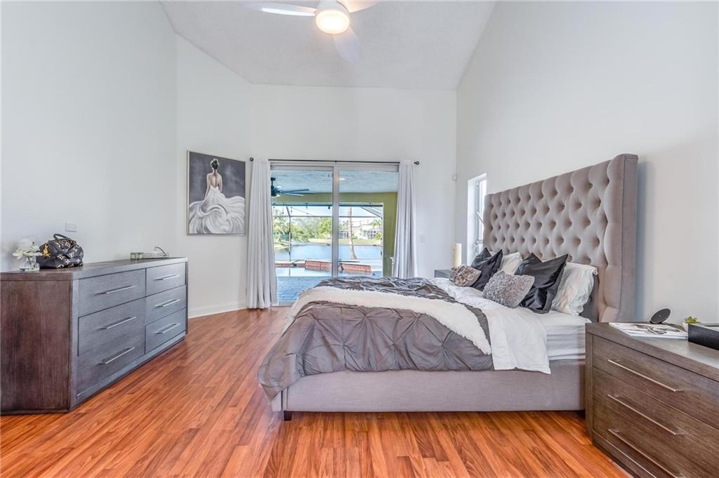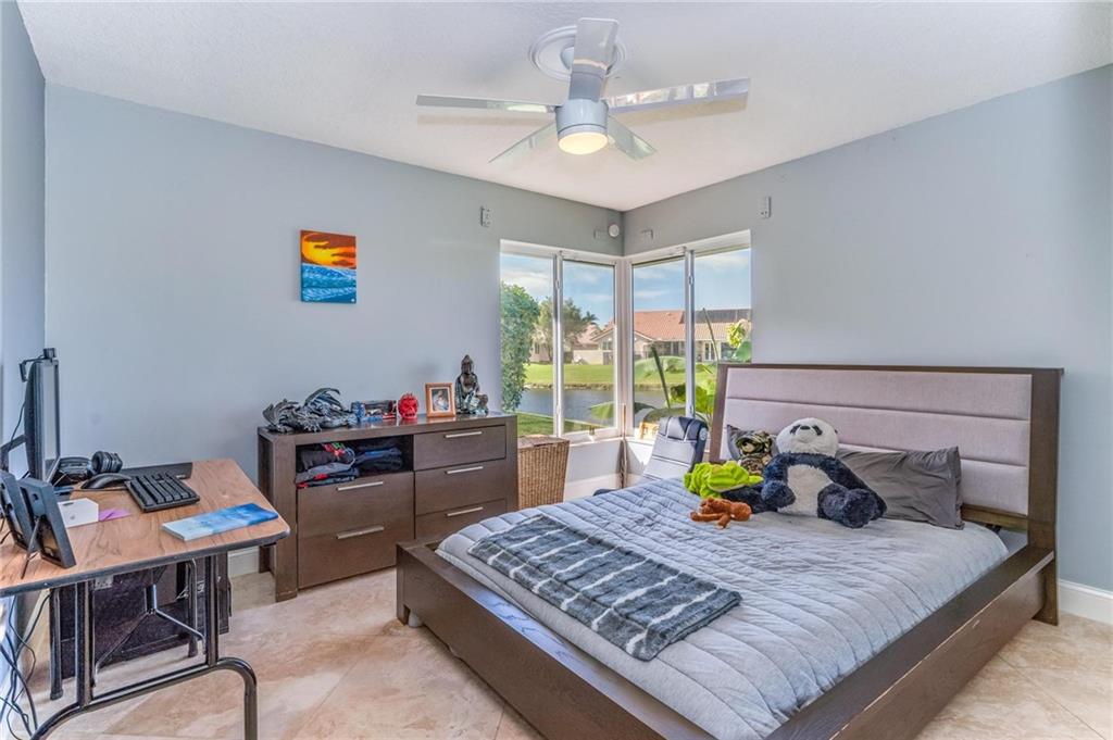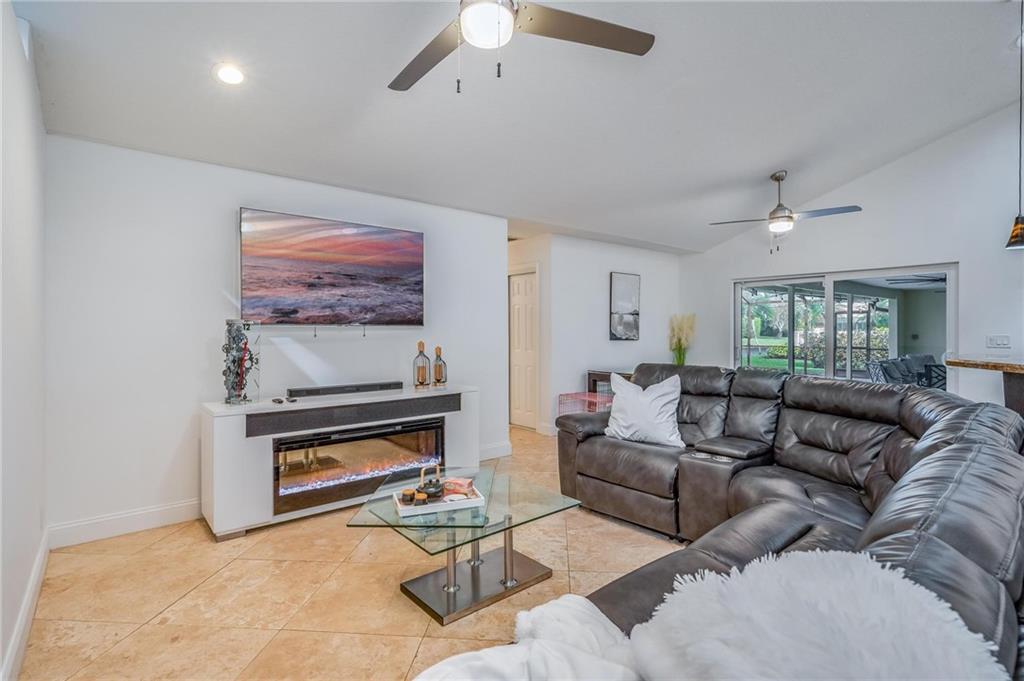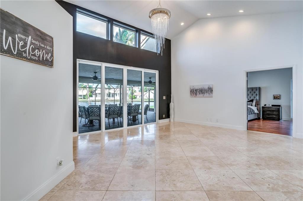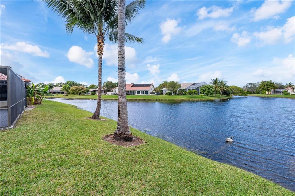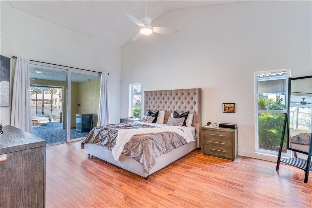 This home features 24x24 Travertine marble floors, all impact windows and doors, and solar panels (owned) power the entire home (not pool), and walking night-sky lights in the common areas and master bath. The giant kitchen comes equipped with a Subzero refrigerator, granite countertops, custom cabinets, double oven, water filtration system & touches faucet. This gorgeous home also boasts a separate laundry room with custom storage and 2 car garage. Relax under the covered screened in patio, while overlooking the spectacular view of the spa and pool with dark-green DiamondBrite extending out over the Lake! (Patio has 220, water, and ventilation run READY FOR SUMMER KITCHEN TO BE INSTALLED!) Located on quiet, family-oriented street. Tile roof 2006,flat roof 2020,HVAC 2016,water heater 2018