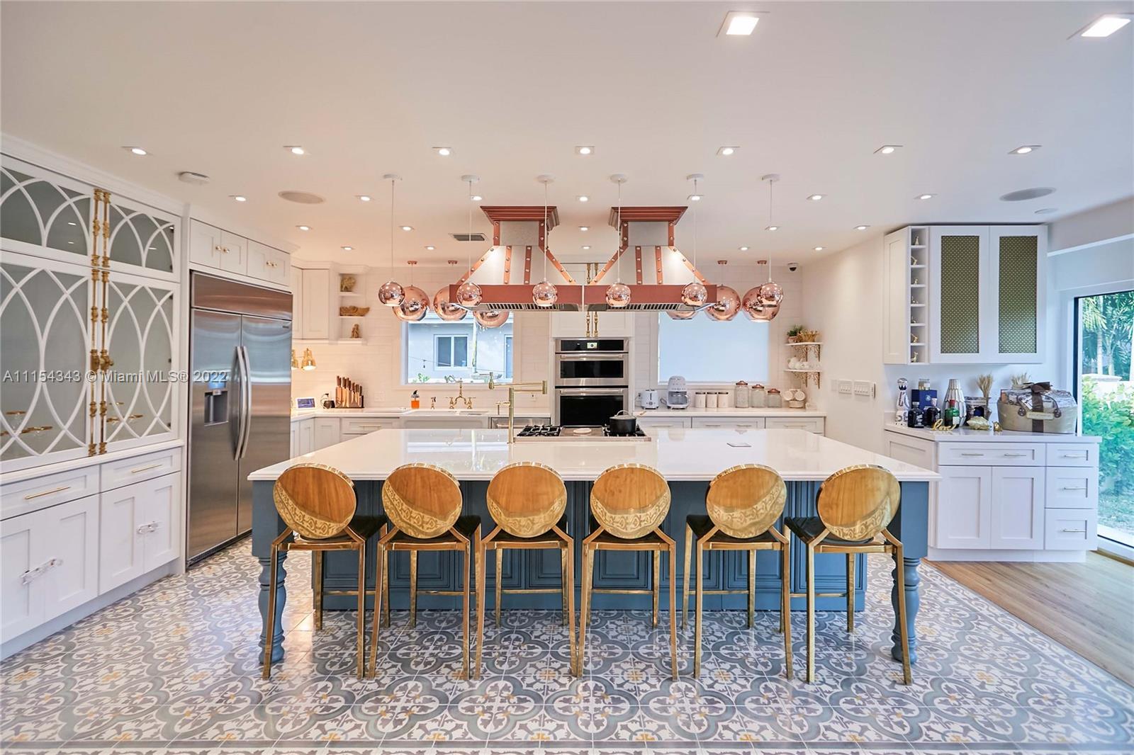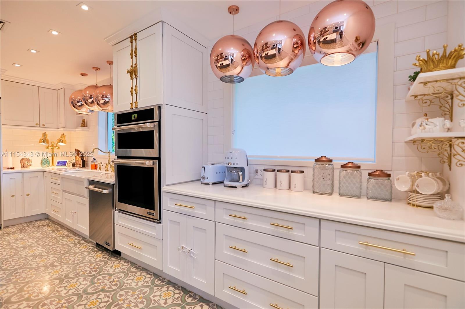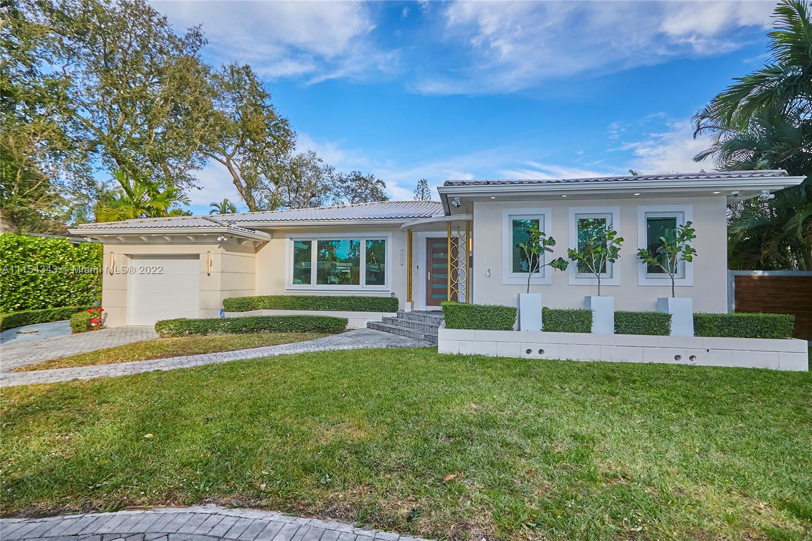The Deco Baroque House, a unique renovated mid-century modern designer home with deco baroque accents, spacious master suite with large walking closet; spa shower and imperial-shaped tub with handmade mosaic floors. Two guest bedrooms, 3 1/2 rococo-style baths, elegant open living room, formal dining, spectacular gourmet kitchen with high-end appliances and media room. Luxury hardwood floors throughout; wired audio/theater system; wall fences, customized gates & electric car charger. You’ll be proud to call this Miami Shores charmer your home... and be around great schools, close to restaurants, shops and golf course. This property has an unspoiled authenticity & royal architectural value perfect for discerning art & design aficionados.