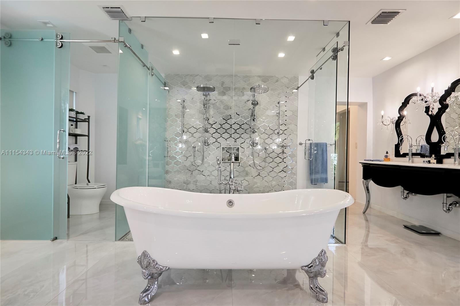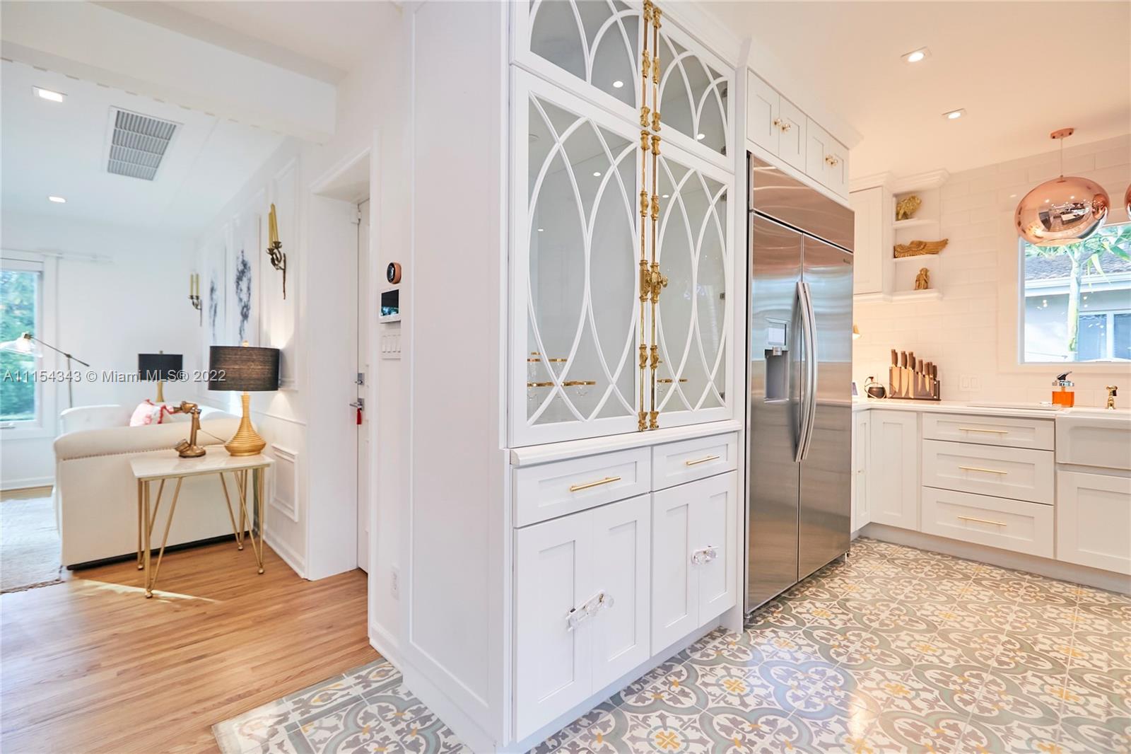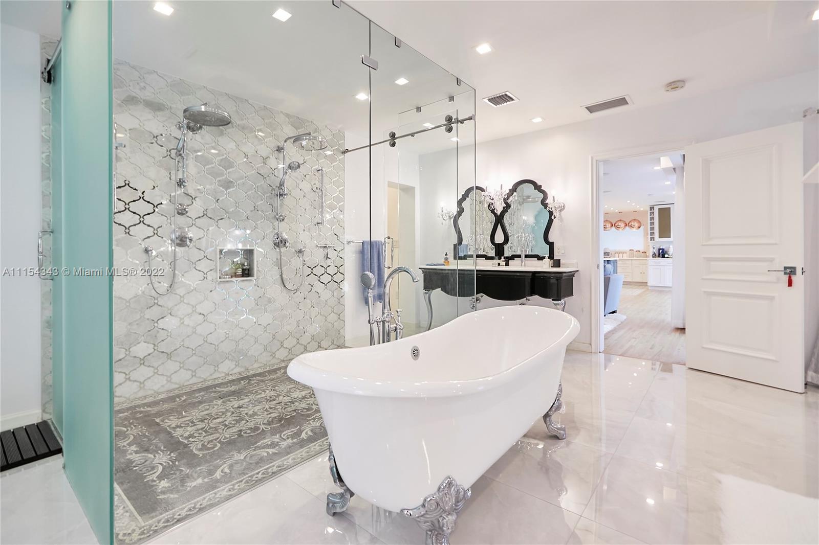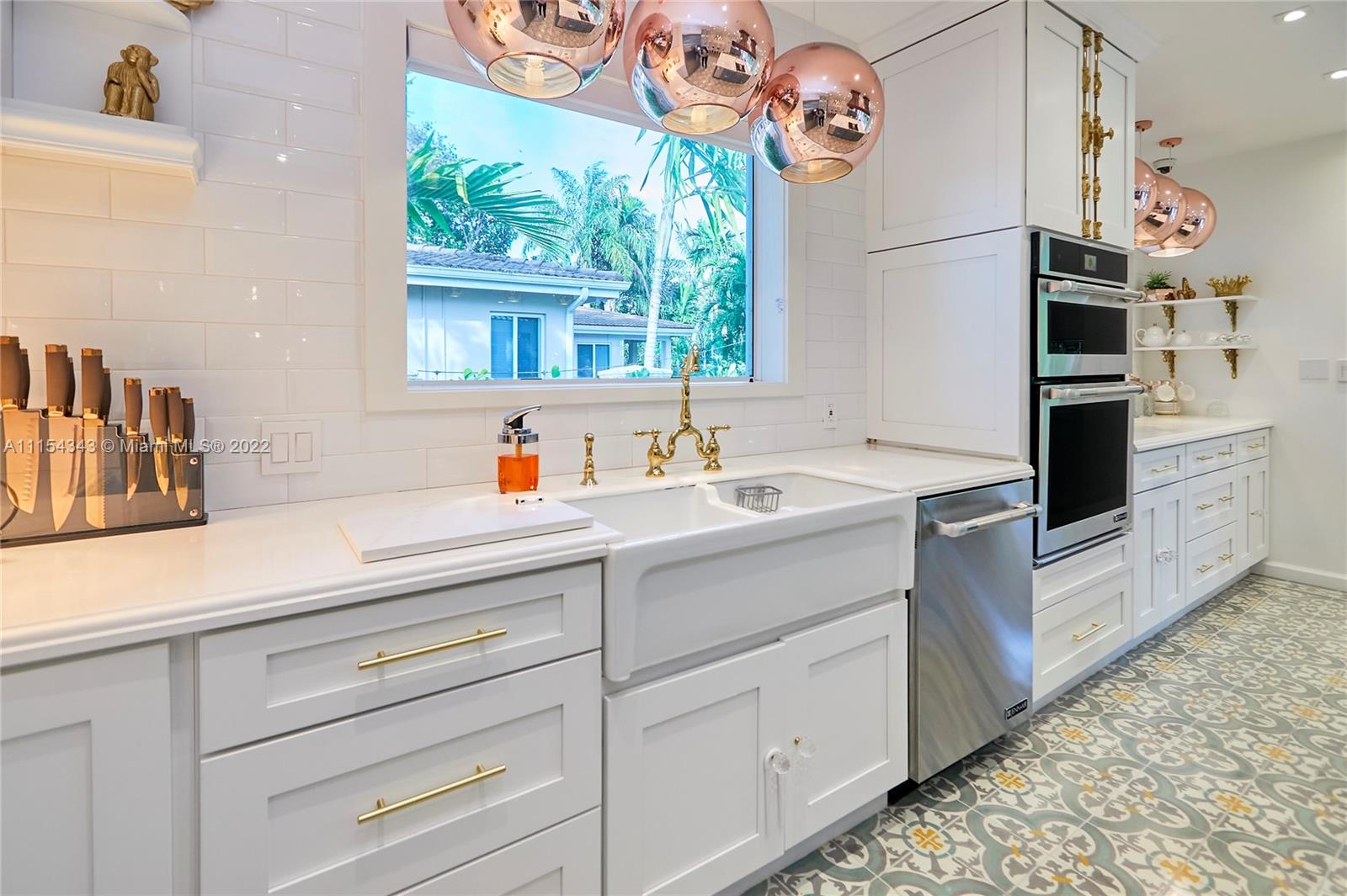 The Deco Baroque House, a unique renovated mid-century modern designer home with deco baroque accents, spacious master suite with large walking closet; spa shower and imperial-shaped tub with handmade mosaic floors. Two guest bedrooms, 3 1/2 rococo-style baths, elegant open living room, formal dining, spectacular gourmet kitchen with high-end appliances and media room. Luxury hardwood floors throughout; wired audio/theater system; wall fences, customized gates & electric car charger. You’ll be proud to call this Miami Shores charmer your home... and be around great schools, close to restaurants, shops and golf course. This property has an unspoiled authenticity & royal architectural value perfect for discerning art & design aficionados.