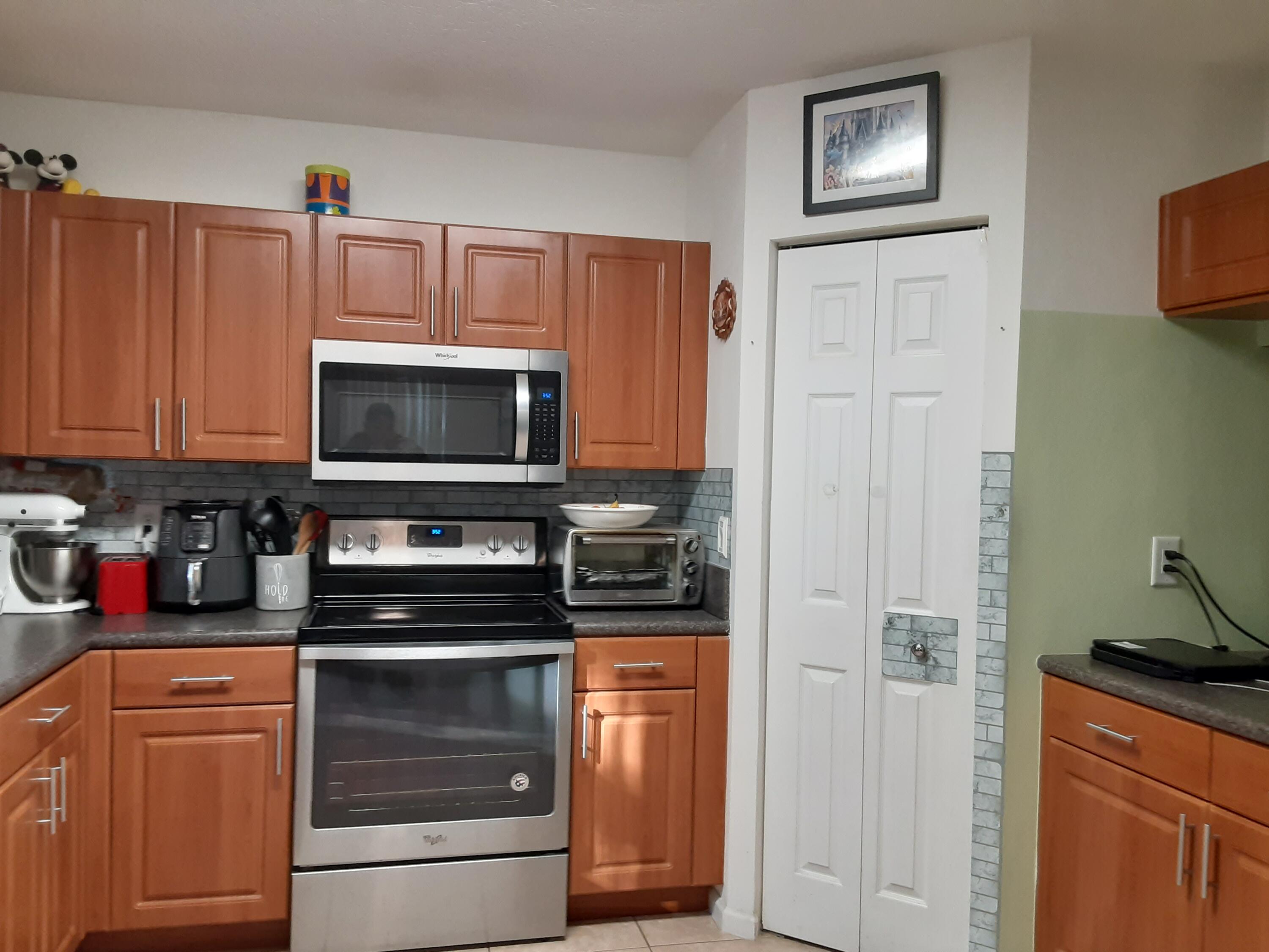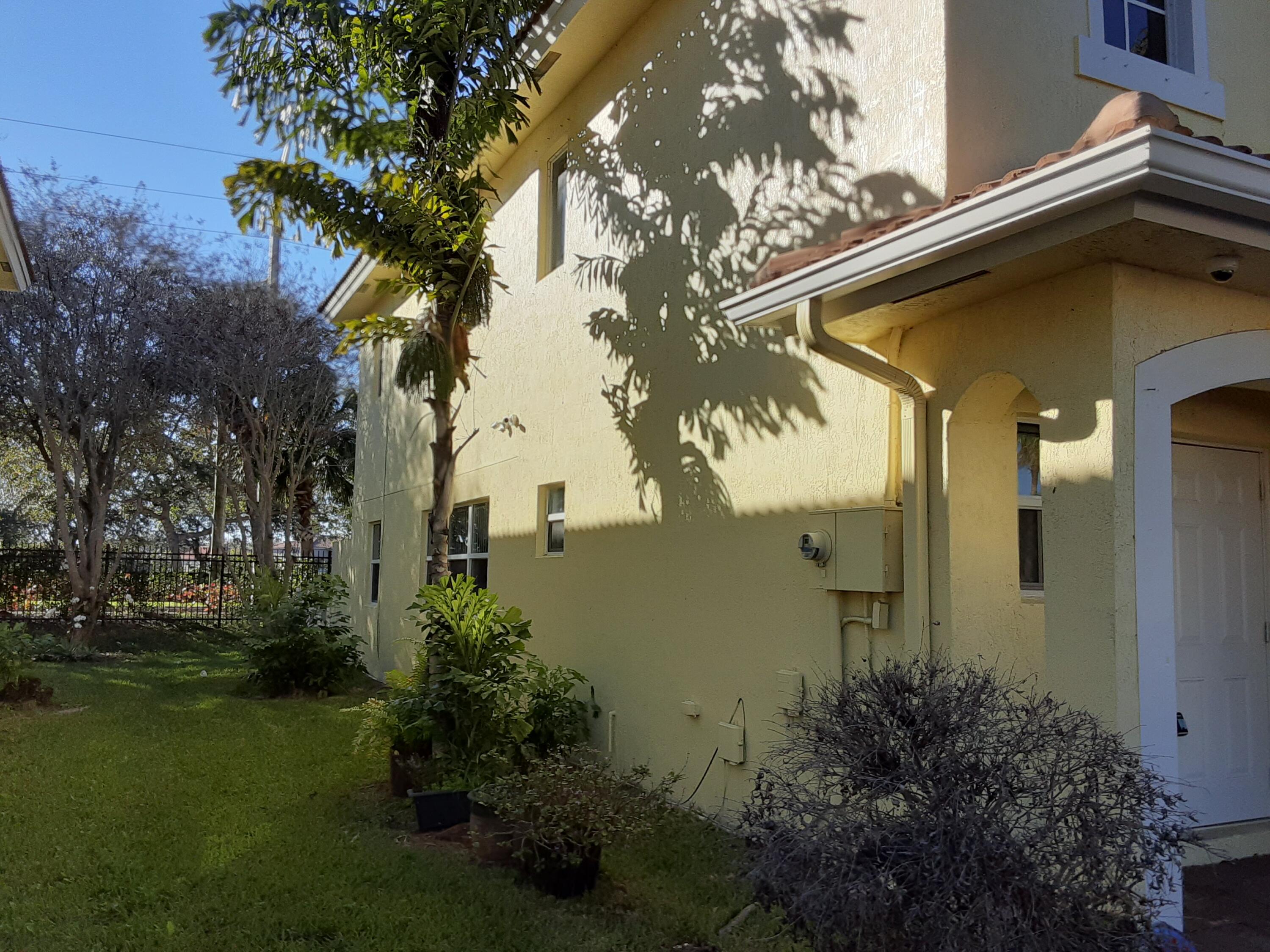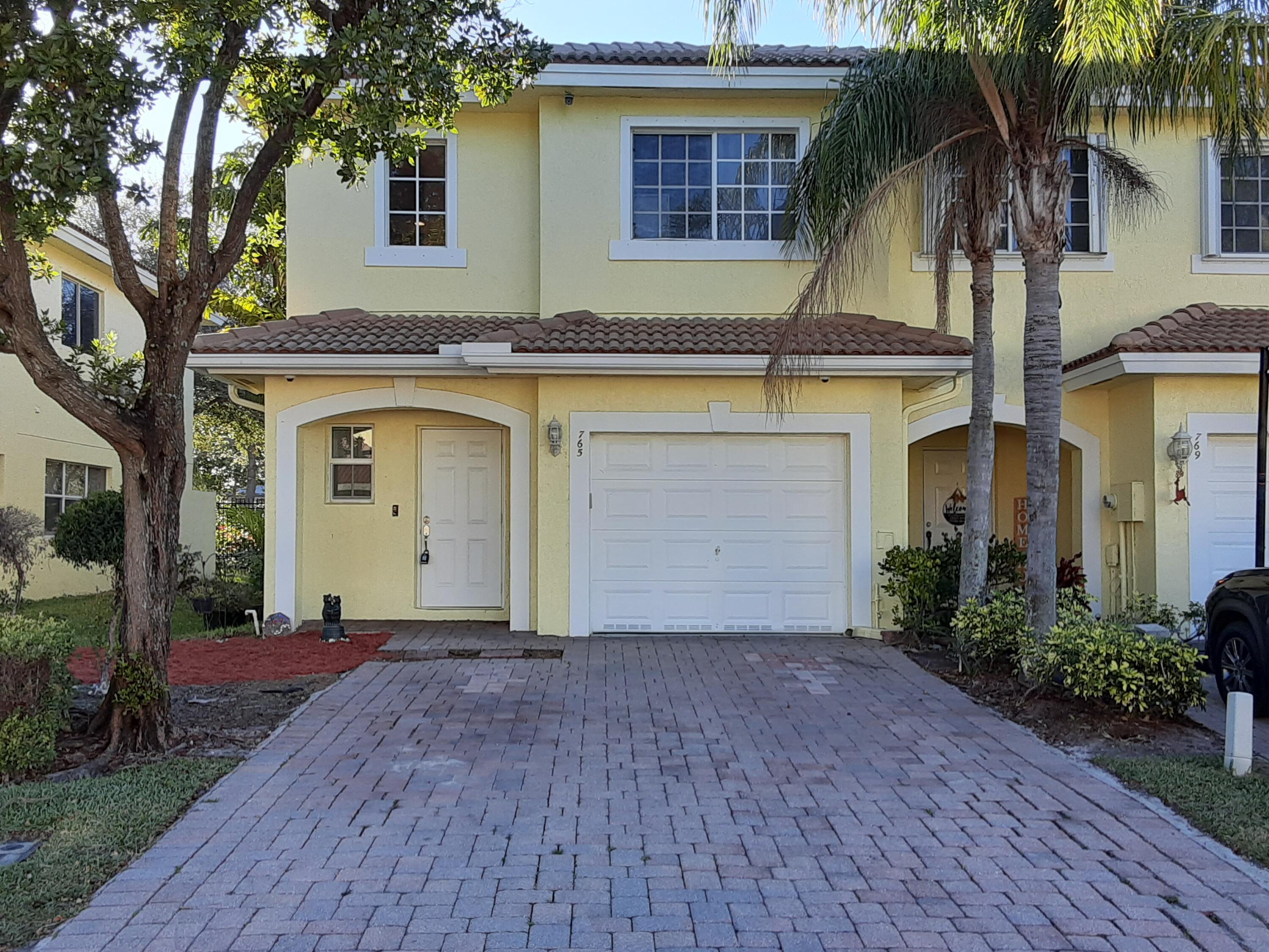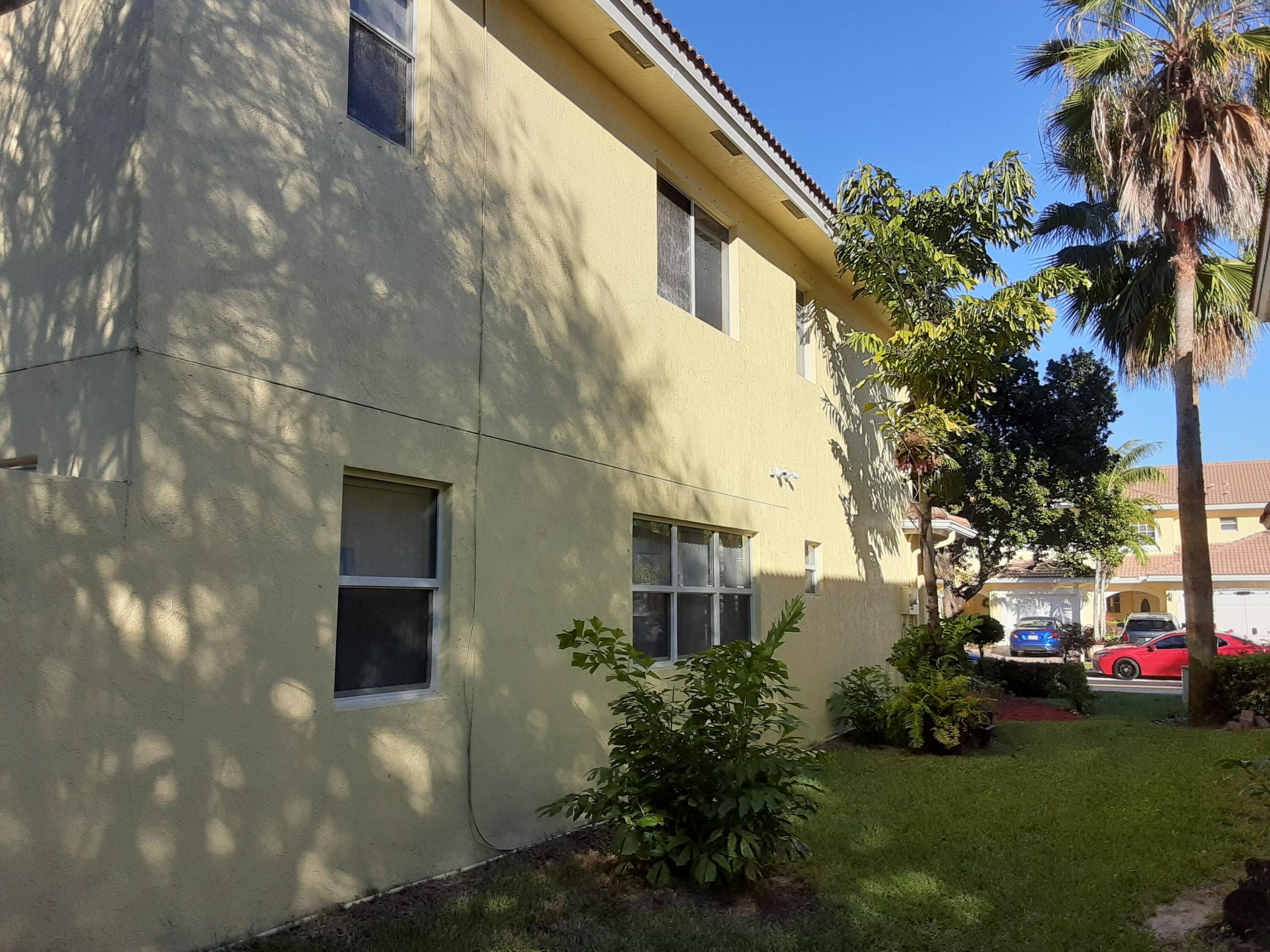 Corner unit with extra windows for nature lighting. First floor windows including French doors all are hurricane impact windows. 3 bedrooms 2.5 baths townhome with 1 car garage plus driveway parking. The home offers a large living room with Bose Speakers and spacious kitchen. The townhome is also protected with a camera system throughout the home. Newer stainless steel appliances in kitchen and washer/dryer. The patio has been fenced in for privacy, makes for a great family gathering area. Friendly community with community swimming pool, tot lot and tennis court.