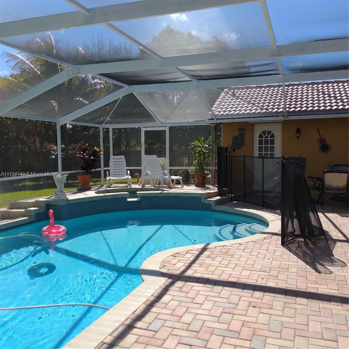 BEAUTIFUL HOUSE STYLE RANCH ON A GUARD GATED COMMUNITY WITH A BRAND-NEW ROOF THIS HOME HAS AN IDEAL FLOOR PLAN 3 BEDROOM 2 BATH, DINNING, LEAVING EAT IN THE KITCHEN. SCREENING SALT POOL, HURRICANES SHUTTERS. BIG YARD FRONT AND BACK. MANY TREES: COCONUT, MANGO, AVOCADO, GUAVA.PLANTAIN. LOW HOA AND CLOSE TO HIGHWAYS, SCHOOLS, SHOPPING CENTER AND MORE SELLERS WILL MAKE A DECISION WEDNESDAY FEBRUARY 9, 2022