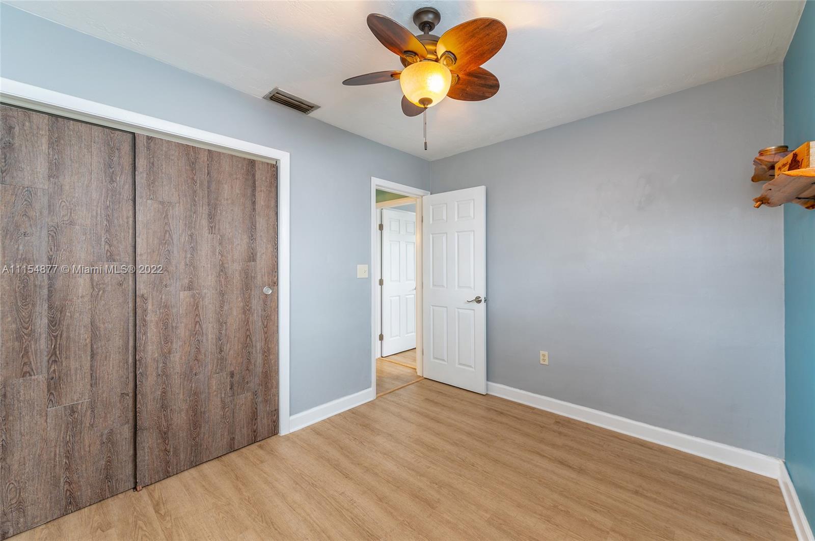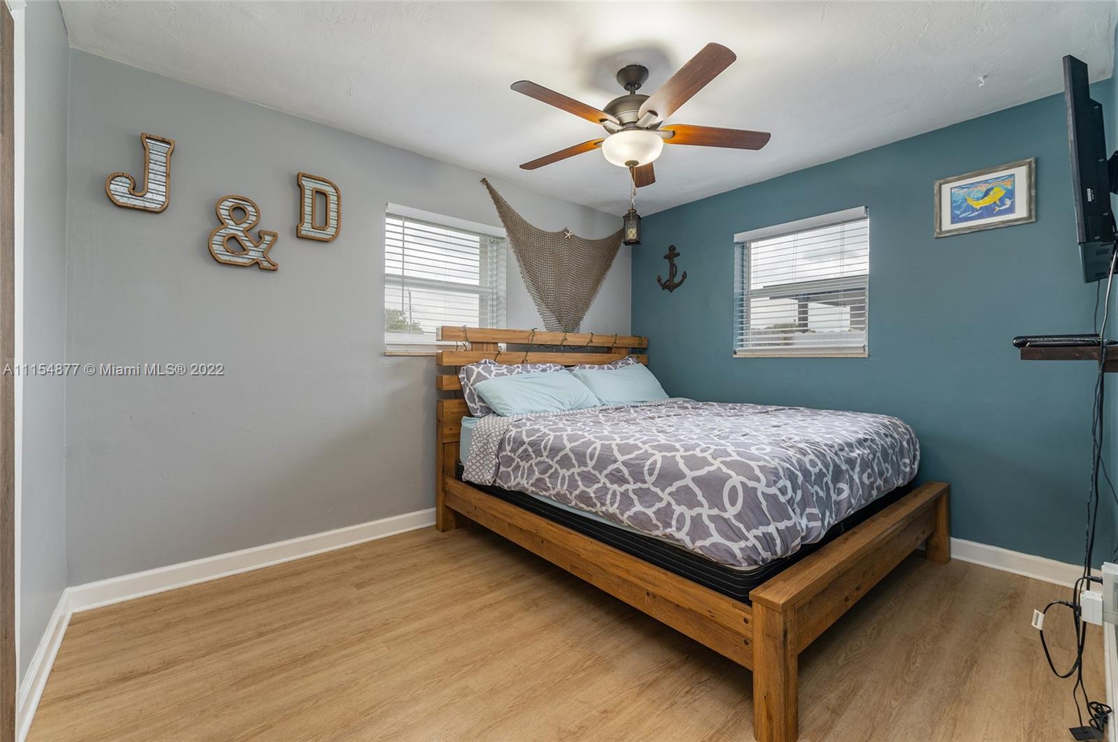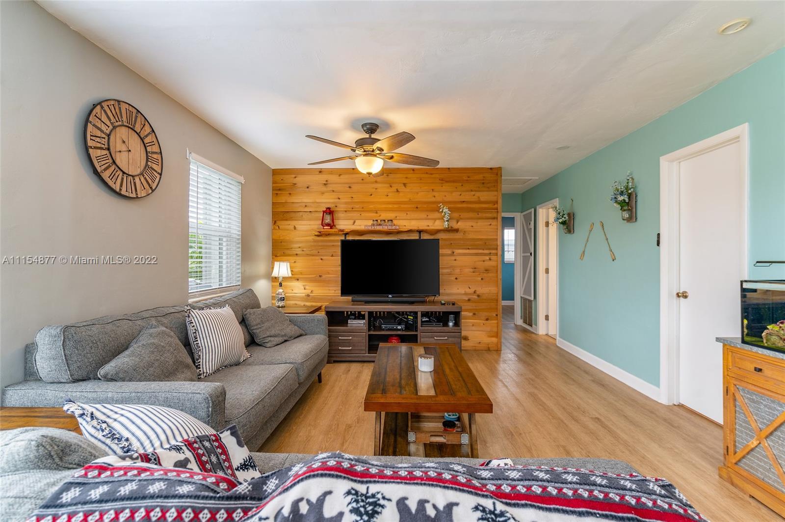 Beautiful 3/1 converted to a 2/1 to create a larger living room space/family area. New closet doors in bedrooms. Roof is 1 year old, accordion shutters throughout home and AC is 2 years old. Kitchen includes granite countertops with mosaic tile backsplash and stainless-steel appliances. Bathroom just remodeled this year, with brand new tile shower. Home was freshly painted 3 years ago, laminate flooring throughout. Large fenced in backyard with enough room to park vehicle or boat on either side. Stone walkway leading to large deck perfect for outdoor seating and BBQ. Full size washer/dryer in laundry room. This home also features security camera surveillance system for the next buyer.