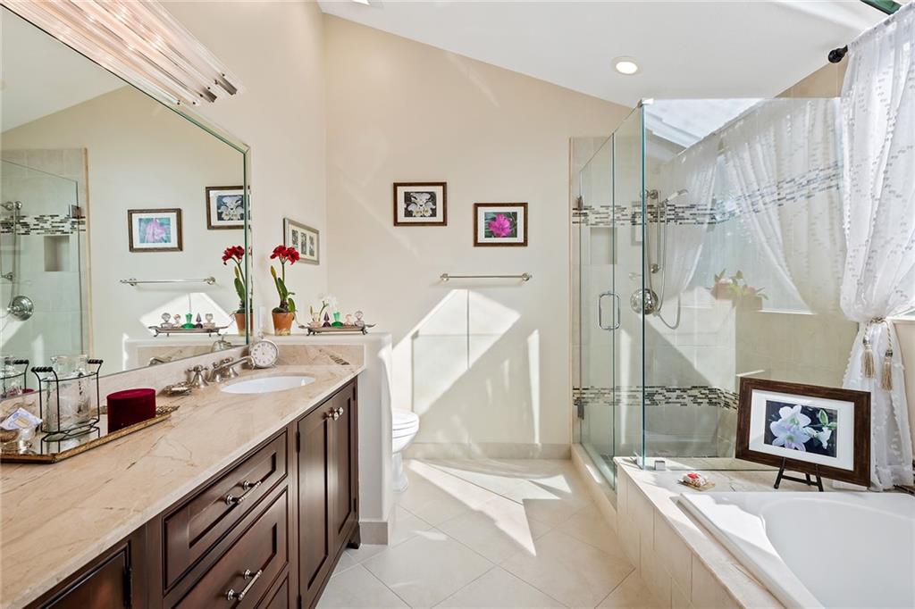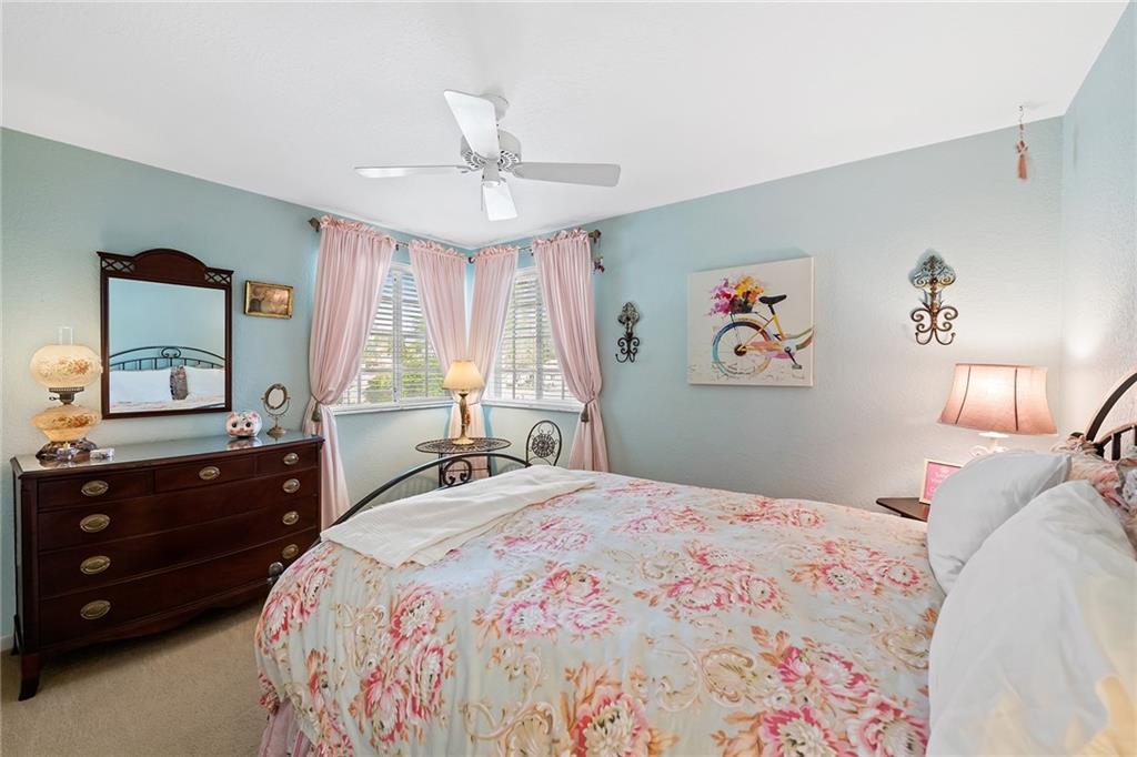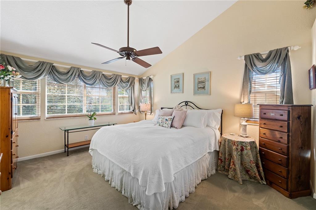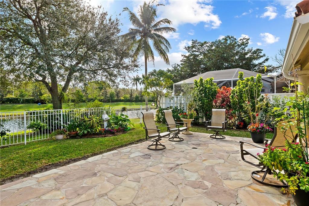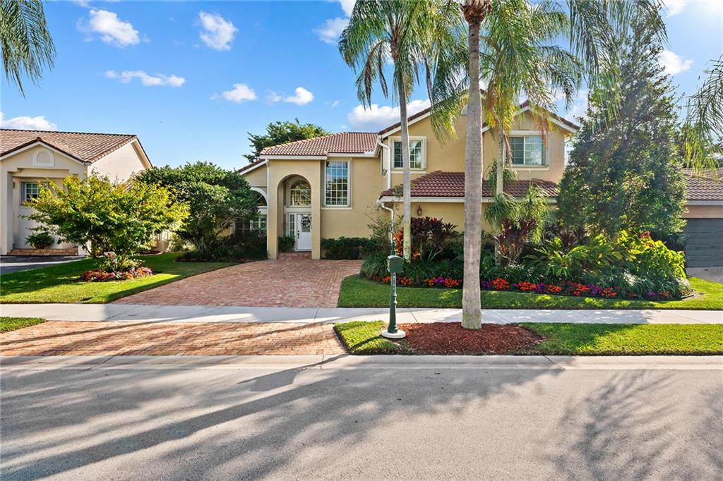 Beautifully well maintained Durango Model located in the highly desirable Laguna Springs I gated community. Premier lakefront location that offers 3 bedrooms, Loft and 2.5 baths! Side entry 2 car garage.Recently updated kitchen with shaker style cabinets, stainless steel appliances, Cambria countertops. Master Bath and Guest bath are also updated. Roof replaced in 2009. Full hurricane protection with a combination of impact windows and doors and accordion shutters. Updated plumbing. Plantation shutters adorn the living area windows. Enjoy the amazing patio area overlooking the lake and garden area! The backyard is completely fenced. This pristine lakefront home is gorgeous inside and outside with spaces designed for family living and entertaining.