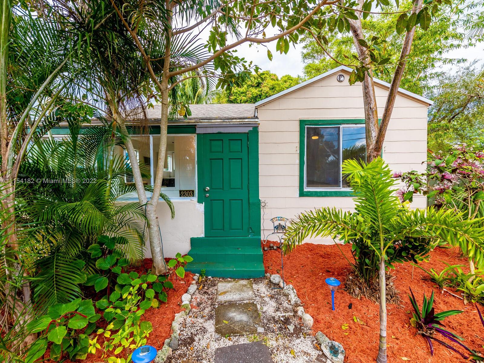 AMAZING CORNER LOT SINGLE FAMILY HOME LOCATED IN HOLLYWOOD, minutes away from Hollywood beach. This property features 2 bedrooms 1 bathroom, laundry & 2 bonus rooms that are BIG enough to set one up as a home office, or a dining room, the bonus room can be set up as a playroom or a Florida room. Wood kitchen cabinets and an island. Beautiful wood laminate flooring throughout the entire home! New windows were installed in the laundry room and back bonus room. The roof is only 3 years old. You'll love all the landscaping this house has to offer, the variety of palm trees around the yard with wood fences & the best part of the back patio is the MAGNIFICENT PRODUCING HUMONGOUS MANGO TREE. Click on the virtual tour to see the YouTube video walk-thru tour and property website for more info!