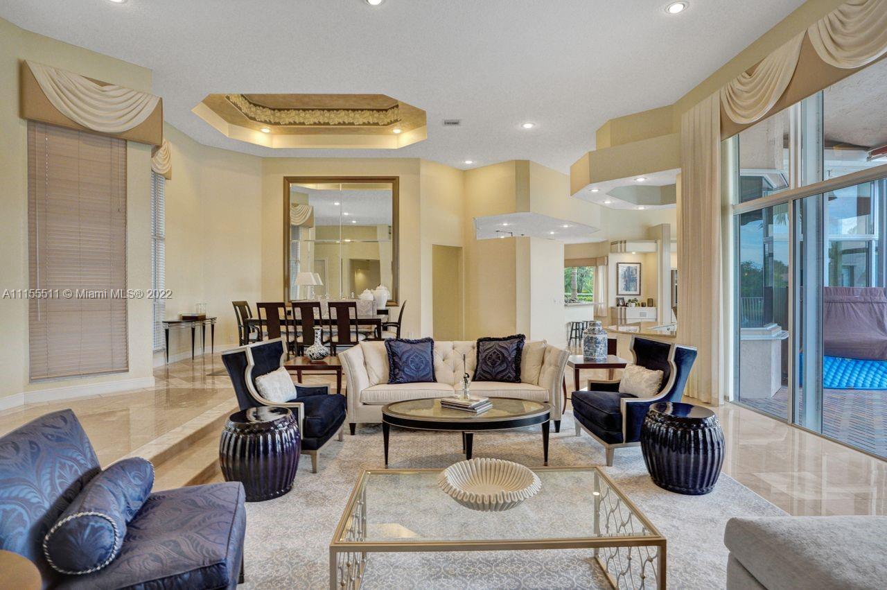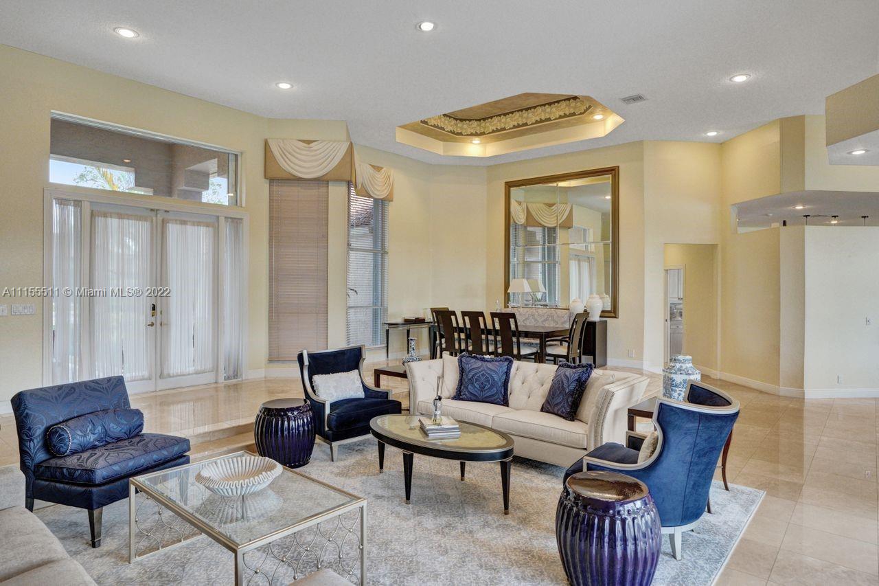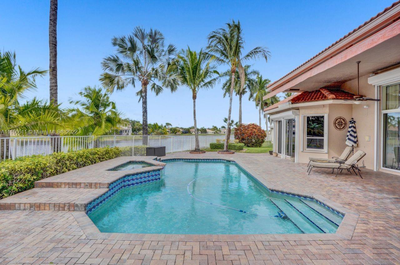 Absolutely gorgeous estate home on a huge 1/2 acre cul de-sac lot in Weston Hills Country club.Home shows great with 5 bedrooms and 5 baths with over 4000 sf living area. Open floor plan with high ceilings and marble flooring in main areas and real hardwood flooring in bedroooms.Nice open kitchen with stainless steel appliances, granite, breakfast area and huge family room. Step down bar area and nice formal area with views of pool and lake. Large master suite w/real wood flooring, tray ceiling and updated master bathroom.Stunning pool and patio area with barbeque and bar area, heated free form pool and jacuzzi with tranquil and long lake views. Oversized pie shaped lot with plenty of room to play and entertain. Home has accordion hurricane shutters, newer AC units and roof from 2009