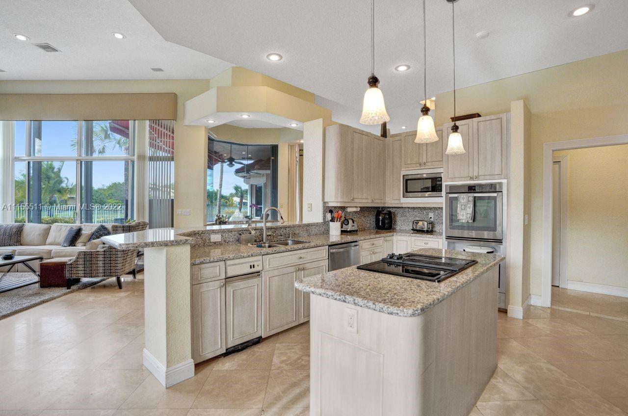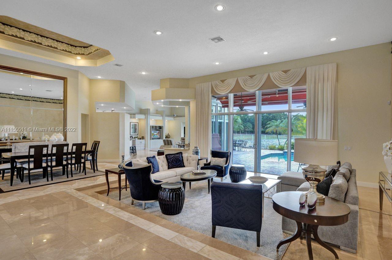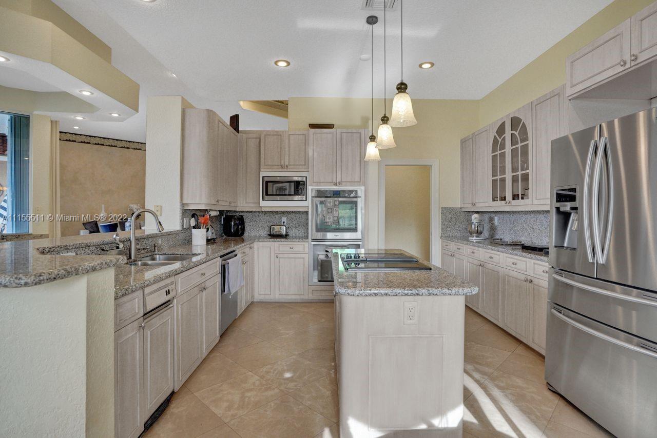 Absolutely gorgeous estate home on a huge 1/2 acre cul de-sac lot in Weston Hills Country club.Home shows great with 5 bedrooms and 5 baths with over 4000 sf living area. Open floor plan with high ceilings and marble flooring in main areas and real hardwood flooring in bedroooms.Nice open kitchen with stainless steel appliances, granite, breakfast area and huge family room. Step down bar area and nice formal area with views of pool and lake. Large master suite w/real wood flooring, tray ceiling and updated master bathroom.Stunning pool and patio area with barbeque and bar area, heated free form pool and jacuzzi with tranquil and long lake views. Oversized pie shaped lot with plenty of room to play and entertain. Home has accordion hurricane shutters, newer AC units and roof from 2009