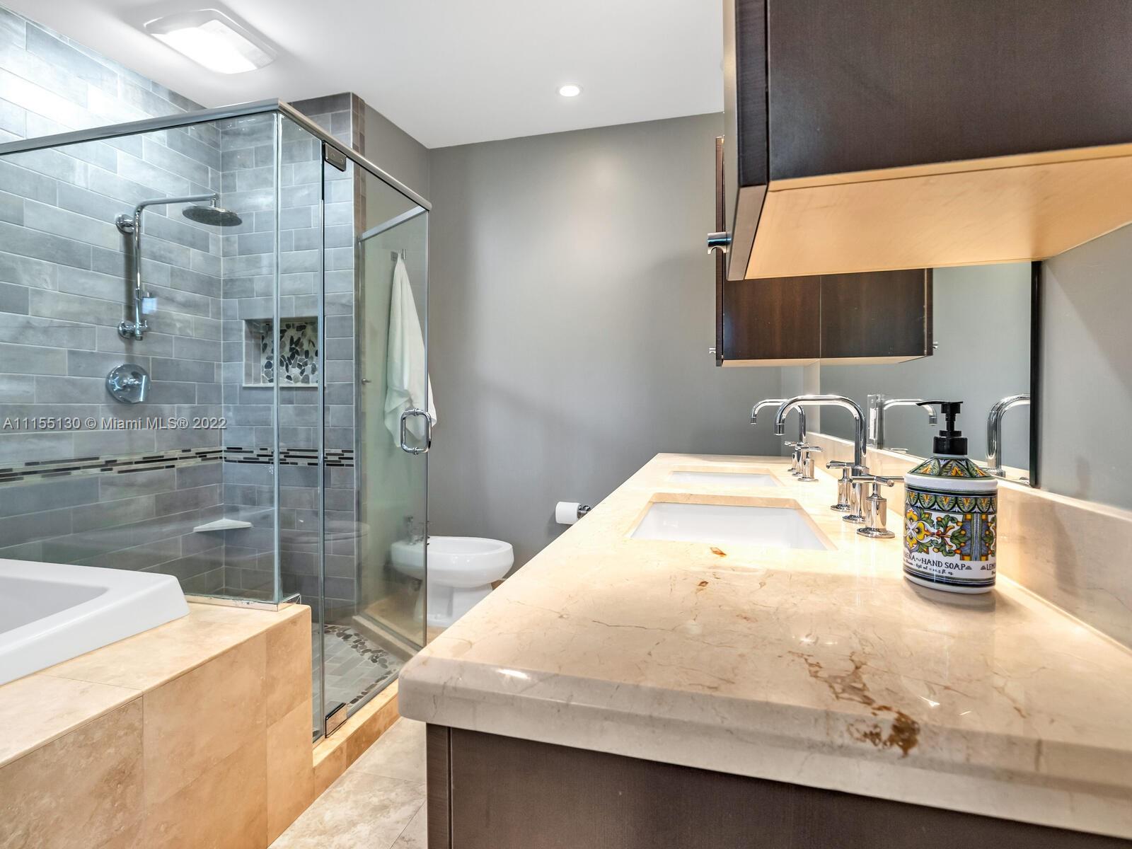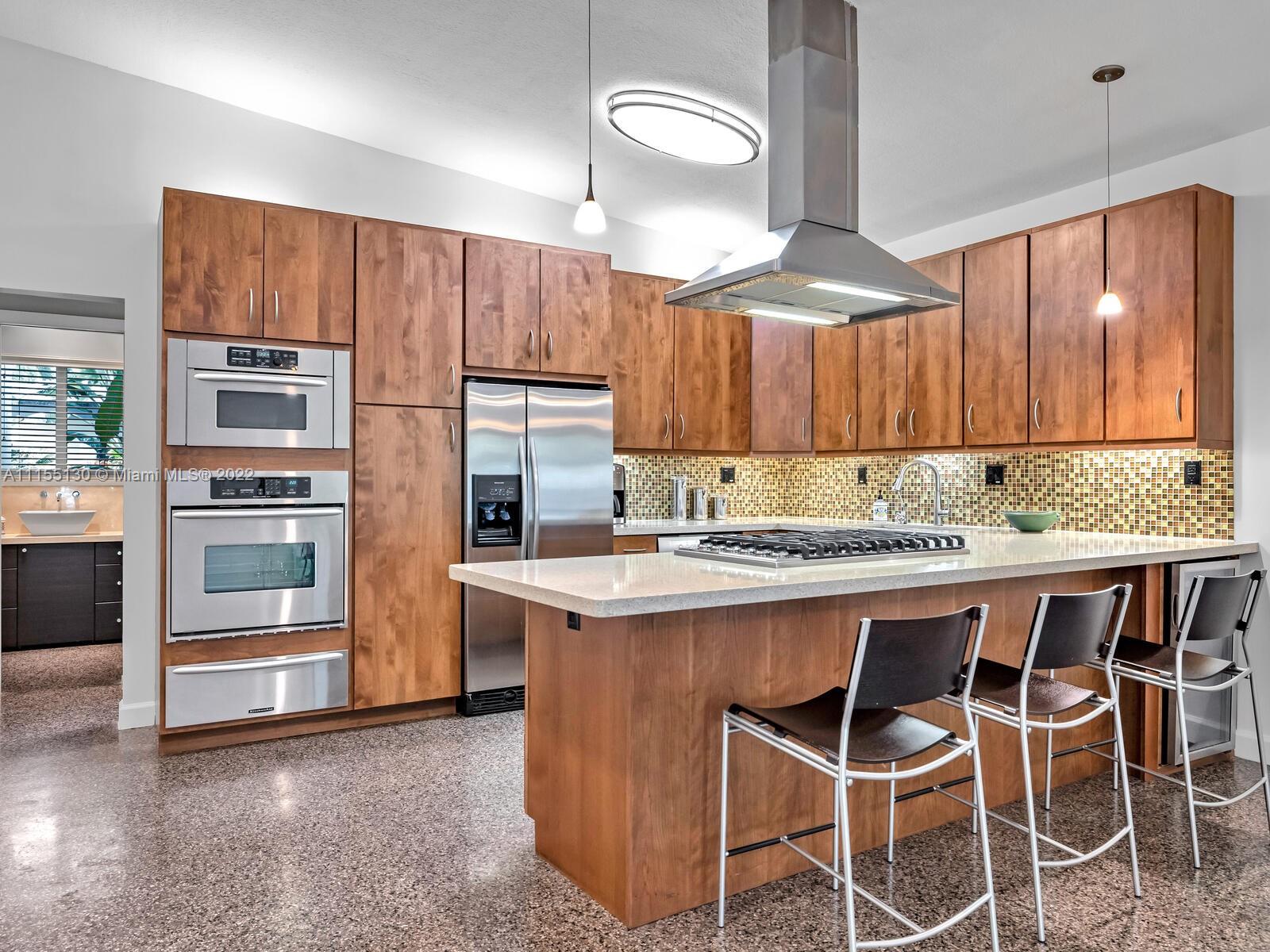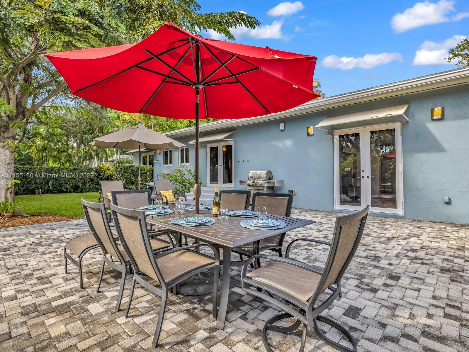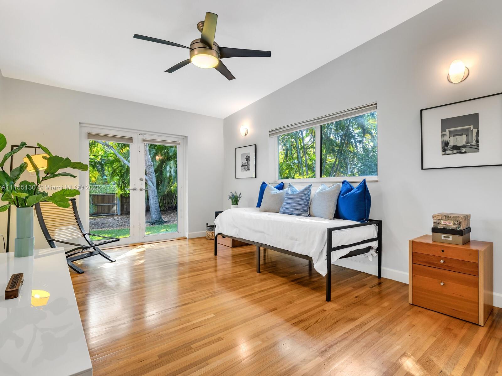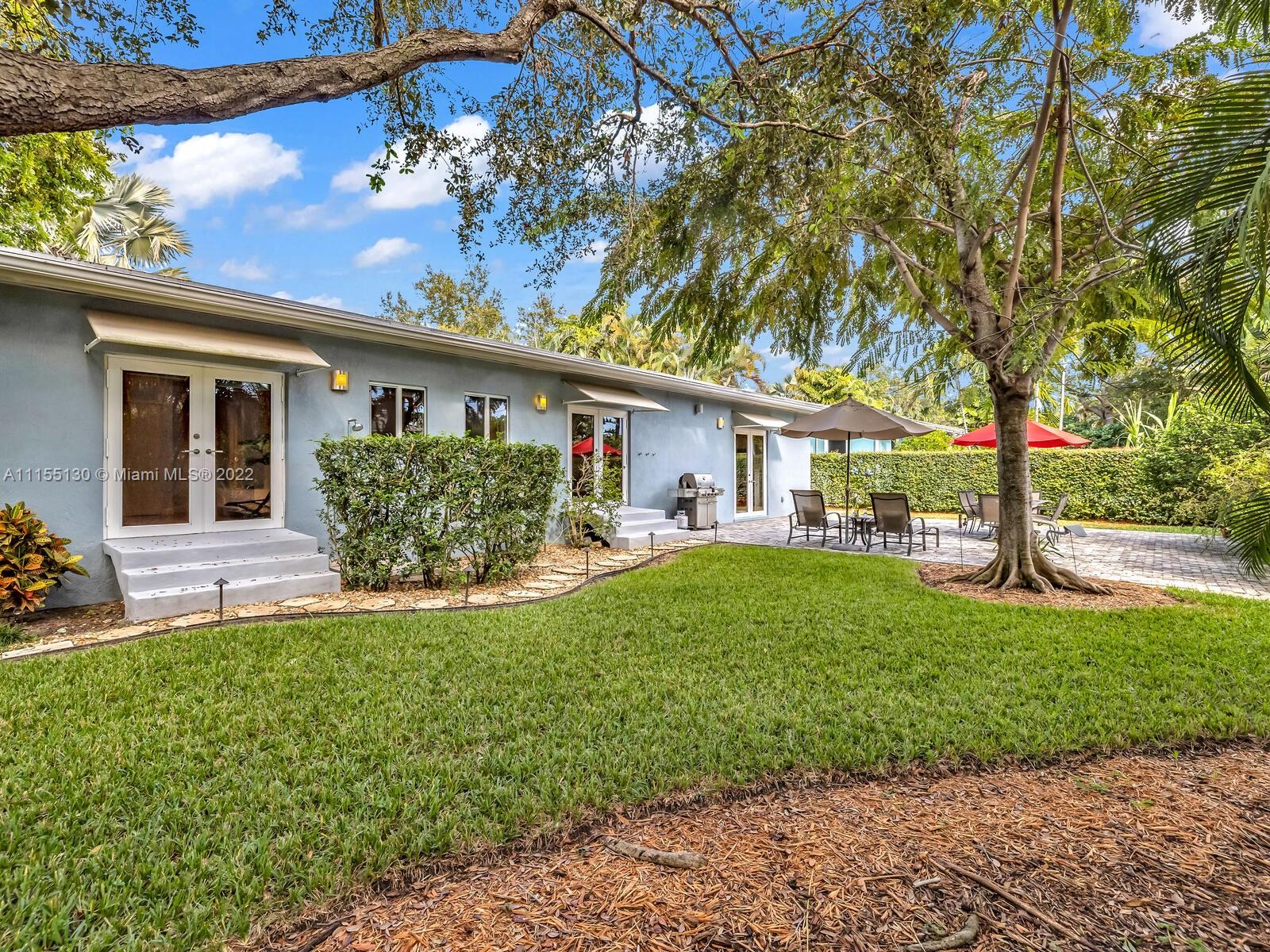 Welcome to Shores Casa Bahia! Breathe easy in your own personal oasis on a quiet East Miami Shores cul-de-sac in this updated, open flow Mid-Century Modern home with massive lush, illuminated tropical rear gardens. Spacious living and grand entertaining indoors and out! Expansive, fluid living with vaulted ceilings, dining, spectacular updated eat-in chef’s kitchen and beautiful terrazzo floors. Huge media room for watching your favorite movies. Updated main bedroom en-suite retreat with double vanities, large shower, tub, huge walk-in closet and double French doors to the gardens. Bright guestroom and separate private entrance office-- perfect to work from home! Plus, impact windows-doors and 1-car garage. Tucked away, yet close to all the cool downtown Miami Shores shops and restaurants.