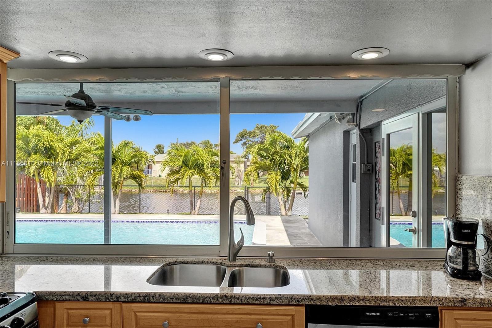 Spacious updated ranch pool home on wide canal lot in the heart of Sunrise. Boat dock could be added. This beautiful home features recently updated bathrooms, stunning tile flooring, gourmet kitchen with stainless steel appliances, a recently resurfaced circular driveway, covered front porch, two car garage, fenced in yard, & built in bar. All sliding glass doors were also replaced with French doors leading out to the pool deck. Pool was recently acid washed & resurfaced. Roof was replaced in the last 3 yrs. Back yard has a covered patio & pergola. Garage has epoxy painted floors. Conveniently located near shopping near the Sawgrass Mills & Broward Mall , tons of restaurants, the Home Depot, Publix, highways & other communality amenities. Enjoy living on a cul-de-sac with no thru traffic.