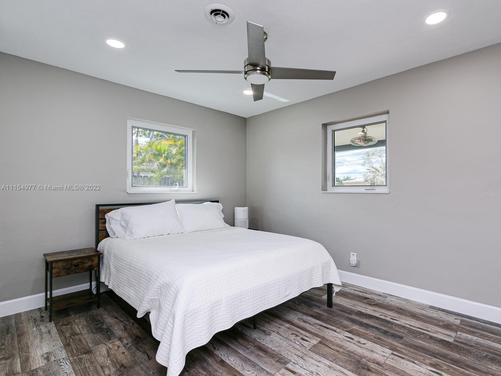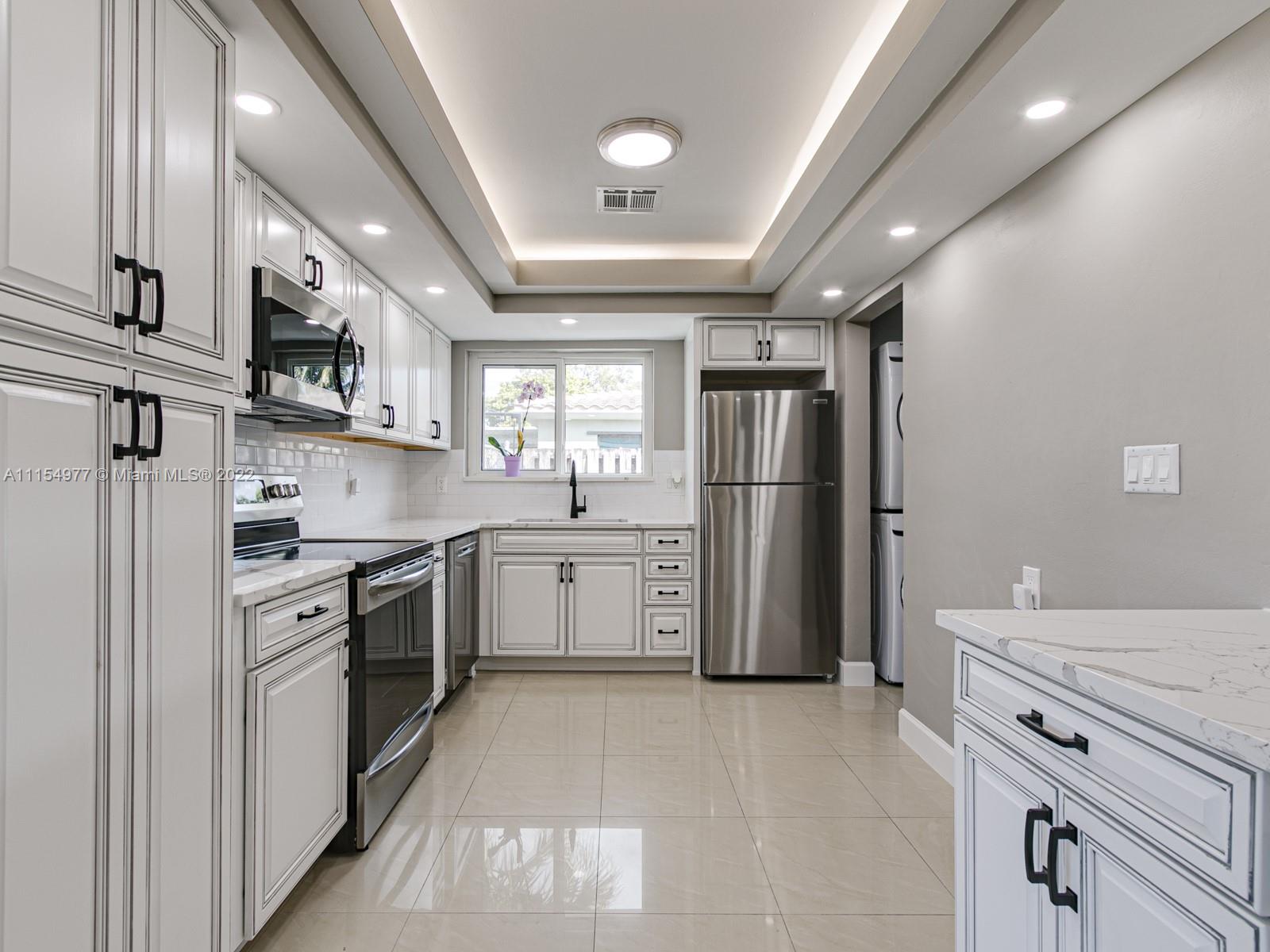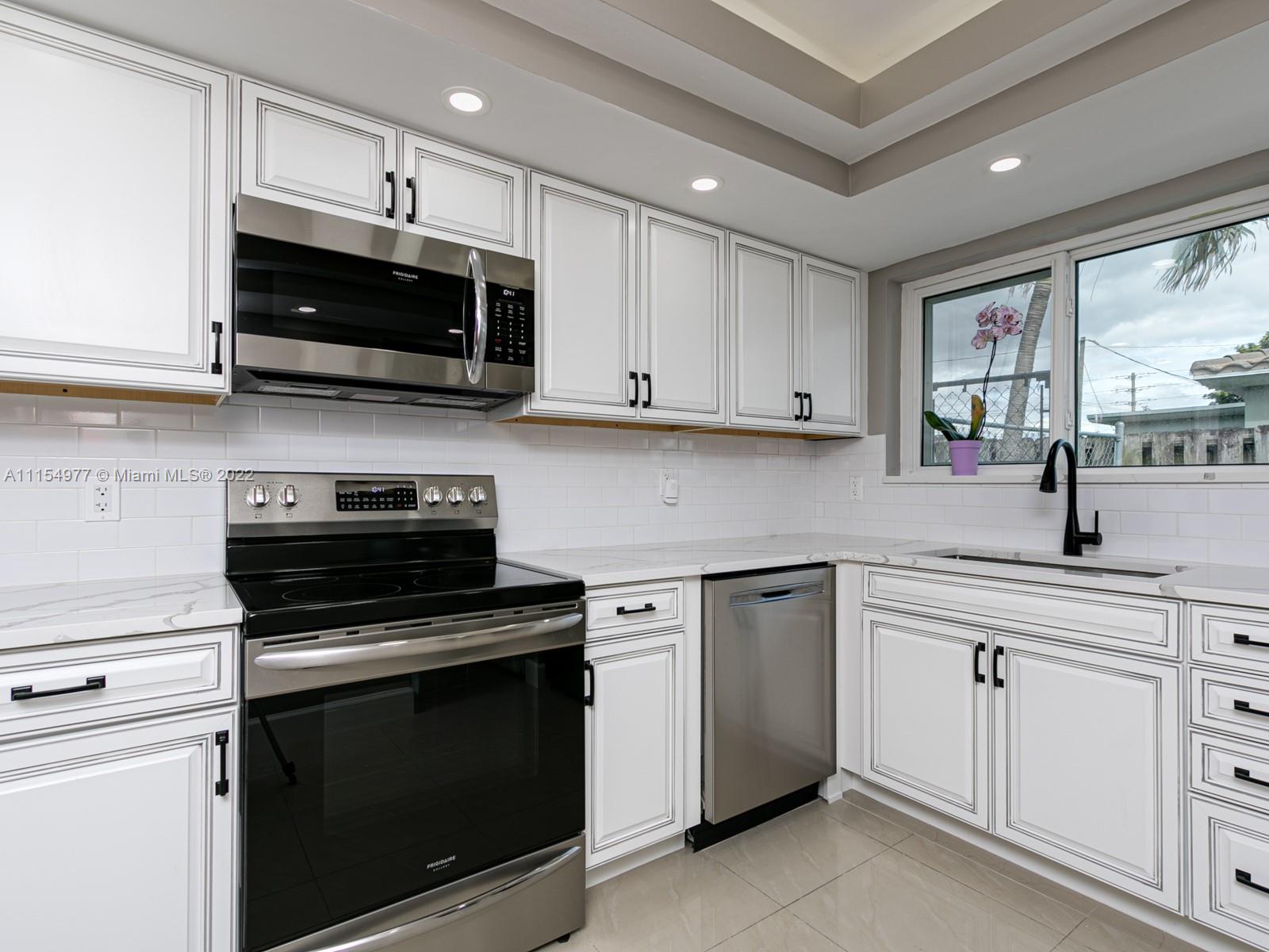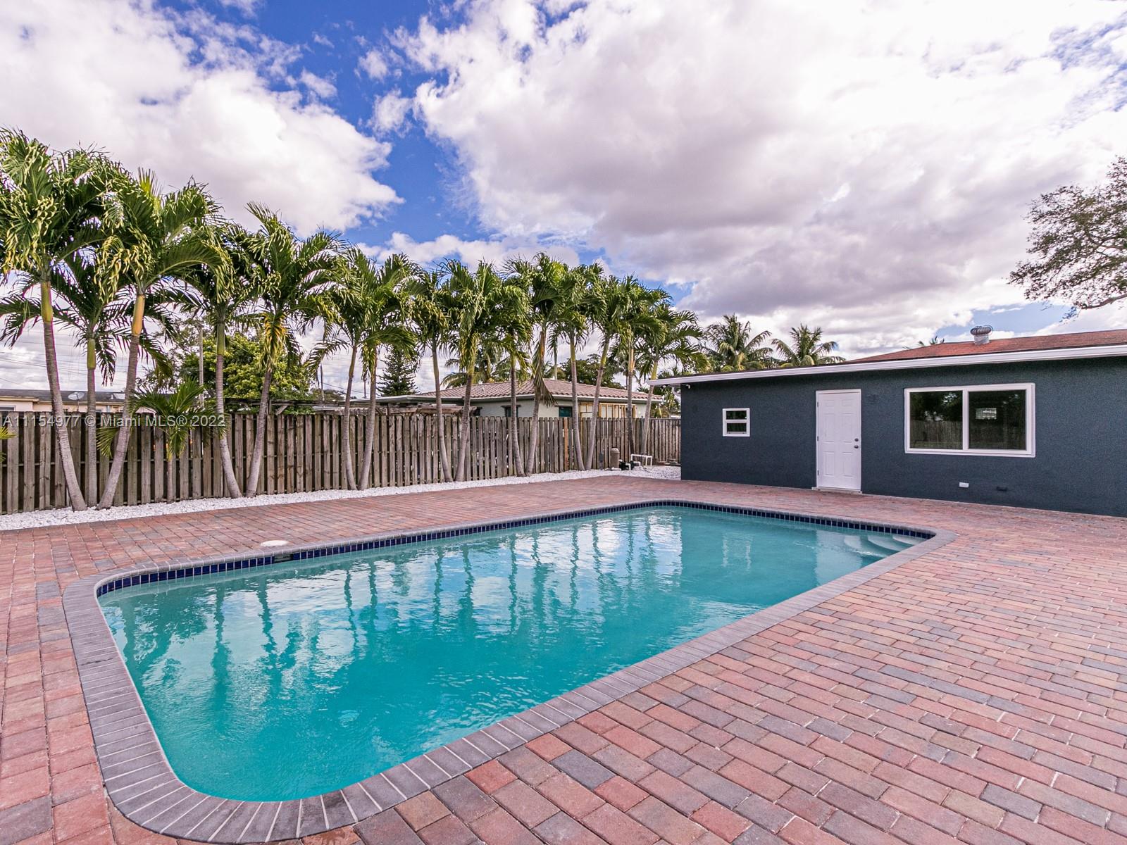 Wow! What a transformation on this Beautiful 4 Bed/2 Bath home w/ pool and large backyard. This home has a great open floor plan and meticulously updated with the most gorgeous finishes beginning with the top of the line kitchen cabinets and quartz counter tops with waterfall edge as well as new S/S appliances. New high end vinyl flooring, and bathroom updates as well. Hurricane windows and doors throughout property. New resurfaced pool and new deck as well! All new recessed lighting in home along with brand new electrical panel and rewiring. New tankless water heater, new washer/dryer. Security system with cameras surround the property, smart home. Home features a second entrance for MIL quarters or a future tenant. Move in Ready! The work has been done, just bring your furniture.
