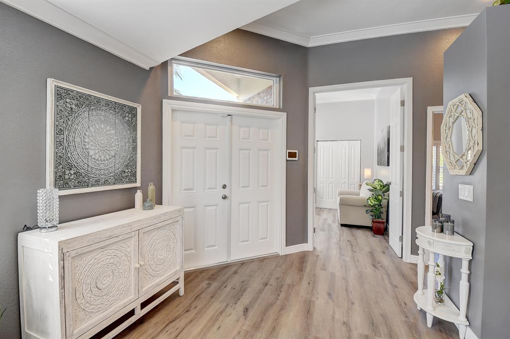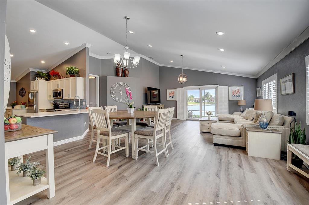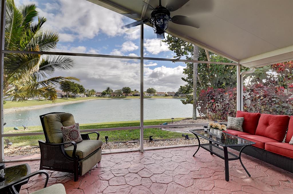 Come take a look at this BEAUTY!!!!! All ages community, Renovated 3 Bedroom 2 Bath 2 Car Garage home with a spectacular lake view as soon as you walk through the door! You can enjoy sitting in the jacuzzi in the covered screened patio watching TV or the breathtaking view. Vaulted ceilings, no popcorn, open kitchen to the living area.Plantation shutters & Hurricane impact windows throughout home. Crown molding. Hot Tub and outdoor TV conveys. AC 2016, WH 2021, A rated schools, Pet friendly community. Common amenities are the pool and tennis court.