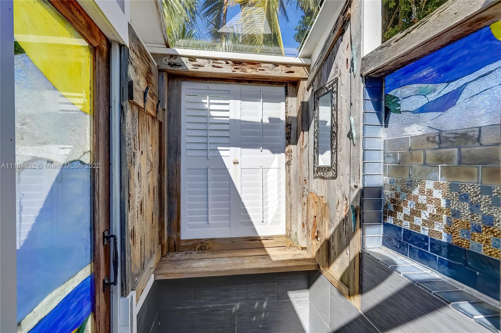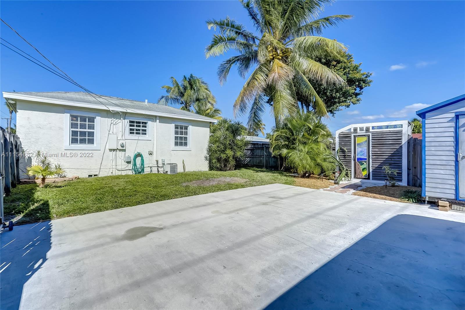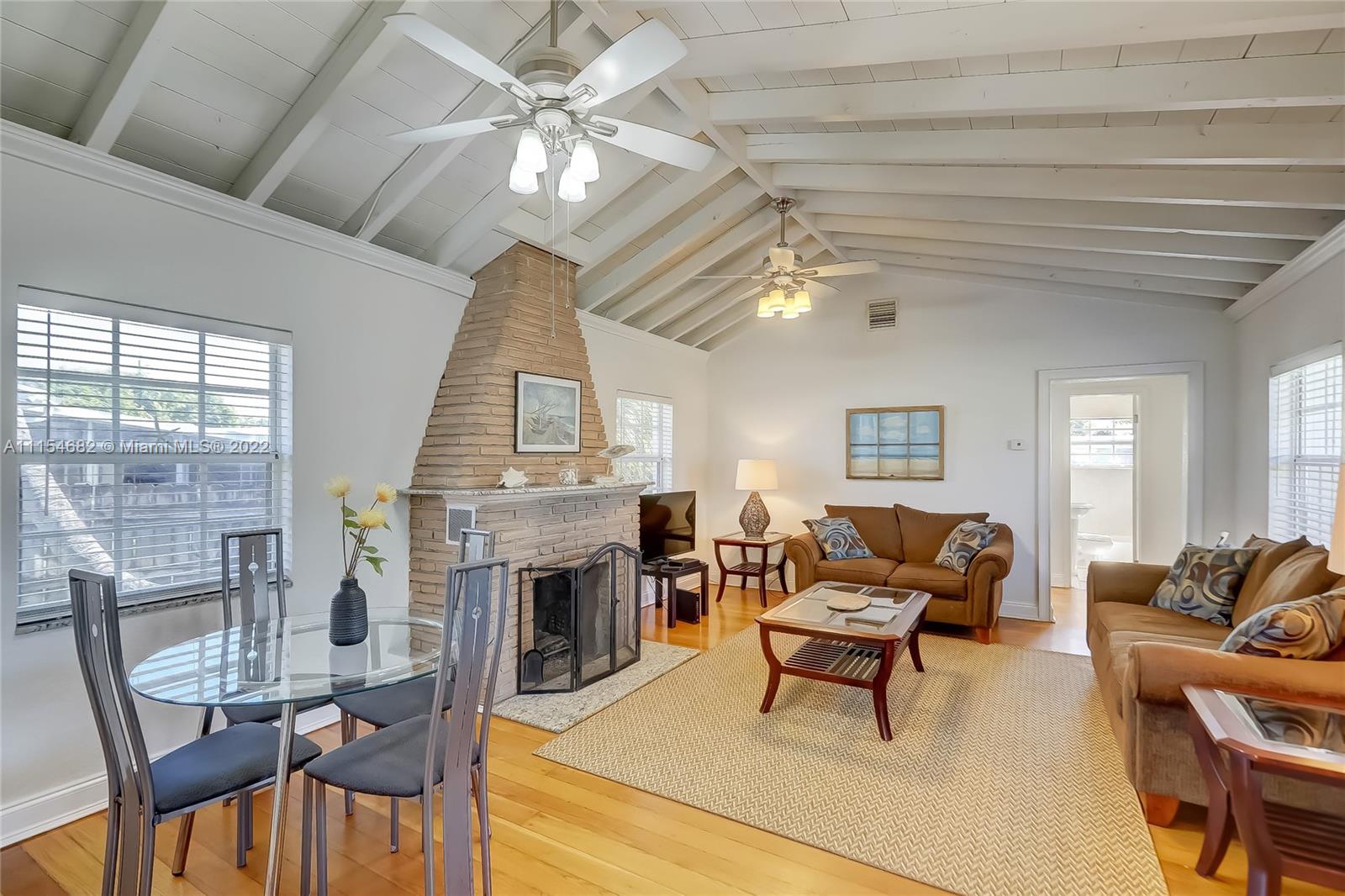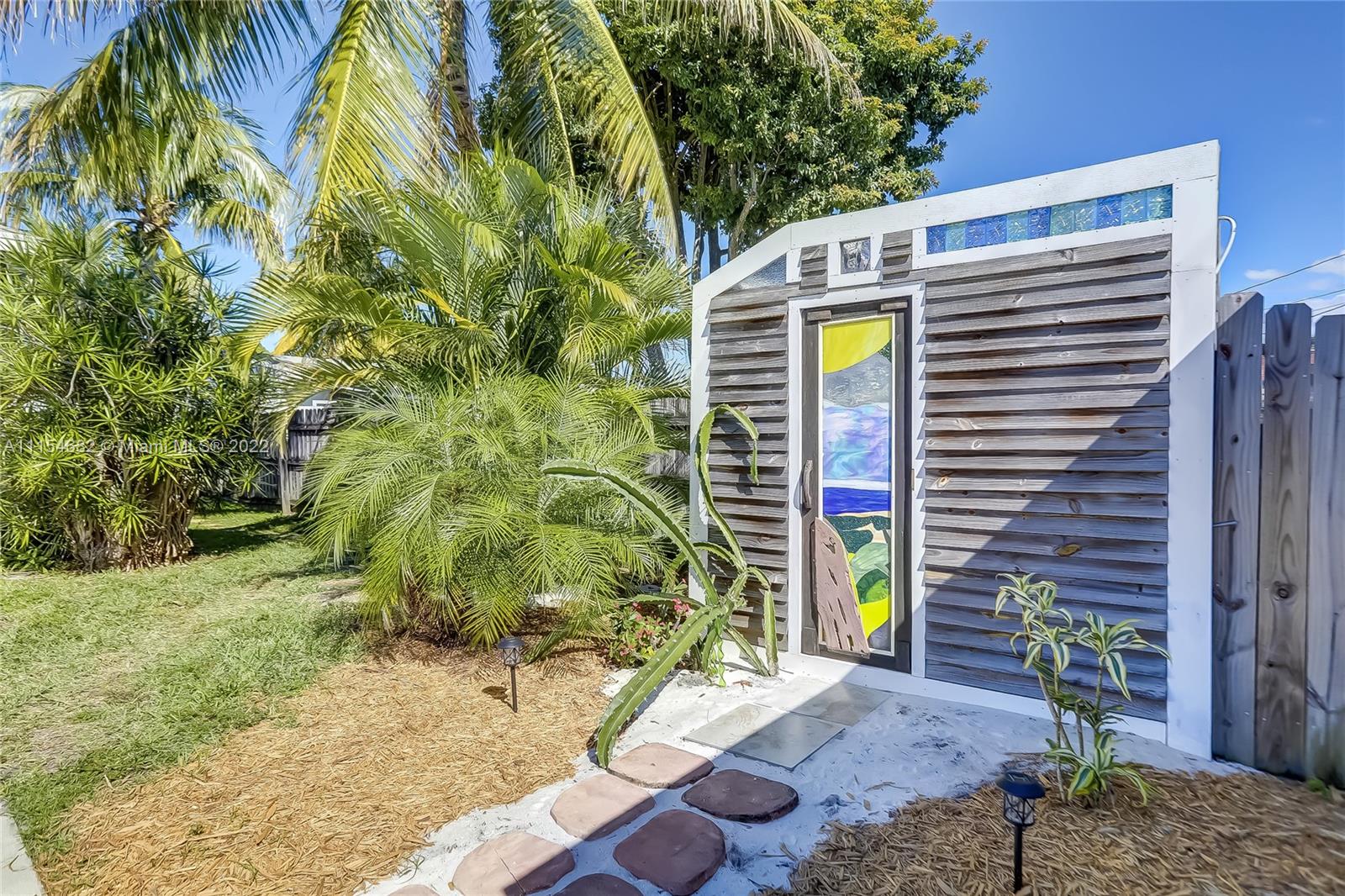 This charming Hollywood home has so much character and personality. Once you step through the front door you will be wowed by the gorgeous wood floors, dramatic and cathedral, white washed, wood planked ceiling and and exposed brick, wood burning fire place. The property has a split floor plan with 3 bedrooms and 2 full, moderately updated, bathrooms. The kitchen features granite countertops, wood cabinetry, and Stainless Steele appliances which includes a GAS stove. Take a walk out back and your corner lot has an outdoor shower to wash off after a day at the beach, a craftsman style workshop AND AN ADDITIONAL, CUSTOM BUILT, AIR CONDITIONED,TINY HOME. Being sold fully furnished and equipped! Sitting east of I-95 you are a very short drive to the beach.